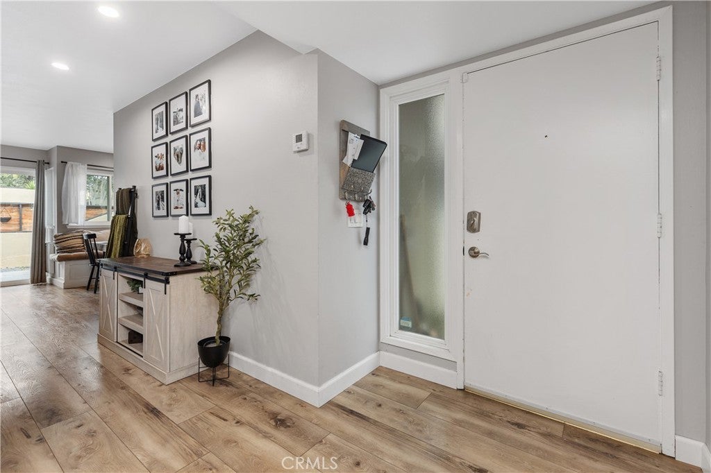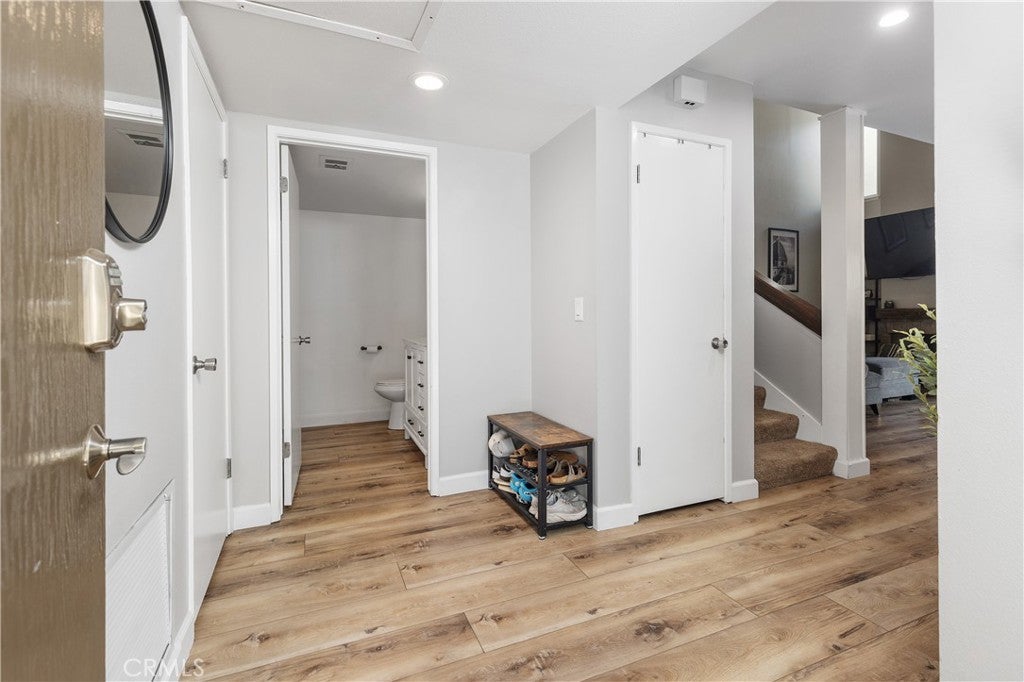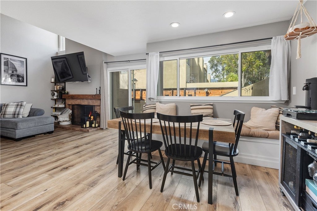 Welcome to this beautifully updated residence in the highly sought-after North Towne Park community, where modern design and everyday comfort come together in one inviting space. This 2-bedroom, 1.5-bath condo offers 1,146 square feet of thoughtfully curated living with stylish finishes and a light, airy ambiance throughout. Step inside to a bright and inviting living room featuring soaring vaulted ceilings, a cozy fireplace, and updated vinyl flooring that flows seamlessly through the main living areas. Sliding glass doors from the living room lead to a private patio accented with string lights, creating an inviting outdoor space perfect for relaxing or entertaining. At the heart of the home, the upgraded kitchen showcases quartz countertops, stainless steel appliances, white shaker cabinetry, and a striking white and black herringbone backsplash that adds the perfect designer touch. Upstairs, both bedrooms are generously sized and filled with natural light, each featuring vaulted ceilings that enhance the home’s open feel. The primary bedroom offers a comfortable retreat, complete with an ensuite bathroom, a spacious closet with built-in organizers, and a private balcony—perfect for enjoying morning coffee or unwinding in the evening. Downstairs, a convenient powder room includes an updated vanity along with an in-unit washer and dryer. Additional highlights include a one-car attached garage plus an additional covered carport space for added convenience. Residents of North Towne Park enjoy access to community amenities including a pool, spa, clubhouse, and lush greenbelts. Ideally located within the award-winning Claremont School District and just minutes from the Claremont Colleges, the vibrant shops and dining of Claremont Village, and convenient access to the 210 freeway. This home offers the perfect blend of lifestyle and location.