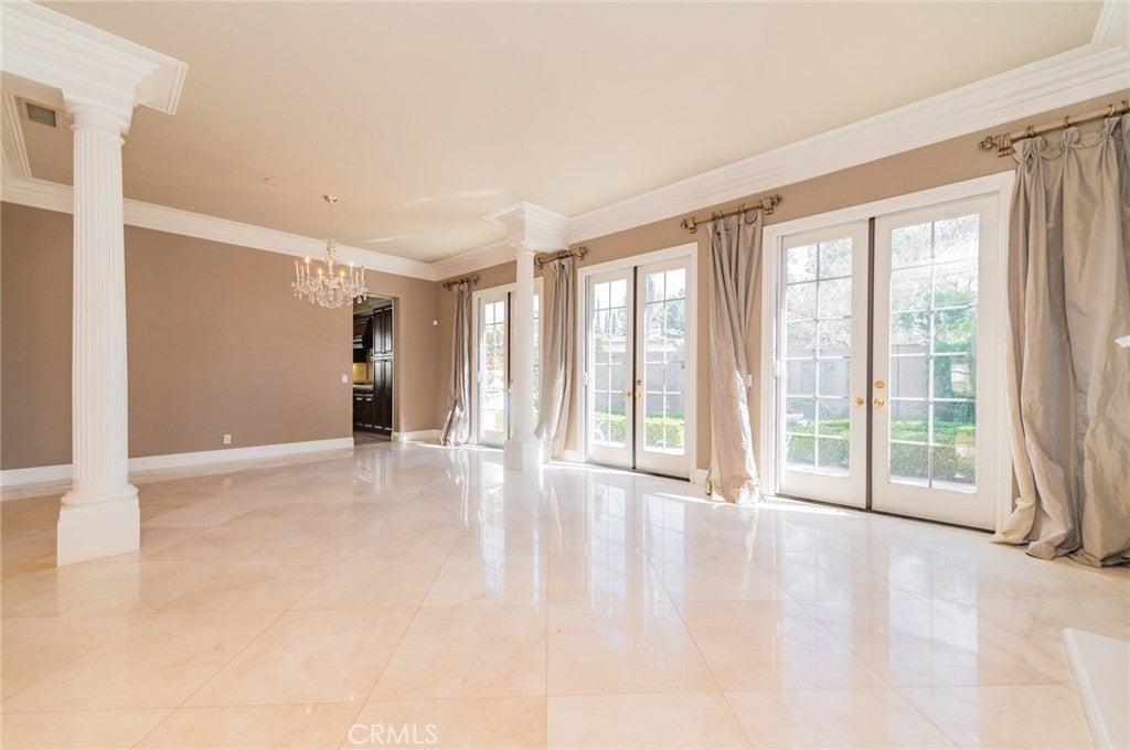 A rare Luxury Single-Level Estate in the Prestigious Gated Community of Emerson. Situated on a prime corner lot, this elegant residence offers approximately 3,318 sq. ft. of refined living space, thoughtfully designed for comfort, privacy, and sophisticated living. The home features three expansive bedroom suites, each located in its own separate wing of the house, providing the ultimate in quiet and personal privacy. Additional spaces include a versatile multi-purpose room—perfect for a 4th bedroom, private gym, or secondary home office—and a beautifully appointed large executive study with custom built-in cabinetry, making the home fully work-from-home ready. Designed with both entertaining and everyday living in mind, the gourmet chef’s kitchen showcases granite countertops, a large center island, stainless steel appliances, and double ovens. The kitchen opens seamlessly to the inviting family room and a south-facing living room, which enjoys abundant natural light and tranquil views of a charming English rose garden. The luxurious primary suite offers a peaceful retreat with a sitting area, fireplace, and direct access to the backyard. The spa-inspired primary bathroom features dual vanities, a soaking tub, and an expansive walk-in closet with built-in organizers. The wrap-around landscaped grounds provide multiple outdoor spaces for relaxation, including a built-in BBQ area and beautifully maintained gardens. For your convenience, professional weekly gardening service is provided. Ideally located within the highly ranked Tustin Ranch school district and just steps from Peter’s Canyon Regional Park’s scenic trails. This ultra-private and secure community offers the perfect environment for families. Conveniently close to Tustin Ranch Golf Club, The Marketplace, fine dining, and entertainment. Additional features include an indoor laundry room with built-in cabinetry and sink, direct garage access, and ADT security equipment available for tenant activation. For insurance purposes, the backyard pool and one single-car garage space are reserved for the owner and excluded from the lease.