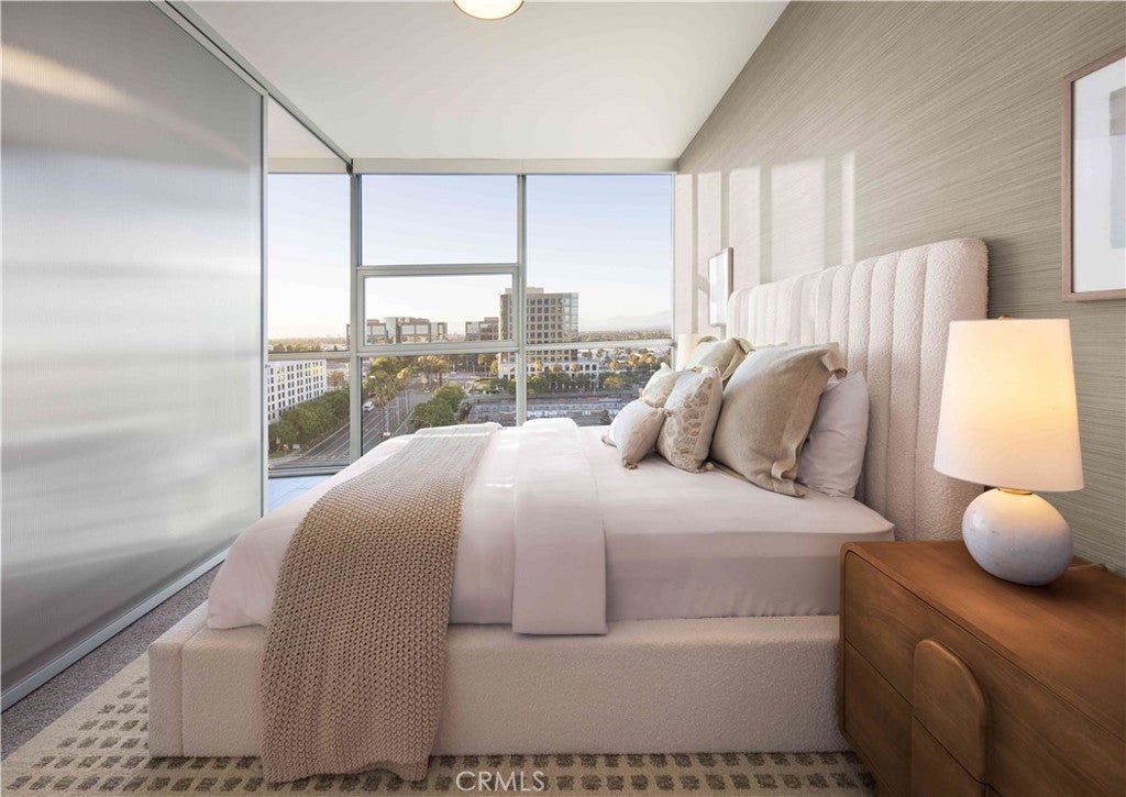 Welcome to Skyline OC — the tallest residential building in Orange County and South Coast's boldest condo transformation, where timeless design meets coastal energy. Ideally located in the heart of Orange County, Skyline OC offers the perfect balance of urban convenience and resort-style tranquility. Just moments from South Coast Plaza, world-class dining, performing arts, and major business hubs, this exceptional address puts everything within easy reach—while still feeling like a private retreat. Residence N801 is a Plan C home offering ~1,494 square feet of refined living space. This 2-bedroom, 2-bathroom residence features a desirable split floor plan with bedrooms positioned on opposite sides for added privacy. Soaring ceilings and floor-to-ceiling glass frame north-facing city views and fill the home with natural light. Wood flooring flows throughout the home, complemented by a well-appointed kitchen with Frigidaire and Whirlpool appliances. An operable opening with double doors allows fresh air into the home. The primary suite features a generous walk-in closet, dual vanities, a spa-style soaking tub, and a separate glass shower, creating a serene retreat.