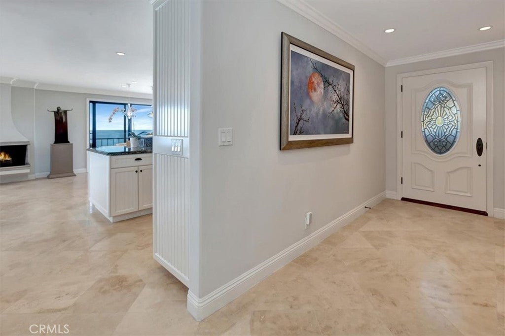 Exceptional Coastal Sanctuary! Unparalleled serenity awaits the discriminating buyer of this elevated beachfront home. Offering a rare blend of natural artistry, refined design, and spectacular 180-degree unobstructed oceanfront views, the penthouse residence offers privacy, beauty, and expansive white-water views within a gated and 24-hour guarded community. Park in one of two reserved parking spaces, access the elevator, and walk along the grotto and lushly landscaped garden to the penthouse. The unique weeping limestone wall at the entrance creates a striking first impression while offering enhanced privacy and security. The distinctive shell garden crowns a massive rock formation, seamlessly connecting the lava base that extends across the beach and into the ocean beyond--an architectural and natural feature that is as rare as it is captivating. Inside, the residence provides expansive and immersive coastal views with a wraparound balcony perfect for Southern California living. Open the sliding glass doors and feel the ocean breeze while cooking in the gourmet kitchen, which boasts high-end appliances, additional bar seating, and ample cabinetry. No detail has been overlooked in the luxurious primary suite, offering sophisticated features and a spacious ensuite, completed by ample walk-in closets designed for comfort and convenience. The other bedrooms offer privacy and serenity, and all bathrooms have been upgraded. Conveniently located on the same level as the heated pool, spa, and fitness center, along with private beach access, the penthouse provides the ultimate in an upscale oceanfront lifestyle.