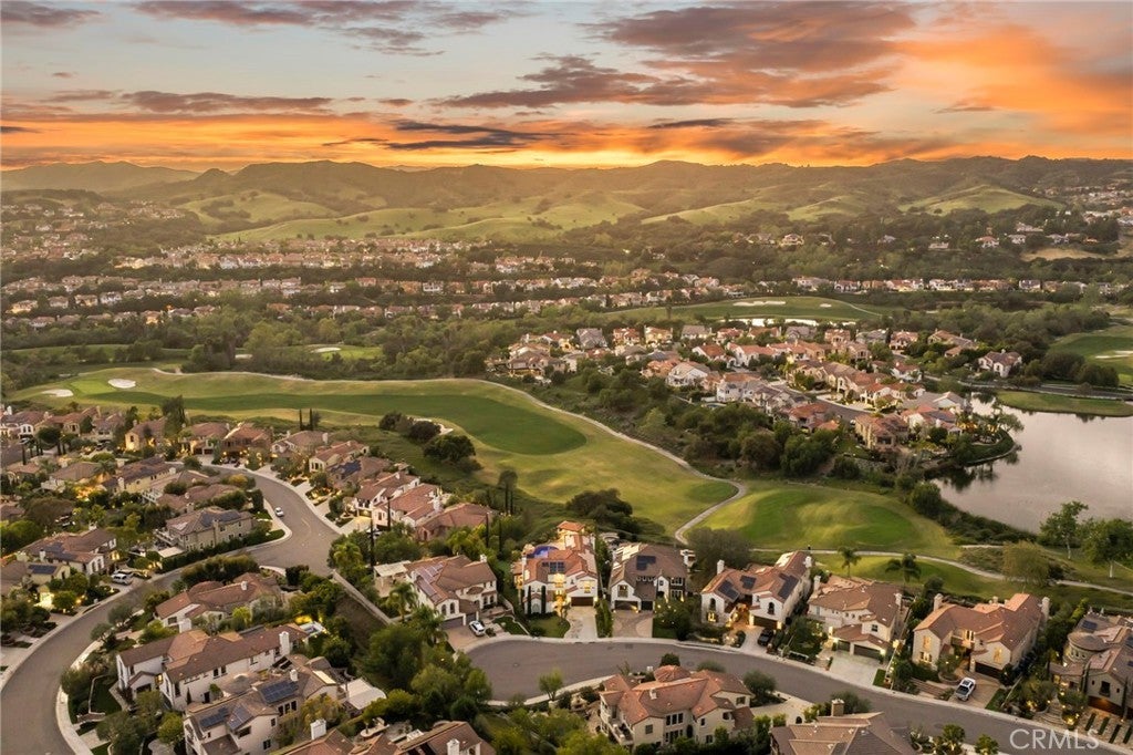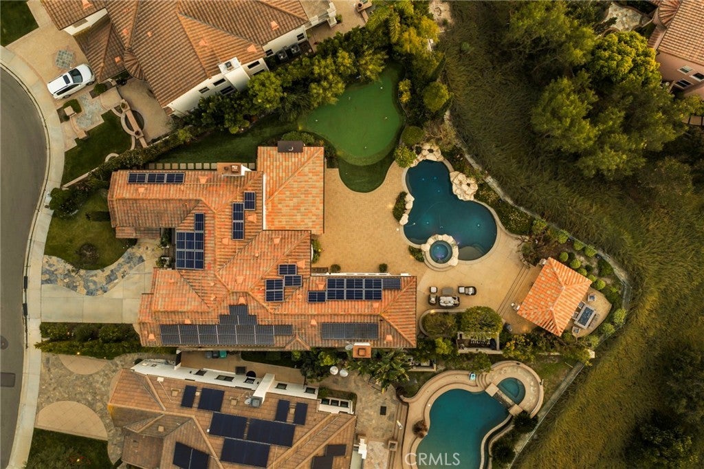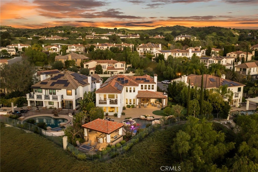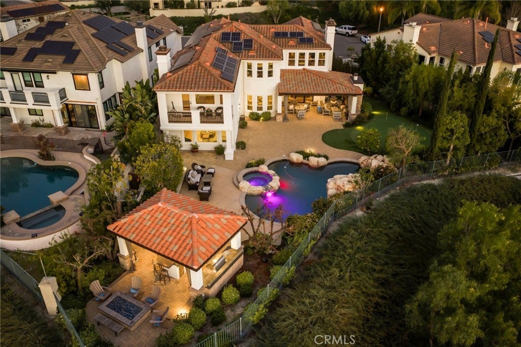 Perfectly situated on an approximately 13,000 sq. ft. cul-de-sac golf course view lot behind the gates of Coto de Caza, this exceptional pool home offers a rare combination of privacy, views, and a highly desirable floor plan. Set on an oversized, pie-shaped lot of approximately one-third of an acre at the end of the cul-de-sac, the elevated location overlooks the 9th tee box and captures sweeping golf course and hillside views while providing exceptional privacy. Designed for both comfortable everyday living and effortless entertaining, the residence features a main-level bedroom ideal for guests or multi-generational living, along with an expansive great room that serves as the heart of the home—perfect for gathering with family and friends. Upstairs, three generously sized bedrooms include the spacious primary suite, complemented by a versatile bonus room that can easily function as a media room, home office, or playroom. The home has undergone an extensive remodel highlighted by a beautifully redesigned kitchen, a spa-inspired primary bathroom, and thoughtfully upgraded interiors including wide-plank hardwood flooring, a linear fireplace integrated into the family room entertainment center, newly installed high-efficiency windows, updated interior doors, a leaded glass front entry door, custom garage doors, refreshed exterior paint, and a recently installed variable-speed HVAC system. The backyard is designed as a true entertainer’s retreat, featuring multiple outdoor living areas that seamlessly extend the home for indoor-outdoor living. Enjoy a fireplace lounge, separate fire pit, pool and spa with rock waterfall, and a private golf putting and chipping green, all surrounded by mature trees that enhance both privacy and the scenic golf course views.