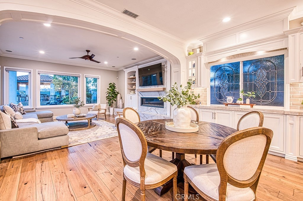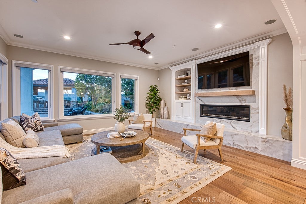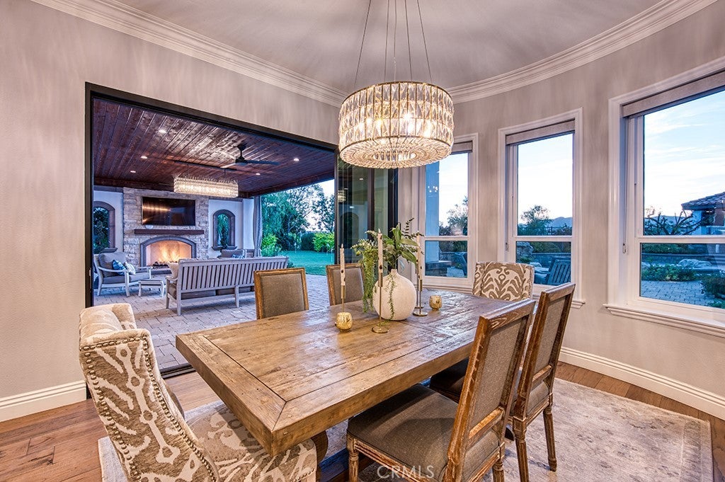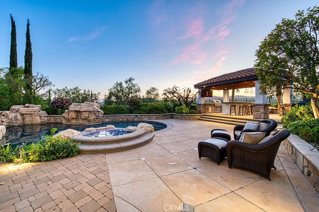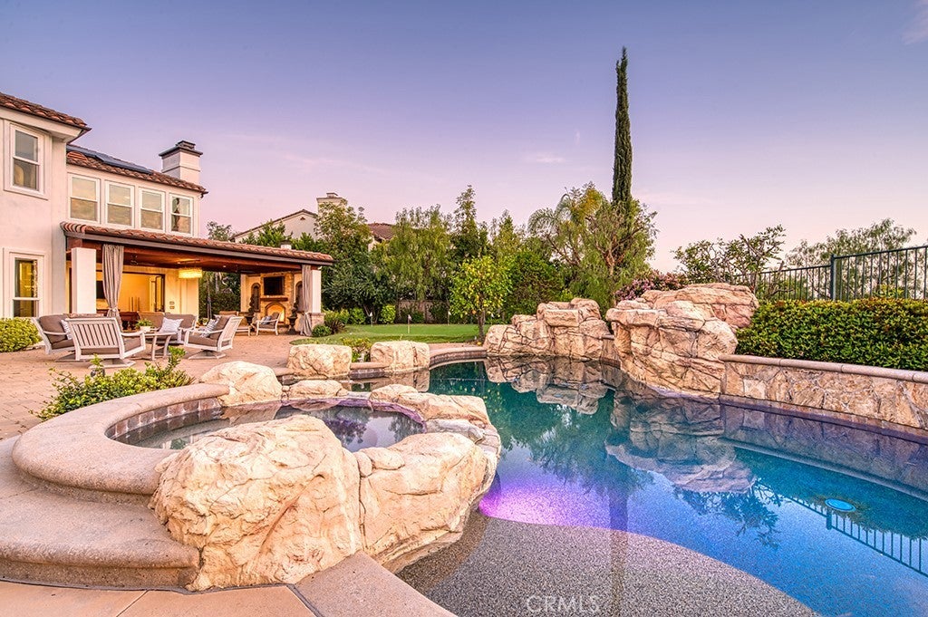 Perfectly situated on an approximately 13,000 sq. ft. cul-de-sac golf course view lot behind the gates of Coto de Caza, this exceptional pool home offers a rare combination of privacy, views, and a highly desirable floor plan. Set on an oversized, pie-shaped lot of approximately one-third of an acre at the end of the cul-de-sac, the elevated location overlooks the 9th tee box and captures sweeping golf course and hillside views while providing exceptional privacy. Designed for both comfortable everyday living and effortless entertaining, the residence features a main-level bedroom ideal for guests or multi-generational living, along with an expansive great room that serves as the heart of the home—perfect for gathering with family and friends. Upstairs, three generously sized bedrooms include the spacious primary suite, complemented by a versatile bonus room that can easily function as a media room, home office, or playroom. The home has undergone an extensive remodel highlighted by a beautifully redesigned kitchen, a spa-inspired primary bathroom, and thoughtfully upgraded interiors including wide-plank hardwood flooring, a linear fireplace integrated into the family room entertainment center, newly installed high-efficiency windows, updated interior doors, a leaded glass front entry door, custom garage doors, refreshed exterior paint, and a recently installed variable-speed HVAC system. The backyard is designed as a true entertainer’s retreat, featuring multiple outdoor living areas that seamlessly extend the home for indoor-outdoor living. Enjoy a fireplace lounge, separate fire pit, pool and spa with rock waterfall, and a private golf putting and chipping green, all surrounded by mature trees that enhance both privacy and the scenic golf course views.