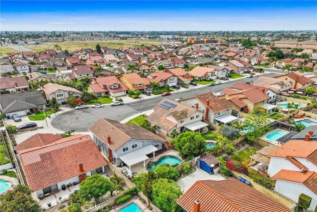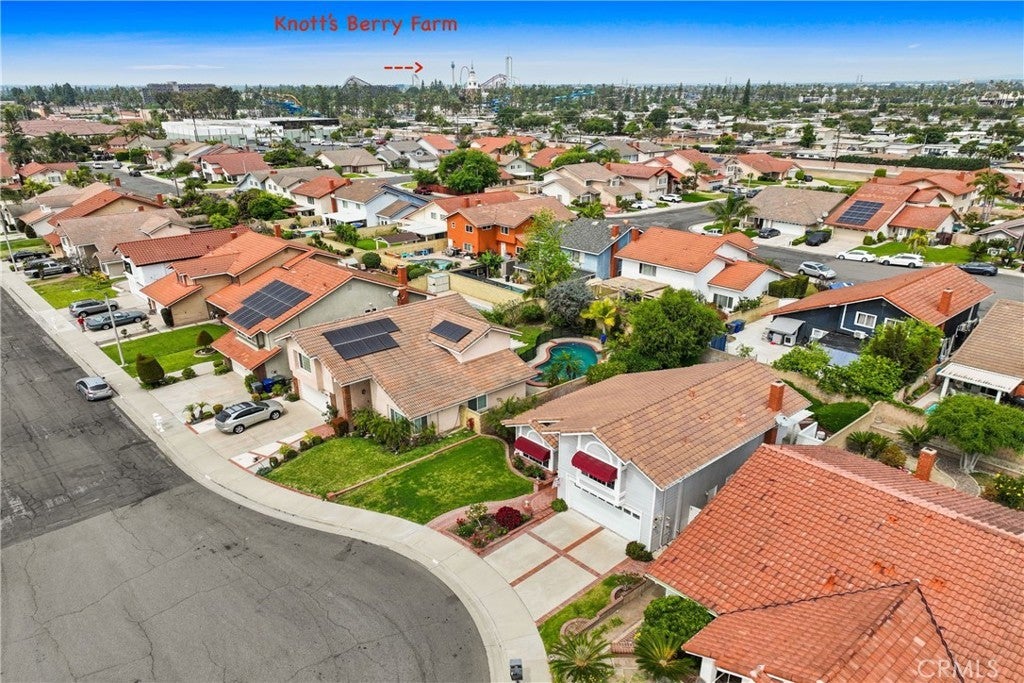Very Desirable End-of-Cul-de-Sac Pool Home in a Beautiful Buena Park Neighborhood! Offering 3 bedrooms, 2.5 bathrooms, and a two car attached garage - this wonderfully maintained residence has been lightly lived in and lovingly cared for by the same owners for over 41 years - a rare gem reflecting decades of pride & ownership. Manicured landscaping and charming brick walkways create instant curb appeal. Inside, a bright and open floor plan with vaulted ceilings in both the living and dining rooms. The family room features a warm brick fireplace, a beautiful custom stained glass accent window, and classic oak wood built-ins. The laundry area and half bathroom are located adjacent to the family room. The well designed bright kitchen offers a cozy eat-in nook, oak wood cabinetry and a full decorative tile backsplash, plus a large window over the sink providing natural light and a view of the pool. Freshly painted interior walls, as well as the downstairs baseboards. Located on the second floor, the spacious primary bedroom suite with vaulted ceilings and two walk-in closets including large mirrored doors that stretch the length of the room. The primary bathroom offers dual sinks and a shower/oval tub combo with glass doors and decorative white tile accents. The second & third bedrooms are situated at the back of the home on a separate wall from the primary suite, providing excellent privacy. The second bedroom has a spacious walk-in closet created by utilizing attic space - which is large enough to serve as a home office. The second bathroom has a tiled stand-alone shower with glass doors and a beautifully detailed vintage-style sink. The family room French doors lead you to the private backyard designed for true So Cal living! A charming lattice patio cover provides a comfortable shaded space for outdoor dining and relaxation. Just beyond, an in ground pool and spa create the perfect retreat—surrounded by brick coping, tiered planters, and mature landscaping. Residents enjoy quick access to Knott’s Berry Farm, Knott’s Soak City, plus entertainment favorites like Medieval Times & Pirates Dinner Adventure plus the Buena Park Downtown Mall. Food lovers appreciate local favorites such as Porto’s Bakery and popular dining along Beach Boulevard. With easy access to the 5 and 91 freeways, homeowners enjoy short drives to beaches, Disneyland, major job hubs, and surrounding cities — a key reason Buena Park is known as the “Center of the Southland."