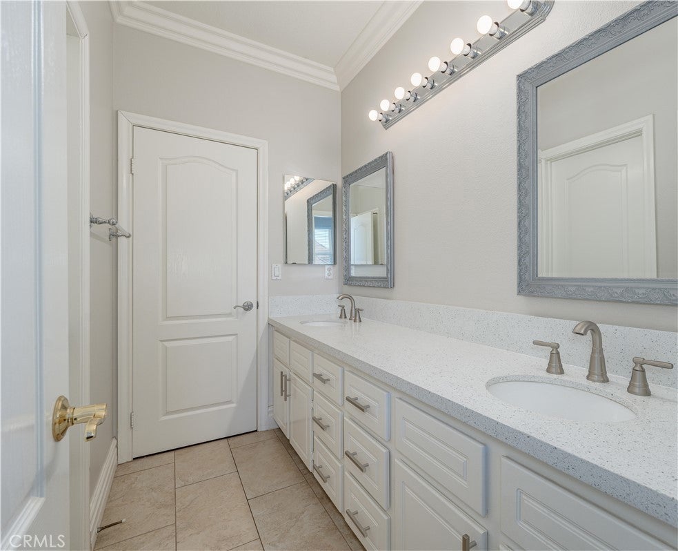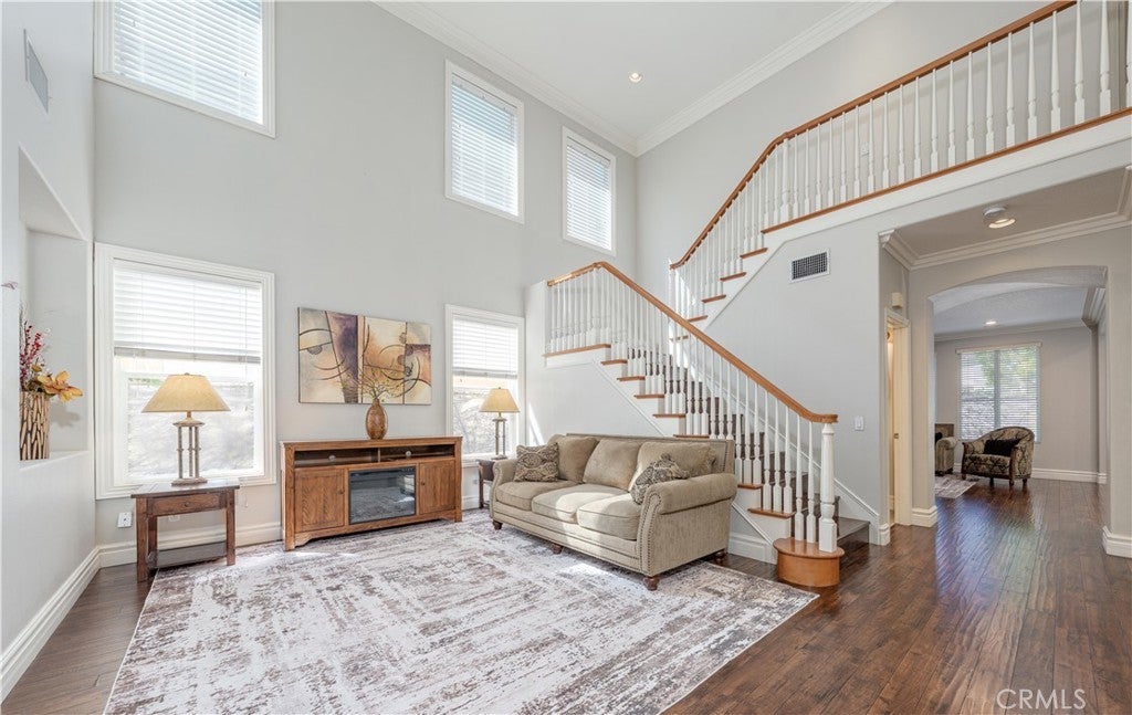Located in the gated community of Crystalaire in Huntington Beach, this stunning 5-bedroom, 4.5-bathroom residence exemplifies elegance and luxury, just minutes from the famous Surf City beaches and vibrant downtown area. Spanning an impressive 3,193 square feet, the interior welcomes you with high ceilings that amplify natural light, creating an airy and inviting atmosphere. The modern kitchen is a culinary dream, featuring a spacious eat-in island and ample counter and cupboard space, making it perfect for everyday cooking and ideal for hosting large gatherings with friends and family. The home includes both a living room and a formal dining room, providing additional spaces for recreation and entertaining. The cozy family room is highlighted by a beautifully crafted fireplace, which serves as a focal point. On the main floor, there is a thoughtfully designed bedroom with an ensuite bathroom, offering versatile options as an additional bedroom, office, or guest suite. A convenient half bathroom on this level serves both residents and guests. A grand staircase leads to the second level, where you'll find four additional bedrooms and three well-appointed bathrooms. The primary suite, complete with a cozy sitting area, serves as a serene retreat, featuring a lavish bathroom equipped with dual vanities, a spacious soaking tub, and a walk-in shower. Generous walk-in closets provide ample space for all your personal items. Two of the secondary bedrooms share a Jack-and-Jill bathroom with dual sinks, while another secondary bedroom is located next to an additional full bathroom. The upstairs landing includes a built-in office/entertainment space, and a separate upstairs laundry area adds practicality to the home. The property also features a 3-car garage with durable epoxy flooring and includes dual air conditioning units to maintain comfort. Step outside to discover a beautifully designed outdoor space that serves as an inviting oasis, complete with a built-in barbecue and firepit. The community itself offers a wealth of amenities, including a sparkling swimming pool and spa, meandering walking trails, volleyball and basketball courts, tennis courts, and a tot lot. With its ideal blend of location, tranquility, and convenience, this home stands as a remarkable sanctuary, catering to families and entertainers who seek comfort and enjoyment in a vibrant coastal setting.