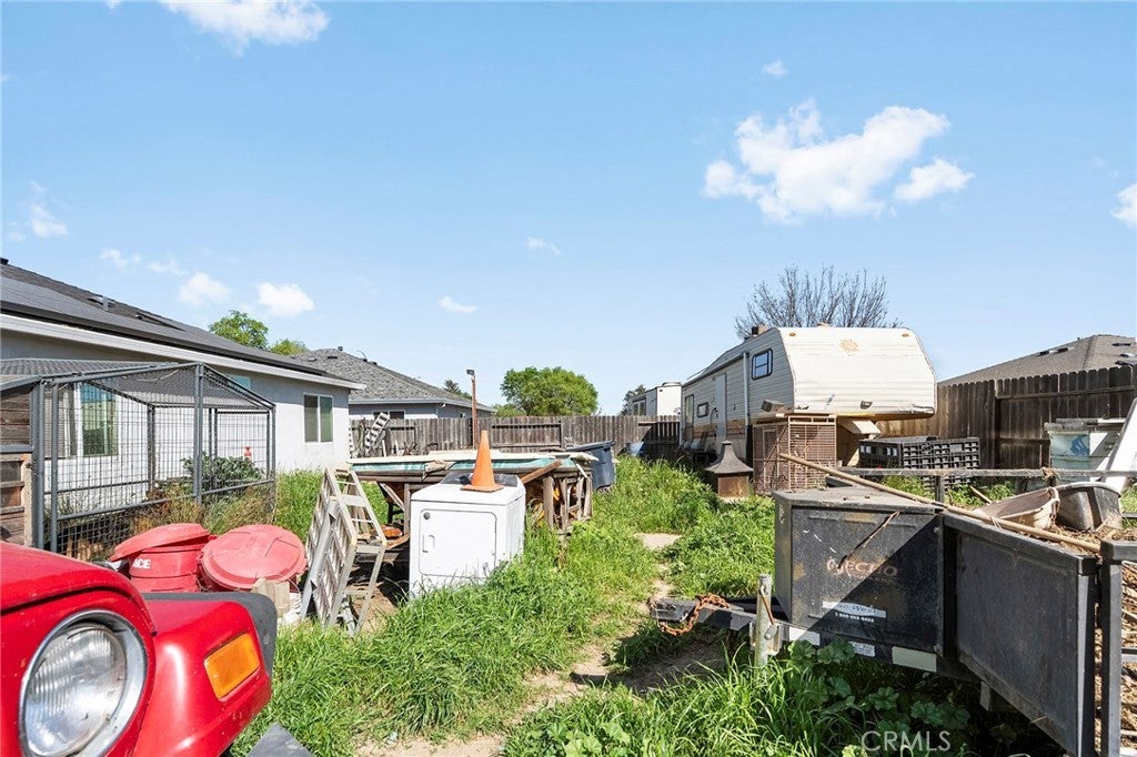 Investor Opportunity in the Heart of Biggs! Single-story stucco home nestled in a quiet residential neighborhood in Biggs, CA — offering tremendous upside potential for the savvy investor or owner-occupant looking to add their personal touch. This property features an attached 2-car garage, a concrete driveway, and a spacious lot with room to grow. Inside, you'll find a generous living room complete with a ceiling fan, plush carpet, and a wall-mounted TV area. The galley-style kitchen is well-appointed with stainless steel appliances including a gas range with microwave hood, a French door refrigerator, and a dishwasher, all complemented by warm wood cabinetry and tile flooring. The home boasts multiple bedrooms, each with ceiling fans, carpet, and closet space. The primary suite includes an ensuite bathroom with a walk-in shower and single vanity. A second full bathroom with a shower/tub combo serves the additional bedrooms. A hallway connects the living spaces efficiently throughout the home. The expansive backyard presents exciting possibilities - whether you envision a garden, outdoor entertaining area, or additional storage. The 2-car garage provides excellent utility space. RV parking on the property with hookups. Located in Butte County's agricultural community of Biggs, this property is priced to reflect its exciting potential. Bring your vision and make this one shine!