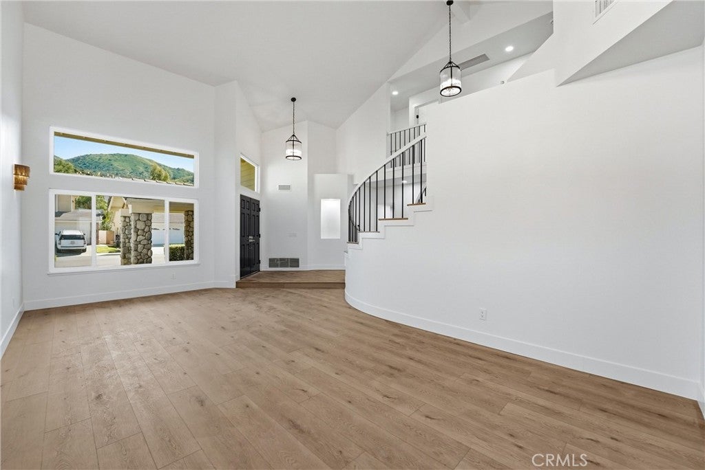 Beautifully Renovated 5-bedroom, 3 full bath home located in Robinson Ranch of Rancho Santa Margarita, on the highly desirable VIEW side of Shadow Rock Lane in the Trabuco Springs community. Homes on this side of the street rarely come on the market, and this is the first View-Side home on Shadow Rock available in over a year. With no homes directly behind you and a large open space beyond, the property offers breathtaking mountain views, spectacular sunsets, and a peaceful level of privacy that is hard to find. As you enter the home, you are welcomed by soaring Cathedral ceilings, smooth wall finishes, and large windows that bring in an abundance of natural light and create a bright, modern feel. The home has been extensively renovated throughout with brand-new windows, a whole-house fan, and paid solar, making it feel fresh, bright, and move-in ready. The flexible floor plan features 5 bedrooms and 3 full bathrooms, including a main floor bedroom and full bath, perfect for guests or multi-generational living. The living room features a fireplace with designer-inspired tile, creating a warm and inviting place to relax. An open staircase adds a sophisticated architectural touch and enhances the home’s spacious feel. The kitchen offers new cabinetry throughout, quartz countertops, and a sleek European-inspired design. A buffet bar with floating shelves creates an open and stylish space for entertaining, while the upgraded 36-inch range makes the kitchen ideal for cooking. The breakfast bar is the perfect place to enjoy your morning coffee while taking in the stunning backyard mountain views. Additional highlights include a separate indoor laundry room, spacious 3-car garage, and beautiful views from both the downstairs and upstairs living areas. Evenings here are incredibly peaceful with quiet surroundings and spectacular sunset views. Residents of Trabuco Springs enjoy access to community amenities including a Junior Olympic-sized pool, spa, wading pool, parks, tot lot, sports courts, and sports fields, along with close proximity to hiking and biking trails, regional parks, golf courses, Rancho Santa Margarita Lake, and award-winning schools. A Rare opportunity to own a beautifully upgraded view home in one of the most desirable locations in the community. Seller will entertain offers between $1,499,000 and $1,599,000.