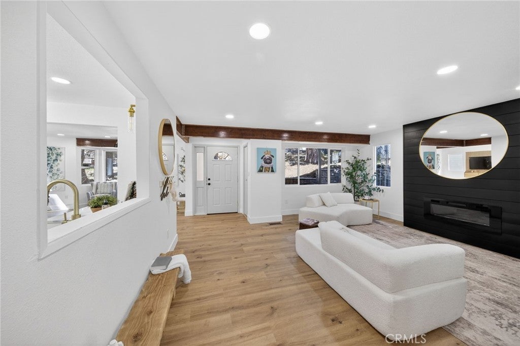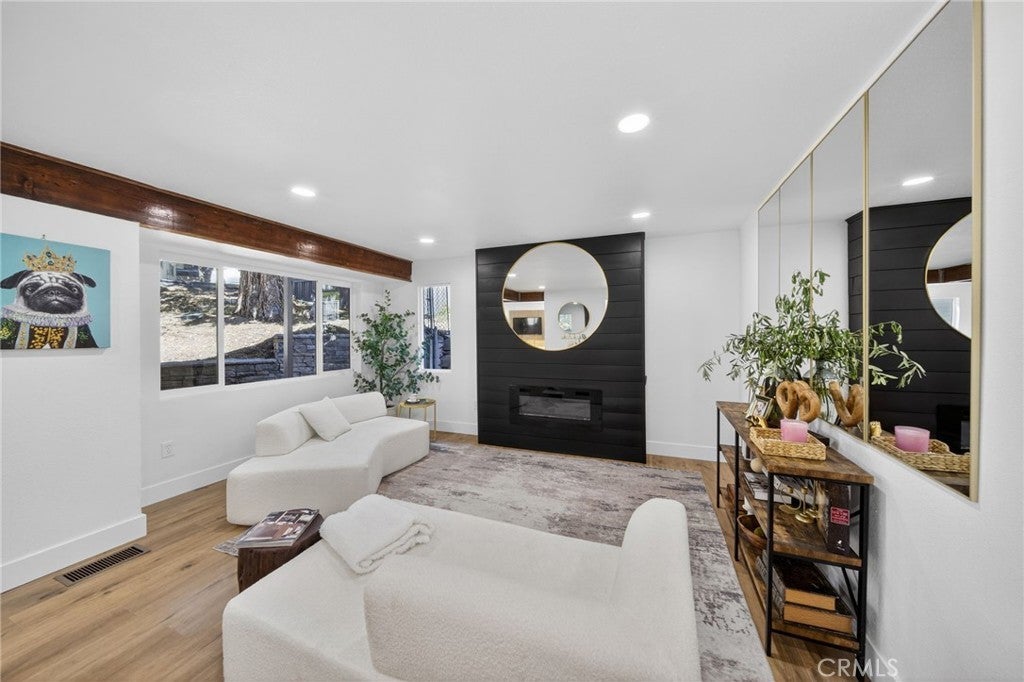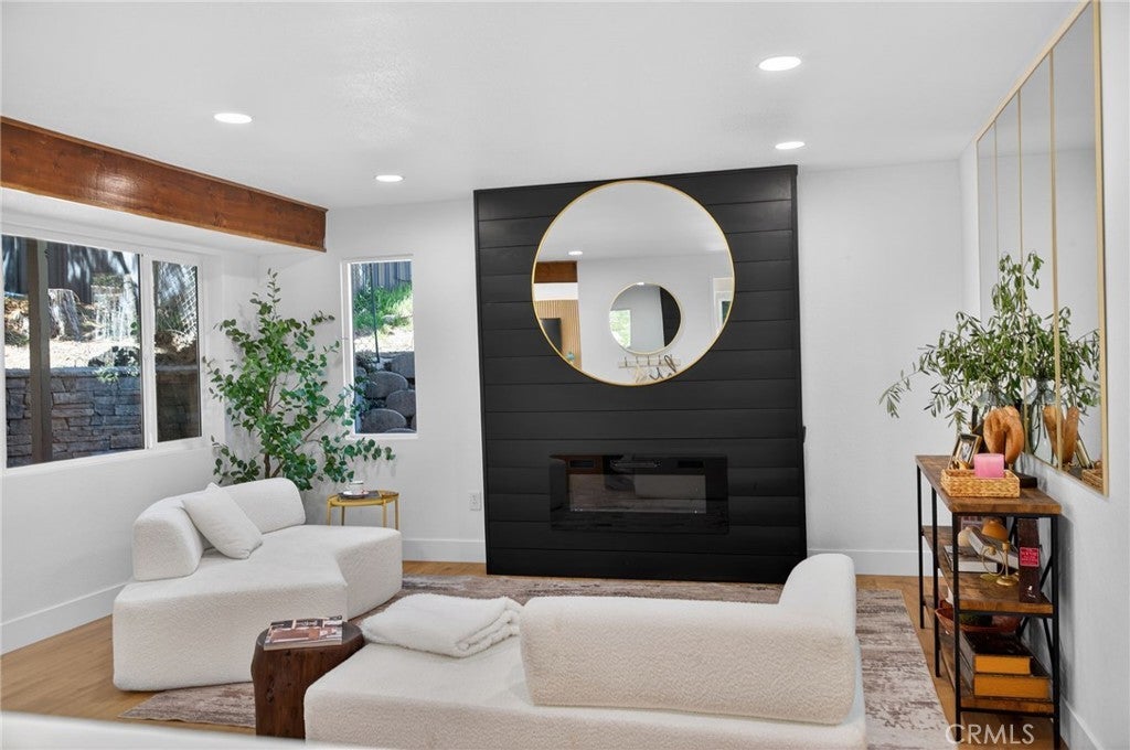 Escape the Ordinary! Welcome to the Rimforest area of Lake Arrowhead. This Beautiful 5 Bedrooms 3 Bathroom Home + 150 sqft Loft (with a 2 Car Garage). Nestled amount the Beautiful Pines of Rimforest. This Modern Farmhouse Style Home offers the prefect blend of rustic character and modern comfort , surrounded by Nature and Fresh Mountain Air. The home features a striking A-Frame inspired design with a spacious upper balcony deck--perfect for enjoying morning coffee, relaxing in the he evening or taking in the serene forest view. Large Windows fill the home with natural light while bringing the beauty of the outdoors inside. Inside, you'll find a warm and inviting open layout ideal for full-time residence, weekend gateway or vacation rental. The property sits on a peaceful hillside lot with mature trees, creating privacy and a true mountain atmosphere. Located just minute from local shops, dining, and outdoor recreation, this property also offers easy access to nearby mountain destinations including hiking trails, lake activities, snowboarding and mountain biking.