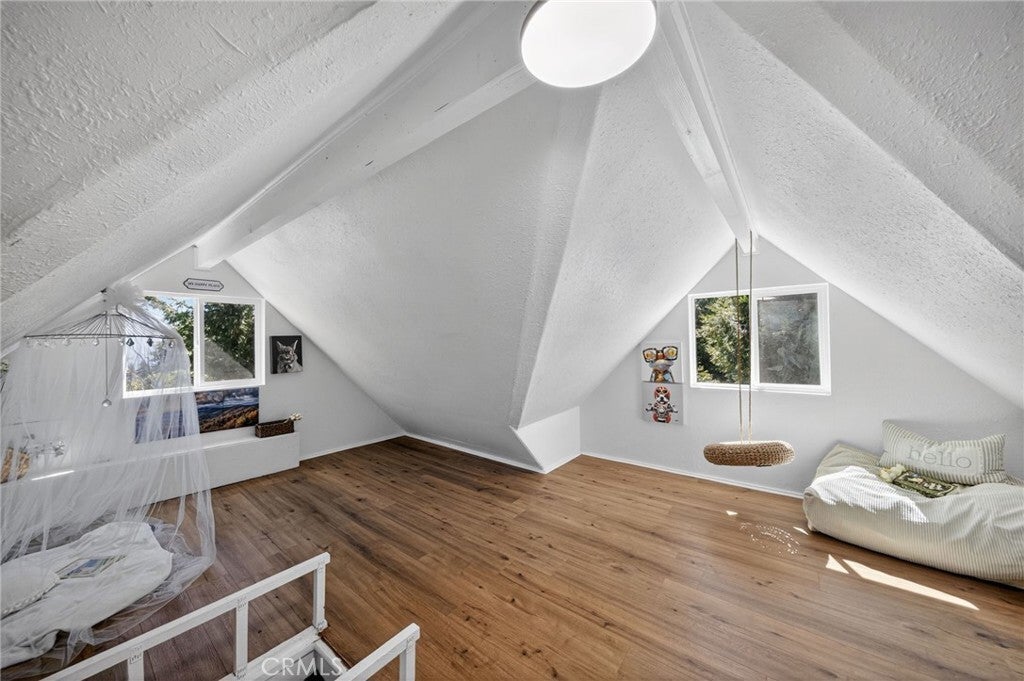 Balcony, Cathedral Ceiling(s), High Ceilings, Open Floorplan, Quartz Counters, Bedroom on Main Level, Primary Suite, Attic