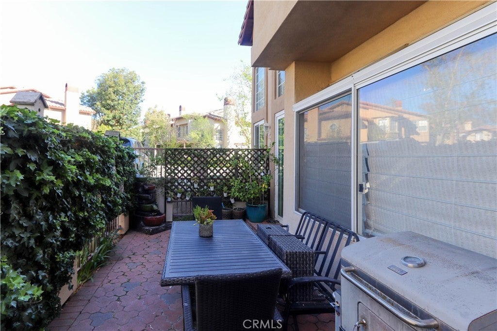 Located in the Serabrisa community of Rancho Santa Margarita near Tijeras Creek Golf Club, this end-unit townhome offers 3 bedrooms and 3 full bathrooms with only one shared wall. Double entry doors lead to a living room with vaulted ceilings and large windows that provide natural light. The home features new flooring throughout. The kitchen includes Corian countertops, stainless steel appliances, recessed lighting, and ample cabinet space. The kitchen opens to the dining area and family room with a fireplace and access to a private patio. The main level includes one bedroom and one full bathroom. Upstairs offers two-bedroom suites with ceiling fans and dual vanities. Additional features include plantation shutters, built-in storage, and garage storage with cabinets and ceiling racks. The property includes a one-car attached garage, private driveway, one assigned parking space, and nearby guest parking. Community amenities include pools, parks, lake access, tennis courts, trails, shopping, dining, and convenient access to toll roads. Included is full access to the Lago Santa Margarita Beach Club. Close to Arroyo Vista School.