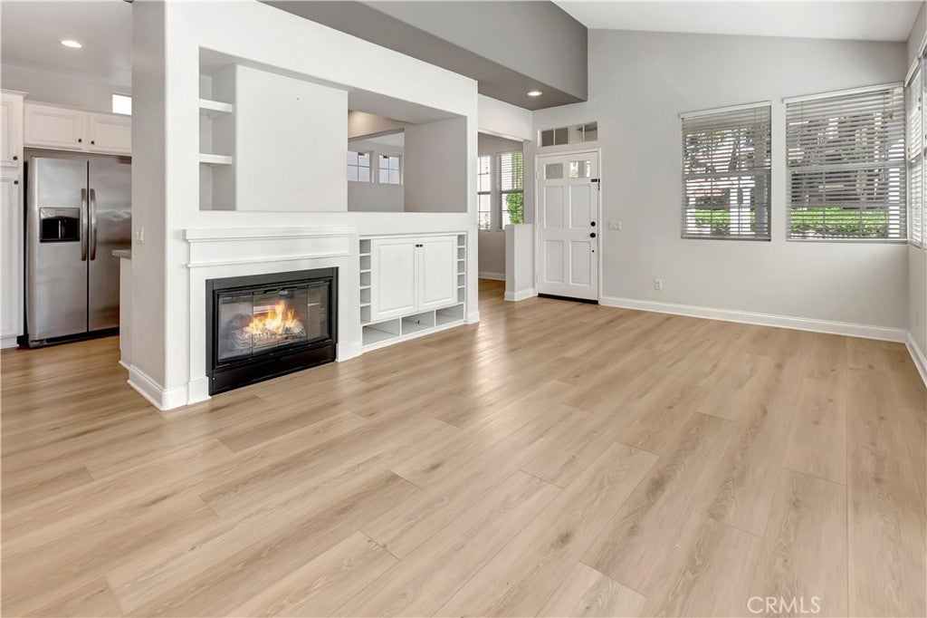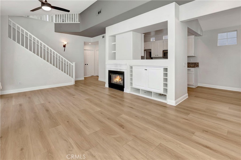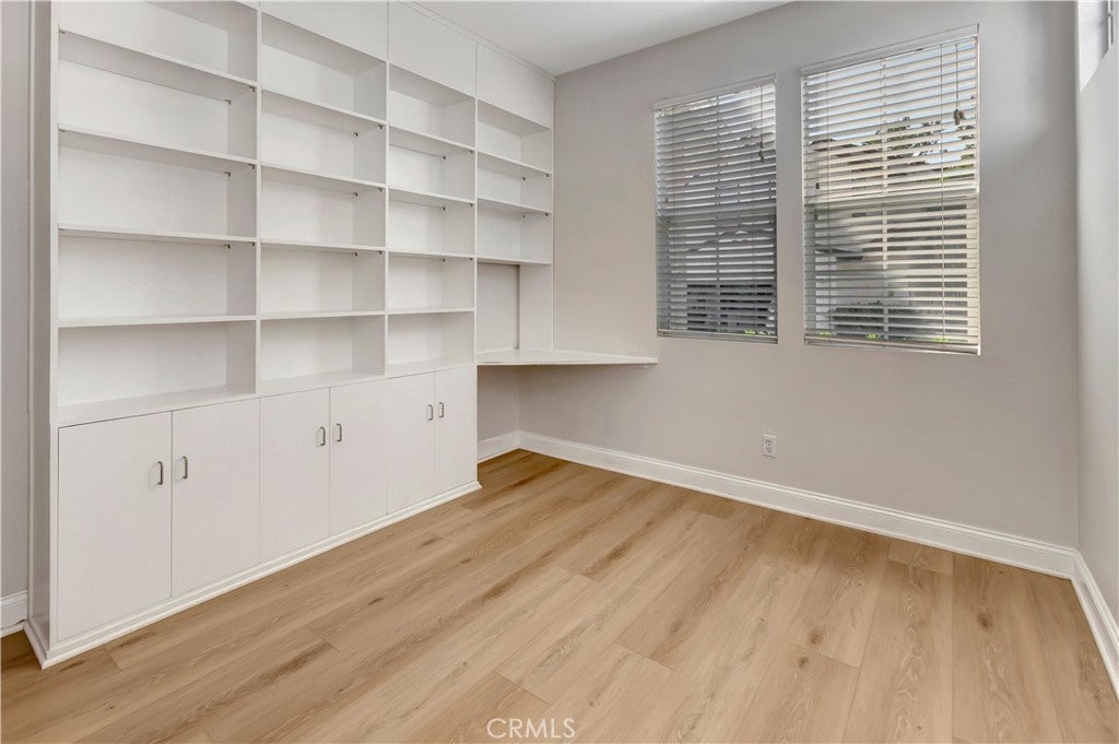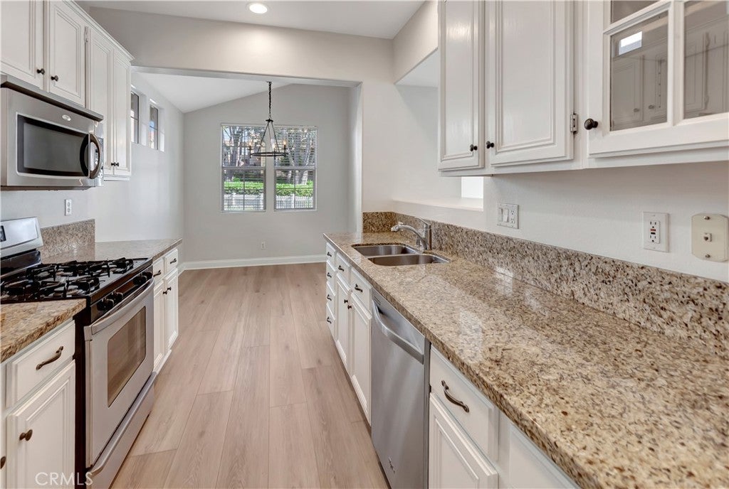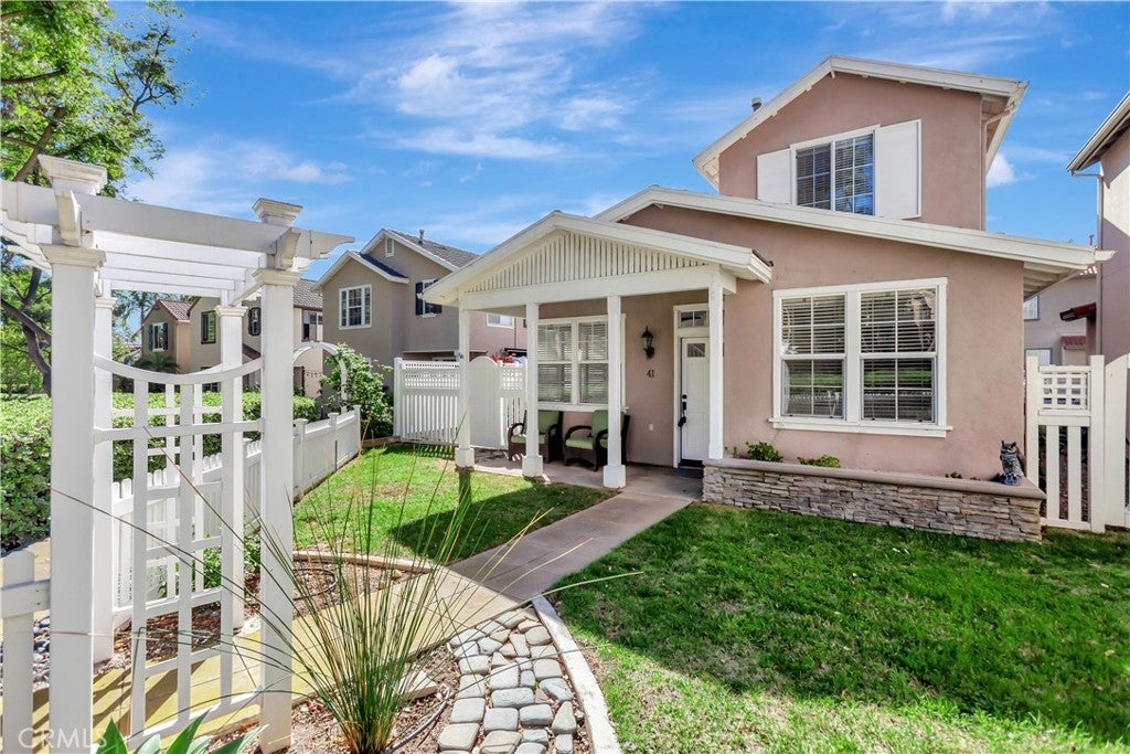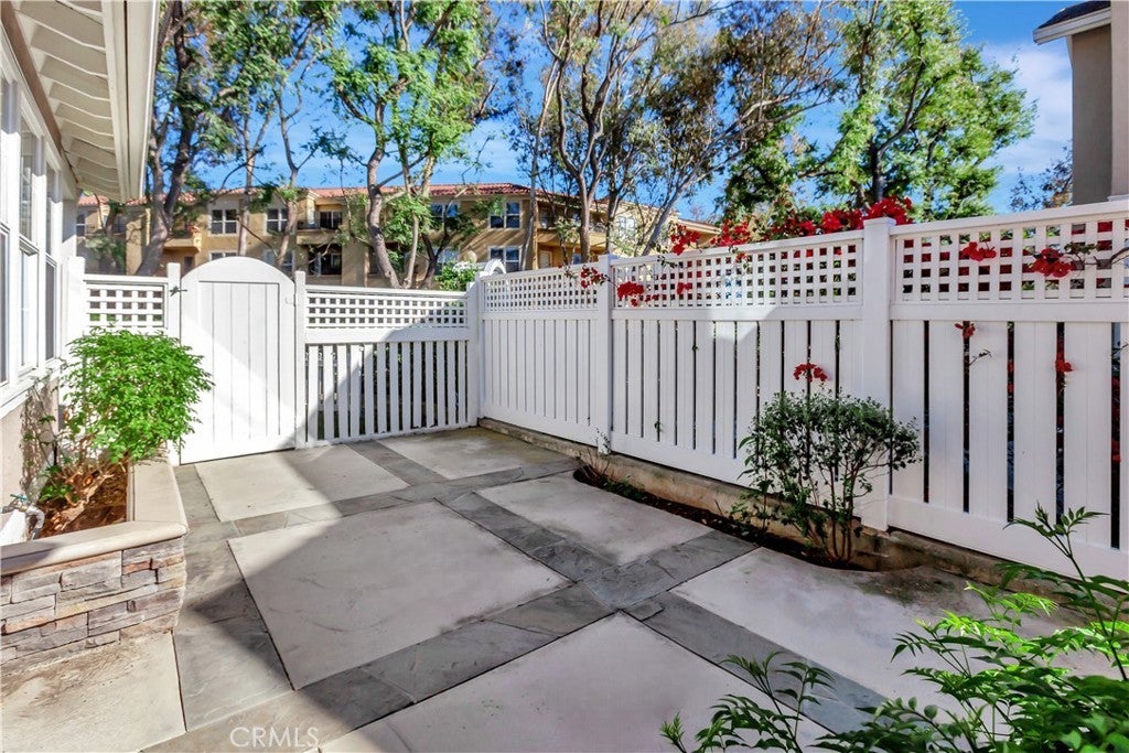 Wonderful location in the heart of Rancho Santa Margarita, this white picket fence residence located in one of the most private settings within the gated community of Los Paseos. The charming cottage-style detached home has a 2-car garage with a 220V electric vehicle charging outlet and has been recently upgraded with new paint, new vinyl flooring and new carpet. This lovely two-story home includes one bedroom (or optional home office) and full bathroom downstairs, along with two bedrooms and two bathrooms upstairs. The primary bedroom upstairs boasts tree lined views with a spacious ensuite bathroom including a separate tub, shower, and two vanities. The secondary bedroom upstairs has a private ensuite bathroom and custom closet organizers. Elevated ceilings and plenty of windows provide natural light on the main level, with sliding doors that connect to a gracious side patio, perfect for outdoor entertainment. The generous front yard garden is adjacent to trails connecting to the community, local shopping, and dining amenities. Los Paseos offers residents a private pool and all within minutes of RSM'S shopping, parks, restaurants and public schools.