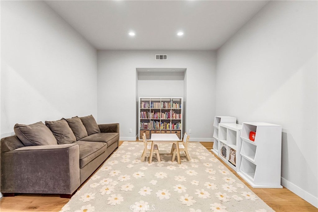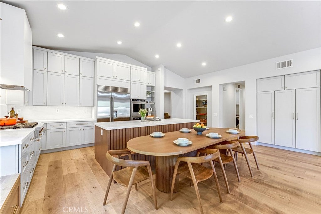 Location Location!!! Nestled within the gated community of Saratoga, this turn-key, beautifully remodeled 4-bedroom, 3-bathroom home offers luxury, comfort, and an ideal family-friendly setting. Located on a quiet cul-de-sac, the home sits across from a basketball court and near a neighborhood play structure. Completely remodeled in March 2025, the 2,988 sq ft home features gorgeous wide-plank white oak engineered hardwood floors throughout, soaring 9-foot ceilings, custom cabinetry, built-ins, and thoughtfully curated designer finishes. The chef’s kitchen is the heart of the home, featuring an impressive 10-foot island, custom banquette seating, and high-end appliances including a KitchenAid 6-burner stovetop, double ovens, microwave drawer, dishwasher, Sub-Zero refrigerator, and wine refrigerator—perfect for both everyday living and entertaining. The spacious primary suite offers high ceilings, views of the private backyard, and a spa-like bathroom with a soaking tub, separate shower, custom double vanity, private water closet, and a large customized walk-in closet. In addition to the four bedrooms, the home offers two versatile bonus spaces ideal for a playroom, office, formal dining room, den, library, or game room. Thoughtfully upgraded and move-in ready, this exceptional home combines modern elegance with everyday functionality in the sought-after Saratoga community