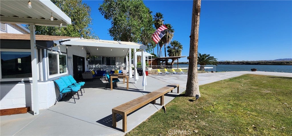 If you’re in the market for a beautiful riverfront home, look no further! Outside you’ll find an expansive, riverfront, double lot with private beach and dock. A large concrete patio has ample space for sunbathing and entertaining. New metal awnings provide shade from the summer sun, help keep the interior of the home cool, and supply covered parking for multiple vehicles. The garage is equipped to store all the river and desert toys you can manage. There is an abundance of vacant space at the back of the lot for additional parking, and full RV hook-ups. And the neighborhood launch ramp is only a stone’s throw away, making river access a breeze. Inside, the home has been fully renovated with high-end finishes and fixtures, and attention to every detail. The downstairs open layout and large living room slider provide for a full riverfront view, that gives the home a cool, airy, beach vibe. The split level floorplan offers privacy and versatility. New windows allow natural light to enter every room, and black out shades and 5-ton HVAC system ensure energy efficiency during the summer heat. The Google Nest thermostat also allows you to control the indoor temperature from anywhere via an app, so it’s nice and cool when you arrive. And outdoor security cameras give you peace of mind while you’re away. The home is turn key and move-in ready; not a single amenity has been overlooked. Invite your friends and family to come join you and take in a little slice of Colorado River heaven!