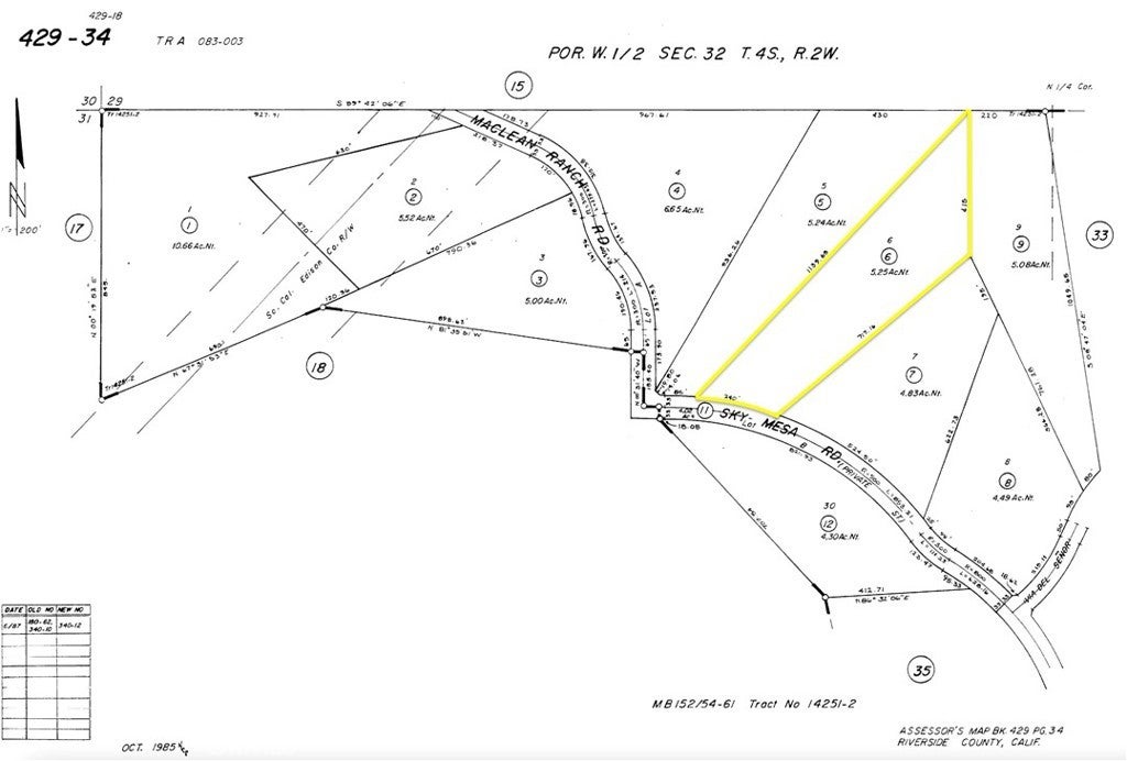 Discover the potential of this exceptional 5.25-acre estate view lot nestled within the prestigious gated community of The Ranches at Sky Mesa. This rare offering is ideal for builders, contractors, or investors seeking privacy, natural beauty, and high-end development potential. Perched at approximately 2,700+ feet in elevation, the north-facing parcel boasts breathtaking, unobstructed views of snow-capped mountains, Lake Perris, Phantom Lake, rolling hills, and dramatic sunsets. The natural terrain features striking rock outcroppings—ideal for designing custom waterfalls, sparkling pools, and serene ponds to create a true resort-style oasis. This exclusive community features million-dollar custom homes, underground utilities, and excellent 24/7 gated security enhanced by high-tech surveillance cameras. Each parcel maintains a minimum of five acres and allows up to four horses, with mobile homes prohibited to preserve the estate-quality aesthetic. Homes must be a minimum of 2,800 square feet with at least a three-car garage, ensuring architectural consistency and luxury throughout the neighborhood. A site plan has already been prepared for this lot, offering a head start on your dream home or investment project. Utilities include district water, electric, and phone lines located in the paved street, and the property is in a propane and septic area. The lot has clearly marked corners and is accessible through gated entry points north off Nuevo Road and south off Juniper Flats Road. There's ample space for additional structures such as patios, garages, horse facilities, walking trails, or other outdoor amenities. Conveniently located near I-215, Highway 74, and the Ramona Expressway, this property offers easy access to shopping, schools, medical centers, parks, and regional airports. It sits between Perris and Diamond Valley Lakes and is just 20 miles from Lake Elsinore—Southern California’s largest freshwater lake—offering year-round opportunities for fishing, boating, water sports, and more. Centrally located for commuting to Riverside, San Diego, Orange, Los Angeles, and San Bernardino Counties. As a bonus, financing may be available (OMC) with as little as 15% down, making this an outstanding opportunity for qualified buyers and investors. Don't miss the chance to secure this stunning view lot in one of Southern California’s premier private communities. Call today—must see to appreciate!