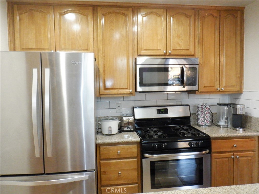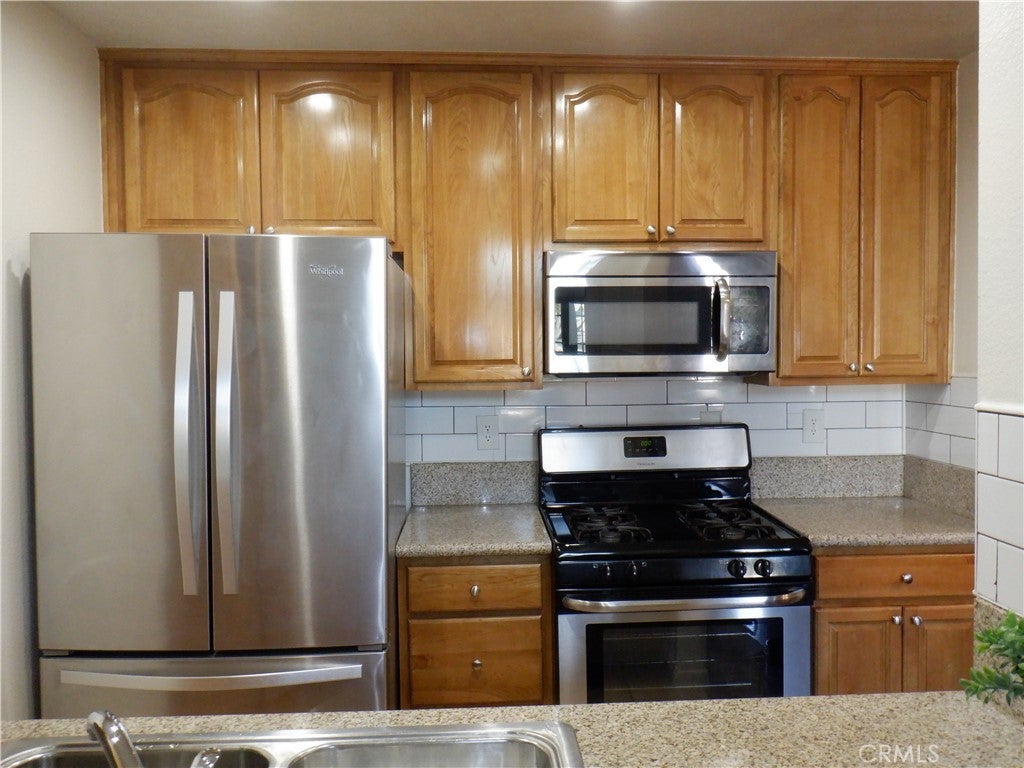 FHA Approved community, beautiful private upper - end unit. Light & bright Las Flores 1 condo1 bath with 1 carport and plenty of street parking. The best view for 1 bedroom 1 Bath top level. Upgraded with plenty of wood paneling, dual pane windows. Kitchen with stainless steel appliances including refrigerator, dishwasher, microwave, with granite countertops, newly installed tiles behind stove and sink. wood floor all over, tiled bathroom. HOA includes community pool and one assigned carport, #21, close to shopping centers, walking distance to Rancho Sta Margarita LAKE and restaurants, biking trails. Great home with the best location in the peaceful, very clean and beautiful community with a nice view in the patio or balcony extended to your living room like your own backyard. Don't miss this lovely condo.