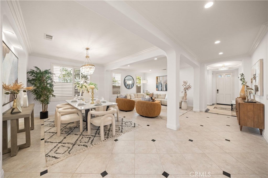 Nestled within the prestigious Northpark Square community of Irvine, this detached single-family home is ideally positioned on a rare single-loaded lot with no neighbors directly behind, offering exceptional privacy and a peaceful setting backing directly to Bella Vista Park. The home features a bright and functional layout with an open living and dining area upon entry, flowing seamlessly into the spacious kitchen with a center island that connects to the family room, creating an ideal space for both everyday living and entertaining. The kitchen also includes recently replaced window glass. A main-level bedroom with a full bathroom provides flexibility for guests or multi-generational living. Upstairs offers a versatile study area, a generously sized primary suite with built-in cabinet storage, and two secondary bedrooms connected by a Jack and Jill bathroom. The home has been thoughtfully upgraded over the years, beginning with recent fresh interior paint. Hardwood flooring and tile run throughout, along with LED recessed lighting, a water filtration system, and an installed solar system. All bathrooms have been remodeled with updated cabinetry, quartz countertops, Hansgrohe fixtures, and smart toilet installations, and the primary suite features an upgraded shower. The epoxy-coated garage, along with extended storage space, adds additional functionality, while both the front and backyard have been refreshed with updated landscaping. The backyard features a built-in barbecue area and fruit trees, adding to the overall outdoor living. Residents enjoy access to resort-style community amenities including pools, spa, playgrounds, gazebo areas, lush greenbelts, and walking trails, all within a quiet and well-maintained neighborhood. Just across the street is a neighborhood plaza with H Mart and a variety of dining options, making everyday errands and dining out easy. The home is also within the award-winning Tustin Unified School District, including Arnold O. Beckman High School, and offers convenient access to the 5 freeway. Low HOA dues make this home even more attractive.
