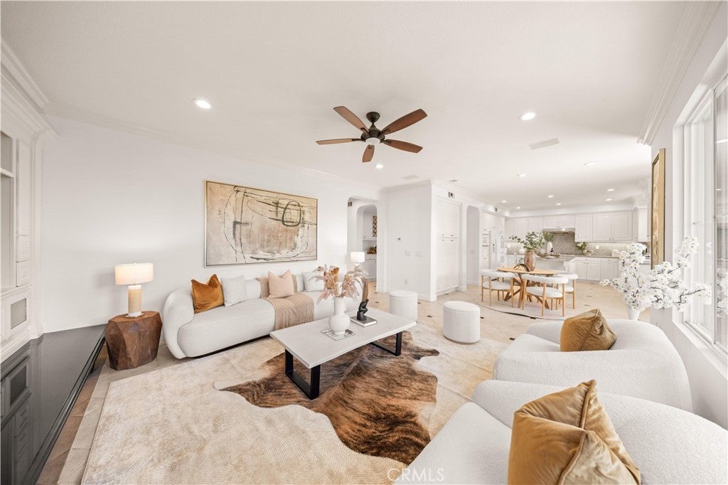 Ceiling Fan(s), Crown Molding, Quartz Counters, Bedroom on Main Level, Entrance Foyer, Primary Suite, Walk-In Closet(s)