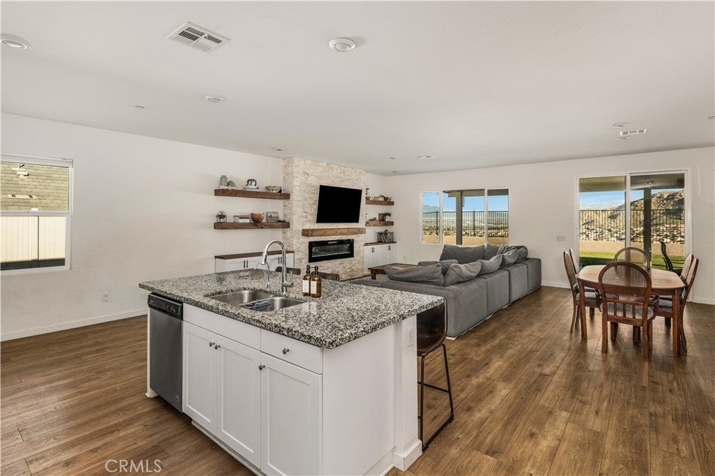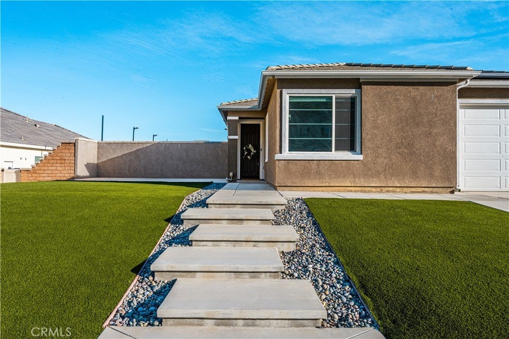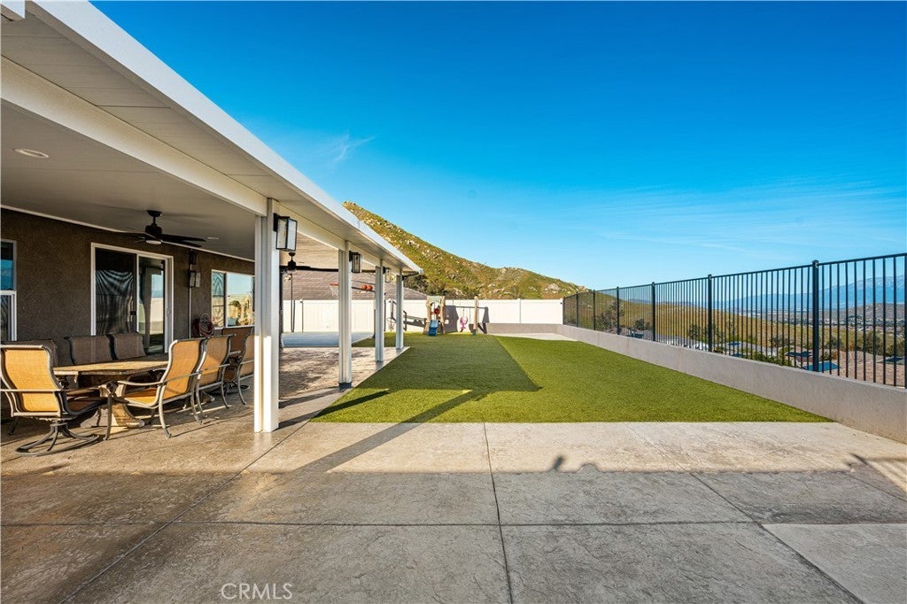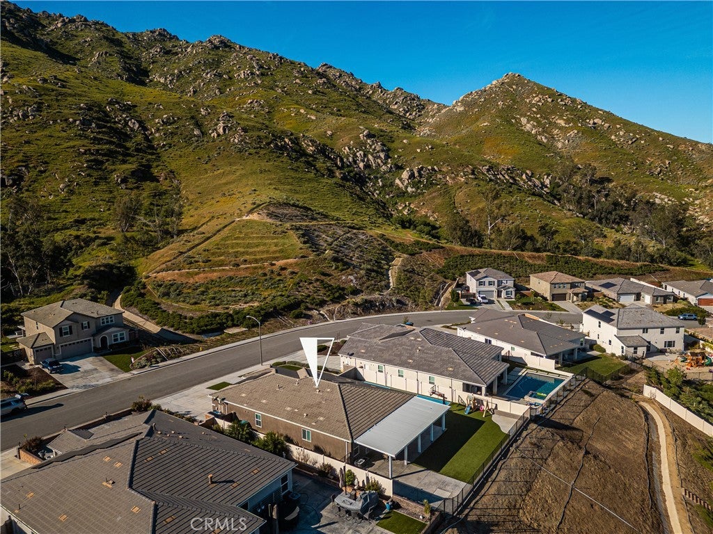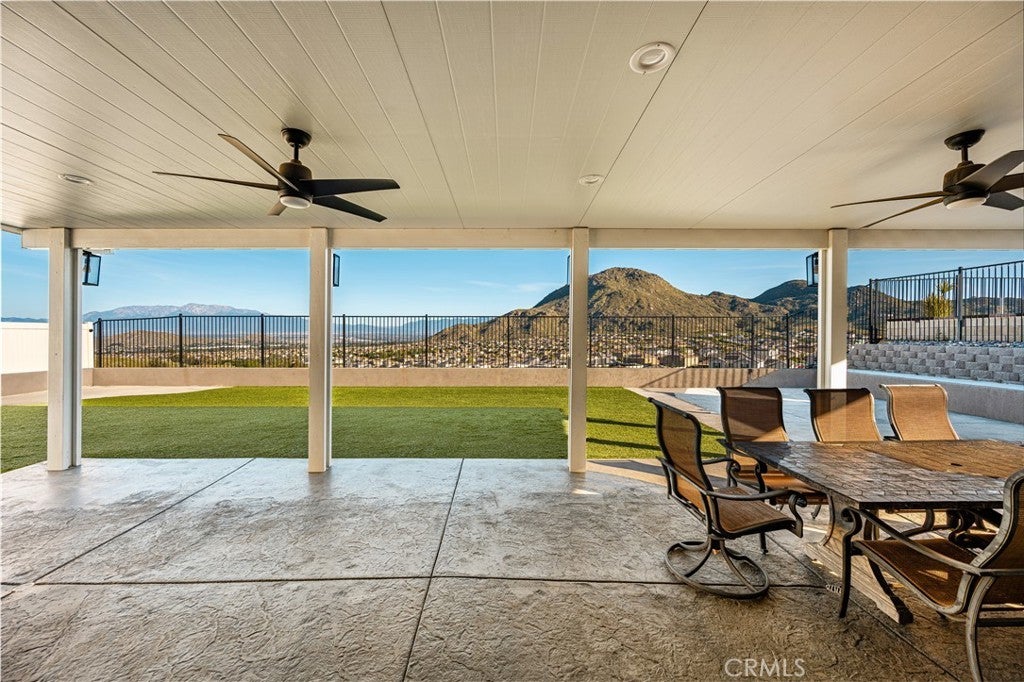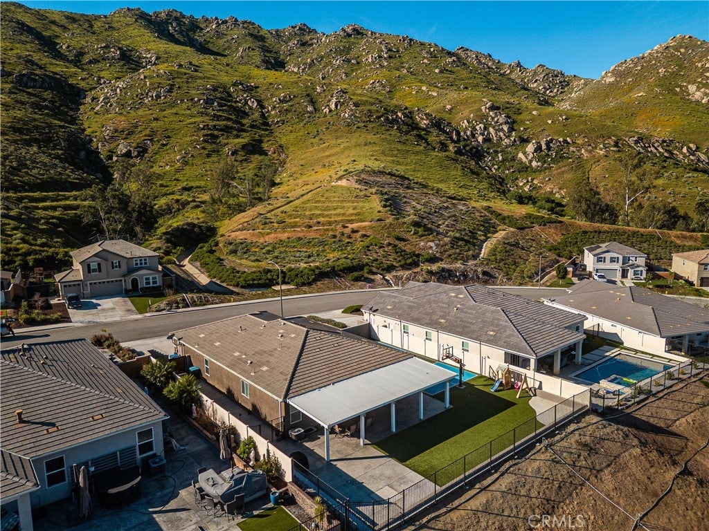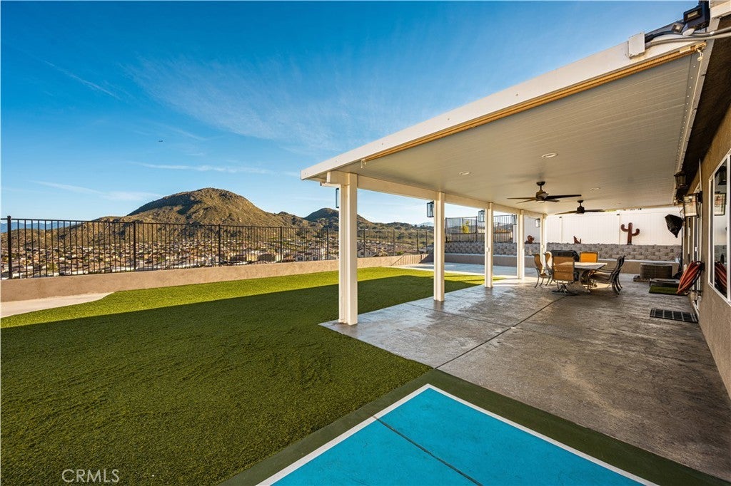 Welcome to 20996 Mountain Gate Drive, a masterfully designed single level VIEW property built in 2020 that perfectly blends modern efficiency with an indoor outdoor lifestyle. Located in the highly desired Spring Mountain Ranch community in Riverside, sitting on over a quarter of an acre of land, this 4 bedroom home is framed by majestic mountain vistas from both the front and the rear. Step inside to discover an airy, open concept floor plan featuring soaring 9 foot ceilings and sleek recessed lighting throughout. The heart of the home is the expansive Great Room, anchored by a dramatic floor to ceiling stack stone surround and a high efficiency electric fireplace. This space flows seamlessly into the backyard, making it an entertainer’s dream. The thoughtful layout provides maximum privacy, with the primary en suite tucked away at the rear of the home. This private retreat features a spacious walk in closet and a remodeled bath complete with a walk in shower and a separate soaking tub. The other three bedrooms and guest bath occupy their own wing at the front of the house. Nearby, the large laundry room offers additional storage and ample space for an extra refrigerator. The backyard is a true private resort. Take in the fabulous 180 degree mountain views with ideal North exposure under your premium Alumawood patio cover, complete with integrated lighting and a ceiling fan. Active living is built in with your very own private pickleball court and a lighted half basketball court. The low maintenance grounds feature high quality turf and stamped concrete, plus a dedicated side yard perfect for starting your own vegetable garden. Enjoy the freedom of no HOA and significantly reduced utility costs thanks to 12 owned solar panels and a tankless water heater. The property also features a wide driveway with excellent potential for RV parking. Located just minutes from Riverside’s best amenities, you’ll enjoy easy access to local favorites like Sycamore Canyon Wilderness Park for hiking and Mount Rubidoux for iconic views. This neighborhood offers the perfect balance of peaceful mountain living with city conveniences just a short drive away. Don’t miss this rare opportunity to own a newer construction, energy efficient gem with some of the best views in the Inland Empire.