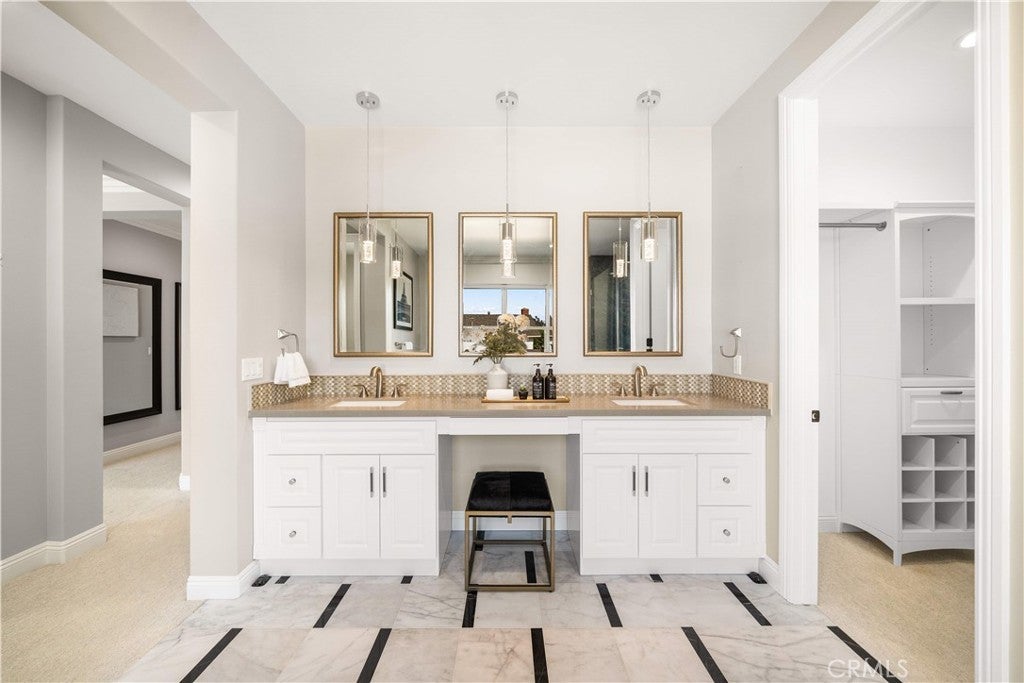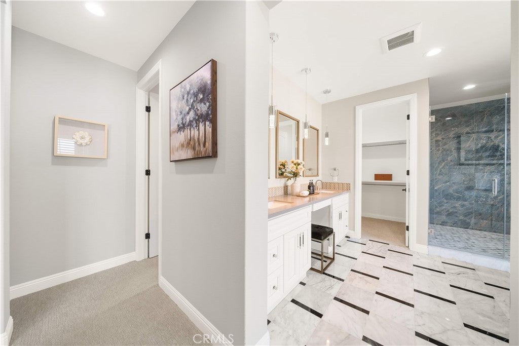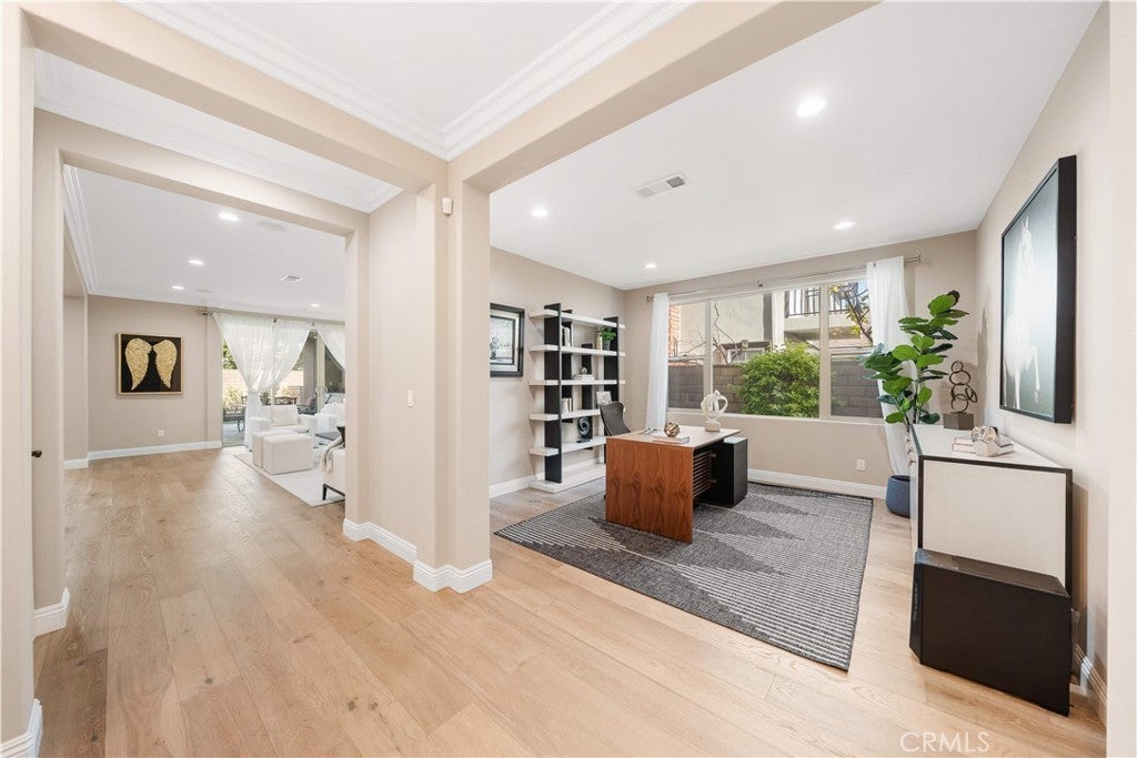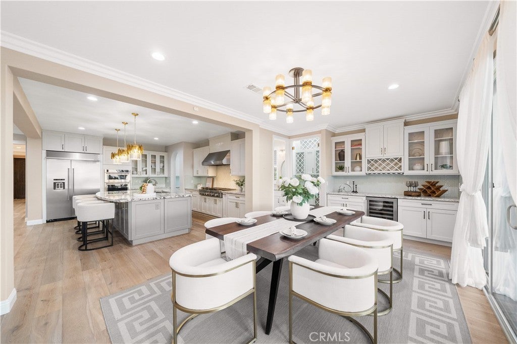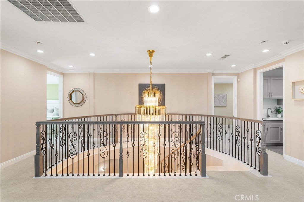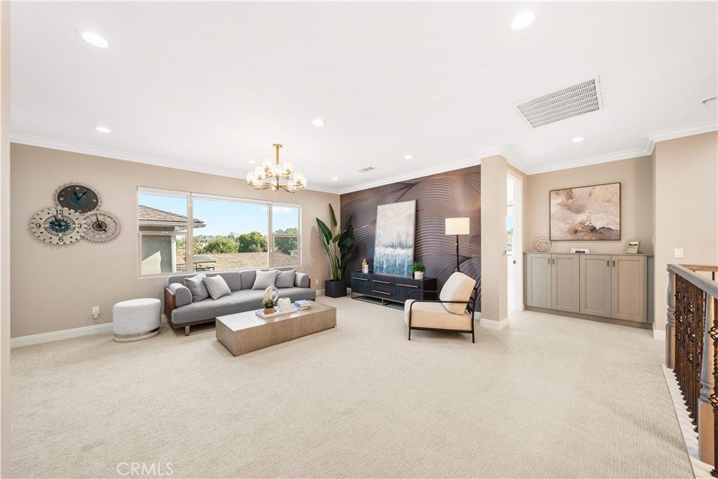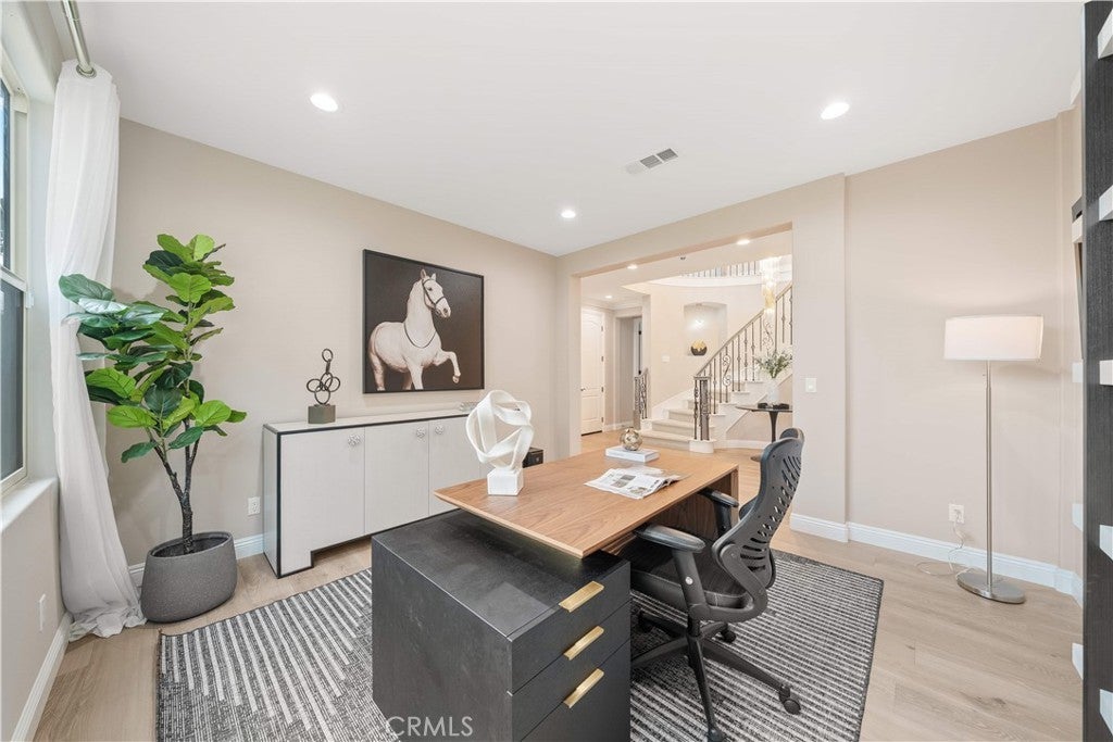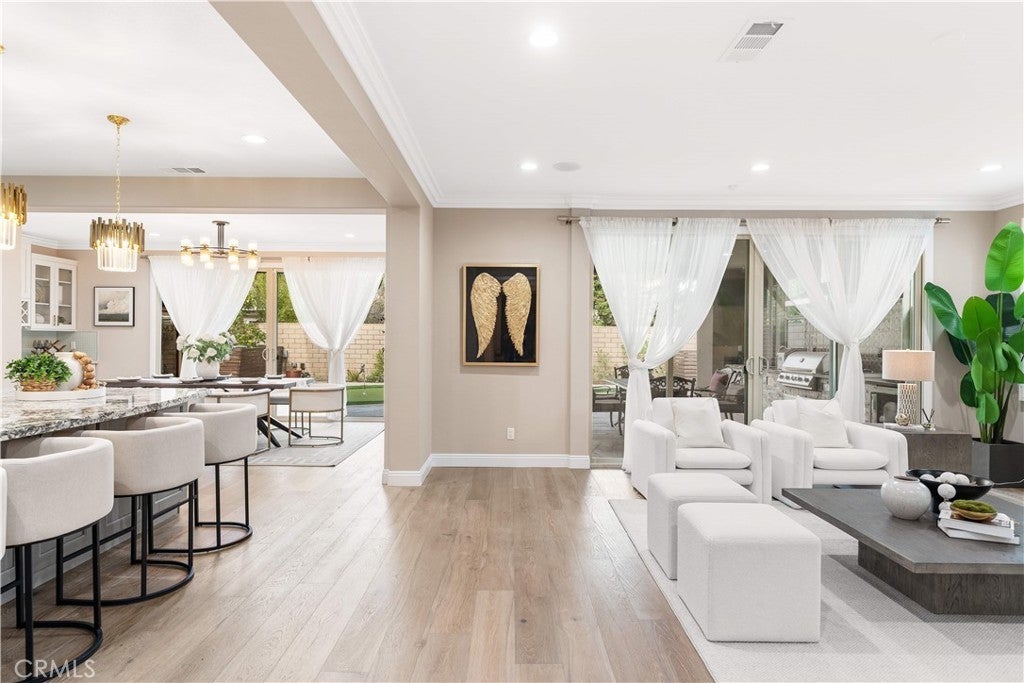 Premier Custom Residence in University Park | Rare Newer Construction in South Irvine Location Located in the highly sought-after University Park community in South Irvine, this extensively upgraded custom residence offers a rare opportunity to own a newer home in one of Irvine’s most established neighborhoods. Built in 2022, the home features quality craftsmanship, thoughtful design, and refined finishes throughout. A well-designed floor plan welcomes you inside. The main level includes two en-suite bedrooms with private entrances—ideal for multi-generational living or guests—along with a dedicated office and powder room. Interior highlights include a curved wrought-iron staircase, designer chandelier, and hardwood flooring throughout the first floor. The open-concept great room features expansive sliding glass doors that seamlessly connect indoor and outdoor living. The gourmet kitchen is equipped with glass display cabinetry, KitchenAid appliances, an oversized Sub-Zero built-in refrigerator, marble countertops, and a walk-in pantry. The dining area is surrounded by sliding glass doors and complemented by a wine refrigerator and storage. Upstairs, a spacious loft connects to a custom home theater, creating a flexible entertainment space. Four en-suite bedrooms are well-separated for privacy, including two primary suites: The primary suite 1 features double-door entry, dual vanities, a soaking tub, huge walk-in shower, and his-and-her walk-in closets with marble flooring. The primary suite 2 offers a private balcony and a multi-head shower for a spa-like experience.Two additional bedrooms are generously sized with highly upgraded bathrooms. The backyard is featuring a large California Room with built-in BBQ, refrigerator, and ventilation hood, plus a putting green. The flat, generously sized yard is a rare find in South Irvine. Additional features include fully paid solar, epoxy-coated garage flooring, natural stone hardscape in front and back yard, speakers , and a security system with surveillance cameras and alarm. Located in the award-winning University High School district and minutes from TVT. Walking distance to University Park Elementary, shopping and supermarket. Convenient access to UCI, golf courses, Newport Beach and major retail centers. Community amenities include pools, spa, tennis courts and sports fields.