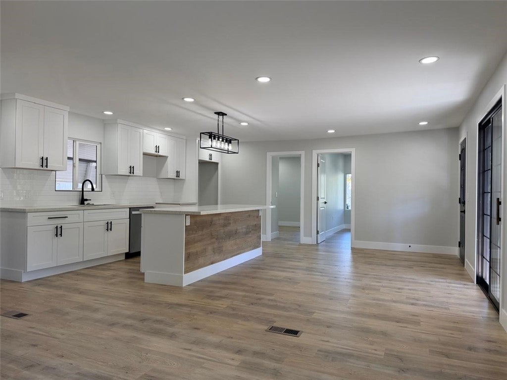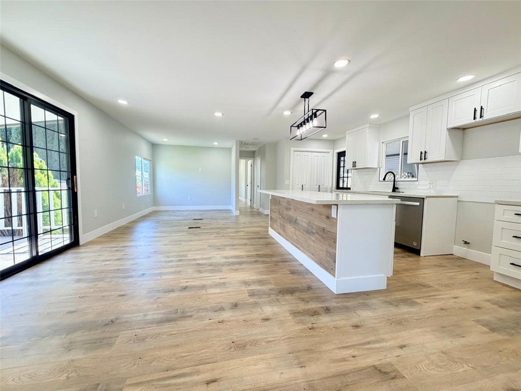 Move-in ready, Beautifully remodeled 3-bedroom, 2-bathroom mobile home offering a modern, open-concept design and high-end finishes throughout. The stunning kitchen serves as the heart of the home, featuring a large center island, sleek quartz countertops, custom cabinetry, and a stylish designer light fixture. This home features updated PEX plumbing with copper outlets and brand-new electrical throughout. NEW energy-efficient LED low-profile lighting throughout the home, all equipped with dimmers.
