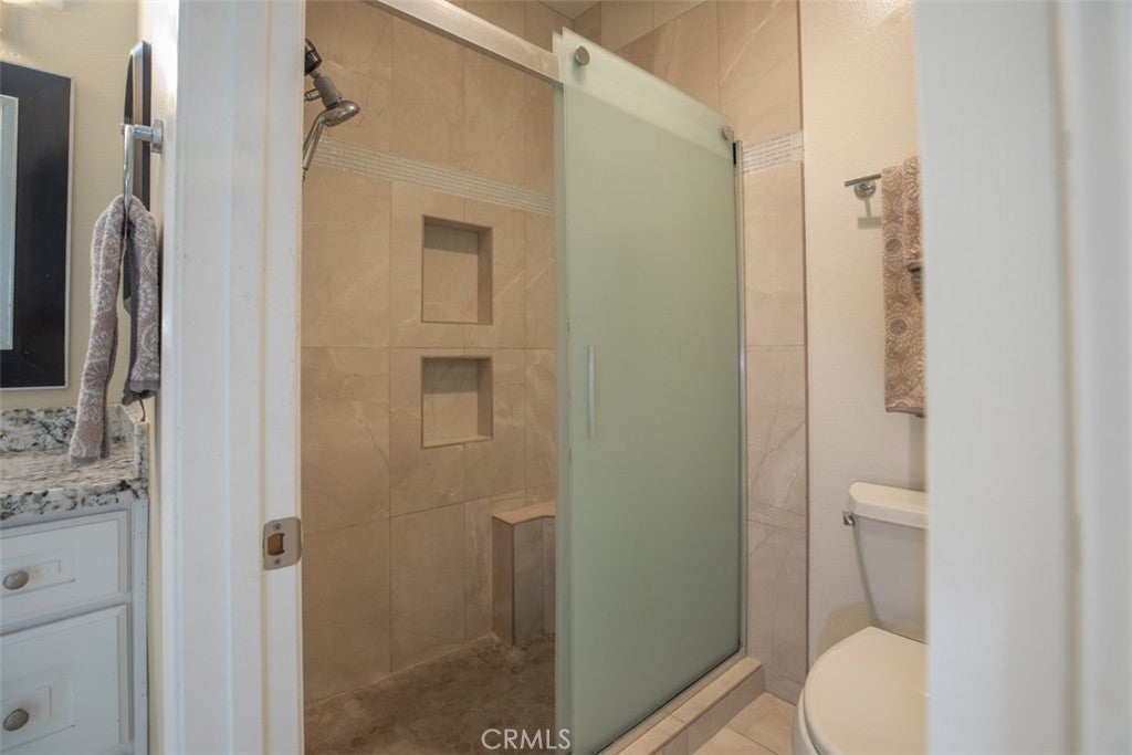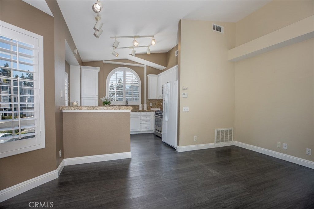 Welcome to Canyon Villas in Aliso Viejo! This beautifully updated, single-level 1-bedroom, 1-bath, end unit is ideally located in a prime interior location just steps from the pool, spa, and fitness center. Light and bright with soaring cathedral ceilings and interior shutters throughout, this upper-level condo offers an open-concept floor plan with upgraded flooring. The upgraded kitchen features granite countertops, stainless steel appliances, white cabinetry, and a decorative backsplash—perfect for both everyday living and entertaining. The spacious primary bedroom includes vaulted ceilings, a mirrored and generous walk-in closet, custom built-ins, while the bathroom has been tastefully updated with a gorgeous walk-in shower. Enjoy relaxing on your private balcony, complete with a convenient laundry closet with full-size washer and dryer. A detached one-car garage adds exceptional value and storage. Canyon Villas offers resort-style amenities including two swimming pools, spa, fitness center, clubhouse, and BBQ. Conveniently located near the 73 Toll Road and the 5 Freeway, with easy access to shopping, dining, entertainment, and just minutes from the beautiful beaches of South Orange County. Perfect for first-time buyers, downsizers, or investors—this turnkey is a must see!
