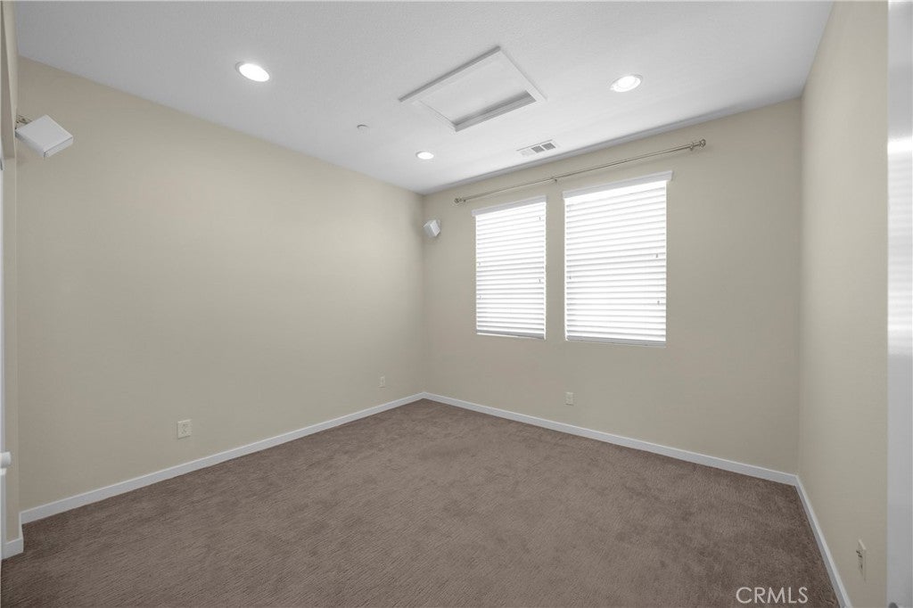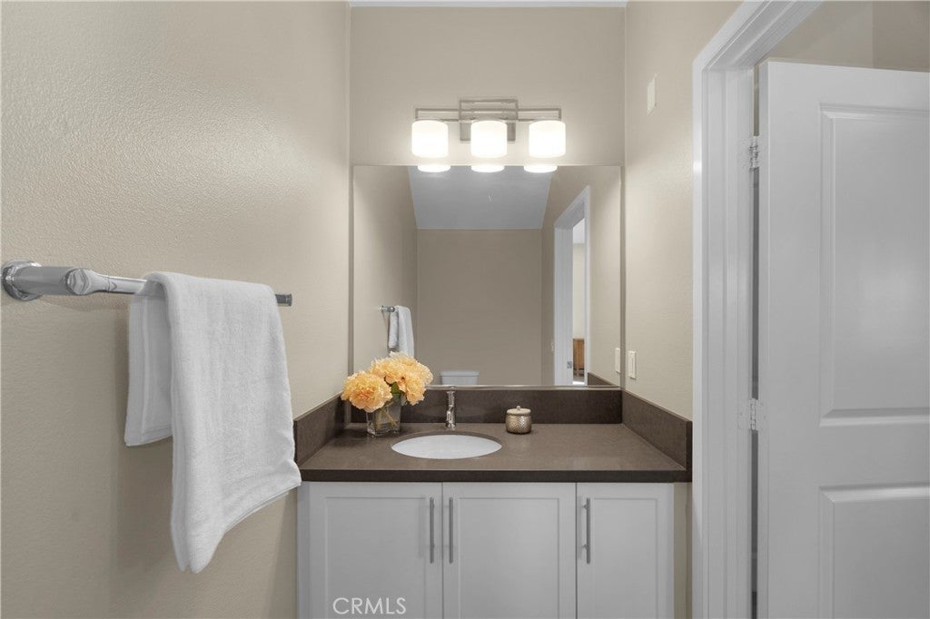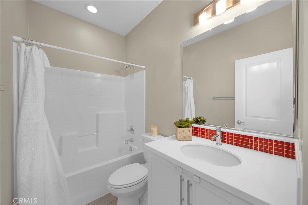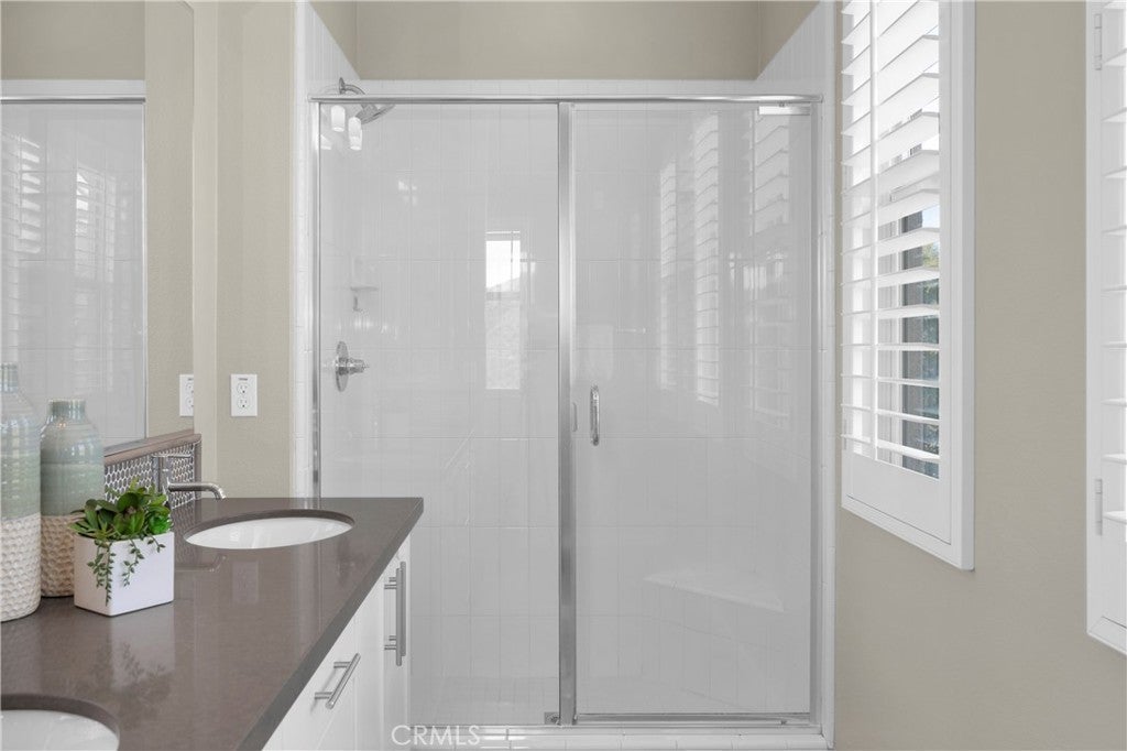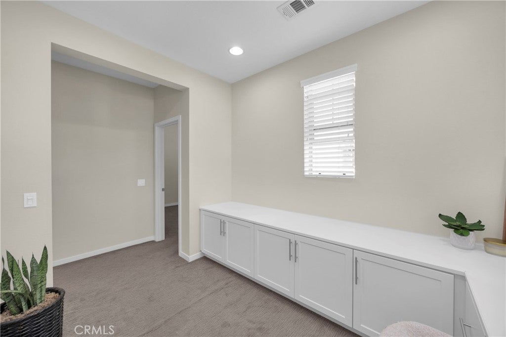 Perched on this elevated location in Sendero Lyon Cabanas, this FORMER MODEL HOME boasts panoramic views of the rolling hills, canyons and peekaboo ocean views allowing for cool breezes and gorgeous sunsets. Only attached on one wall, this 2 story property feels like a single family home. The kitchen includes gray quartz countertops and oversized island with seating for 4, white cabinetry with ample storage, glass subway tile backsplash, beautiful RH Glass pendants and stainless appliances including a 5-burner double oven range and full sized refrigerator. The adjacent great room is bathed in light from all of the windows that showcase the gorgeous view everywhere you look. Also access the large greenbelt in front of the house and take in the sunsets outside the single hung French Door just off the great room. Convenient powder bath with built-in cabinet with quartz counters completes the downstairs. This highly sought after floorplan boasts a spacious master suite with hillside and canyon views, large windows creating a light and airy feel and a large walk-in closet. An ensuite primary bath with dual sinks, quartz counters, custom backsplash and a step in tiled shower complete this primary sanctuary. The second level also features an office with wrap around built-in desk and cabinetry, generous secondary bedroom, secondary bath with quartz counter tops and tub/shower and upstairs laundry with included machines. Easy care oversized tile floors downstairs, plush carpet on the second level, recessed lighting in every room and custom woven grasscloth roman shades create a finished designer look. Attached 2 car garage with custom cabinets, built in workspace and epoxy floors round out this steal of a deal! Step onto the outdoor veranda providing plenty of space to relax, bbq or dine. Steps from the Outpost Pool with resort pool, jacuzzi spa, resort style bar, bocce courts, community clubhouse with full kitchen and BBQ patio. Live the resort lifestyle in this wonderful home with access to walking trails, 8 pools, workout gyms, arcade, firepits and more. Welcome Home!