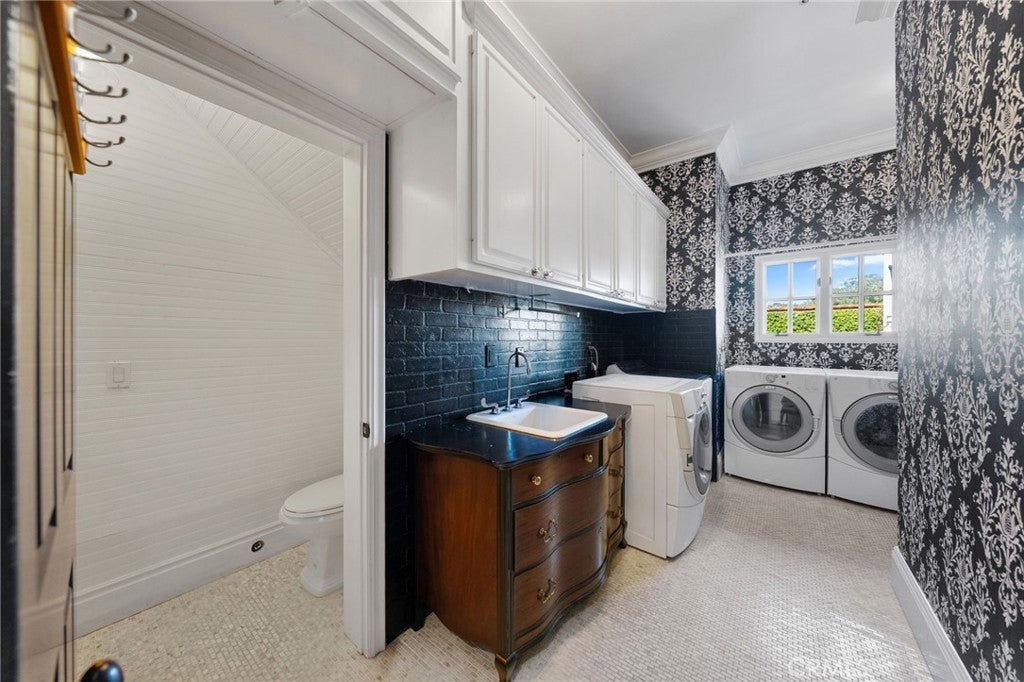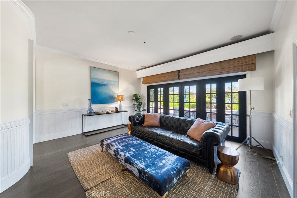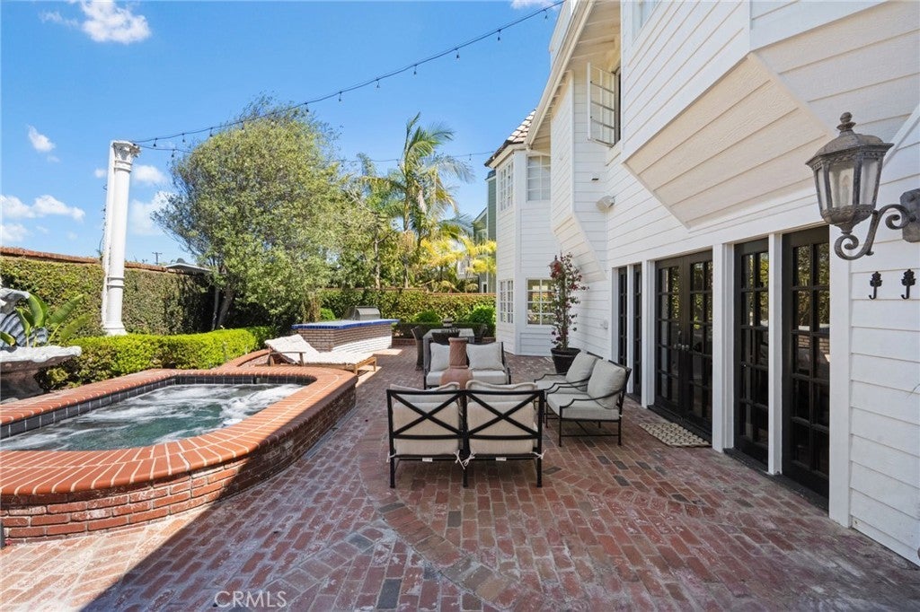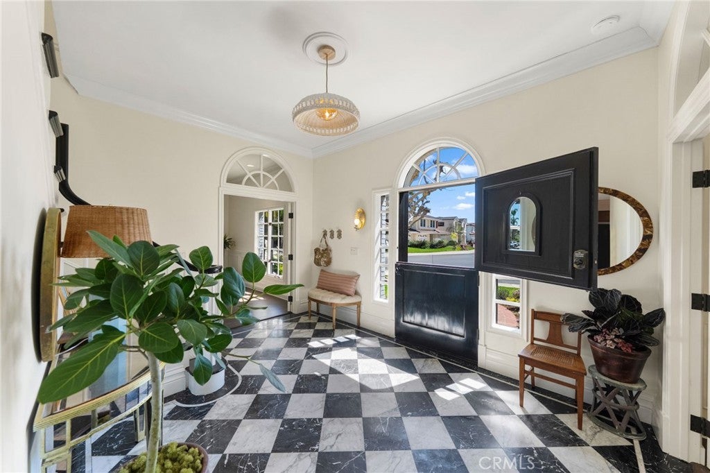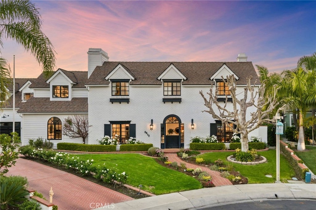 Behind the gates of Cyprus Cove, at the end of a cul-de-sac, sits a timeless Stanford Colonial just moments from the beach. Defined by classic brickwork, elegant symmetry, and architecture that never goes out of style. A brick pathway leads to a welcoming Dutch door and gracious entry, where black-and-white checkered marble floors, soaring ceilings, and custom solid wood millwork set the tone for a residence rooted in heritage and design. Simple classical detailing and balanced scale create a sense of architectural integrity rarely found today. At the heart of the home lies a kitchen designed to stand the test of time. Evoking the elegance of Colonial Revival architecture, it features striking black-and-white marble floors and countertops, dual Sub-Zero refrigeration, an expansive island, and a dramatic 60-inch Garland range. The main level unfolds into beautifully proportioned living spaces, including formal living and dining rooms, a spacious family room, media room, and a distinctive poker parlor with wet bar—ideal for both everyday living and elevated entertaining. Two staircases lead to the private quarters, where the primary suite offers a fireplace, generous walk-in closet, and ensuite bath, complemented by two additional bedrooms and a second-floor family room. A third staircase leads to two additional bedrooms and a full bath, offering a sense of separation ideal for guests, extended family, or flexible living. Outdoors, generous brick patios and an in-ground jacuzzi create a relaxed coastal retreat, surrounded by mature landscaping and a private backyard setting. A rare side yard offers potential for a sports court or additional parking for a boat or RV. Residents of Cyprus Cove enjoy private beach access, a clubhouse, tennis courts, park, and pool—all just minutes from world-famous Trestles surf break, downtown San Clemente, and the coastal beach trail. Classic in spirit, rich in character, and quietly luxurious, this iconic Stanford Colonial features soul, scale, and enduring appeal.