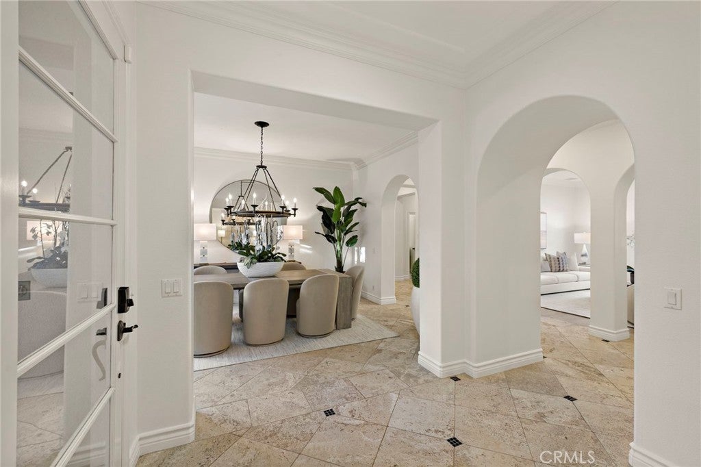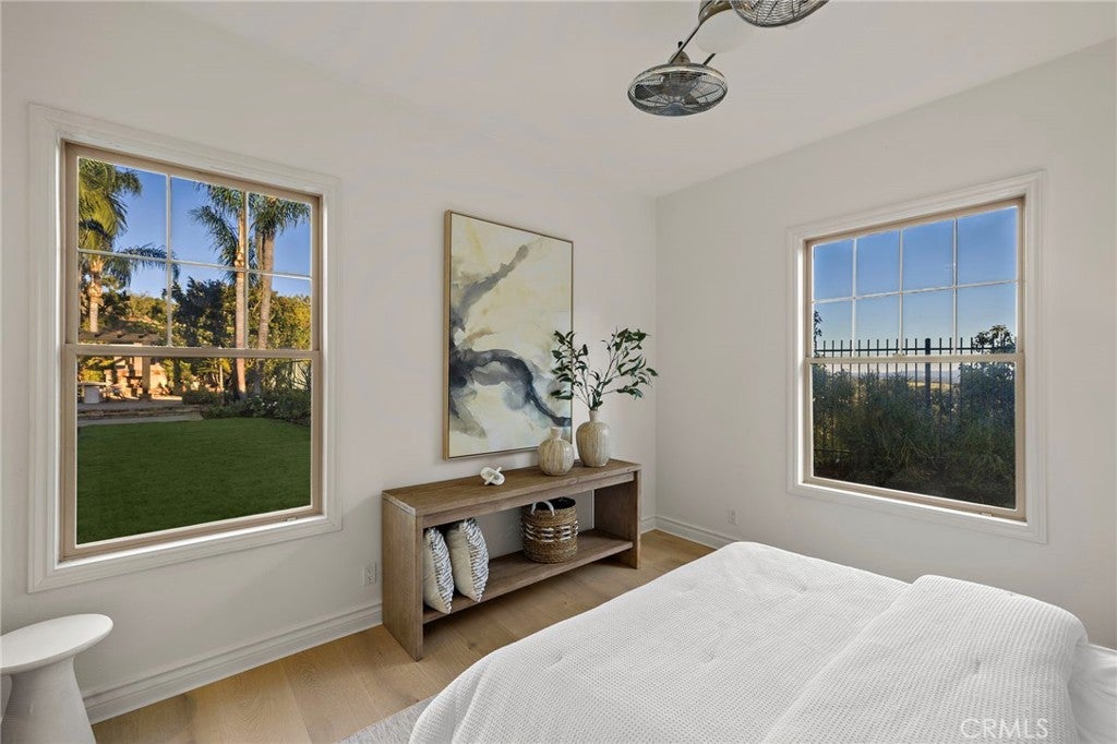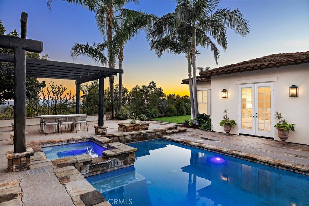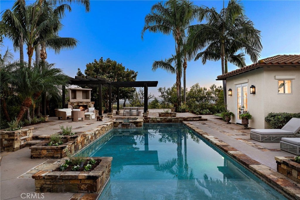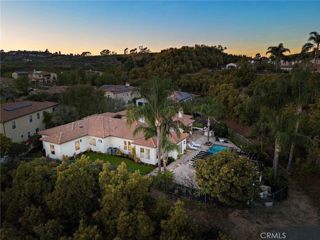 Set on one of the largest lots in the coveted, gate guarded community of Emerson, this rarely available single level estate offers 4,333 ± sf of refined living on an expansive 18,030 ± sf cul de sac lot. Nestled for exceptional privacy, the home is surrounded by avocado groves with city light and mountain views providing a quiet, scenic backdrop to everyday living. Step through a tranquil atrium and breezeway into the formal living and dining rooms, where elegance meets comfort. The chef’s kitchen, beautifully remodeled with a Black Leathered Granite island, Viking cooktop and microwave, Thermador double oven, KitchenAid dishwasher, and Dacor built in refrigerator, flows seamlessly into the informal dining and family room, both opening effortlessly to the backyard oasis. Outside, the estate is designed for relaxation and entertaining. Unwind in the sparkling pool and spa, gather around the built in fireplace, or enjoy alfresco dining at the fully equipped outdoor kitchen. The expansive grounds now feature generous, lush grassy areas, perfect for recreation, gatherings, or simply enjoying the home’s remarkable sense of space and privacy. The home has been thoughtfully expanded to include an additional bedroom and generous bonus room, ideal for extended family or guests. Built with steel beams for enduring stability and featuring dual whole house fans with independent controls, the residence combines durability with sophisticated luxury. This exceptional single level estate offers a rare blend of scale, privacy, and understated elegance within one of the area’s most desirable communities.