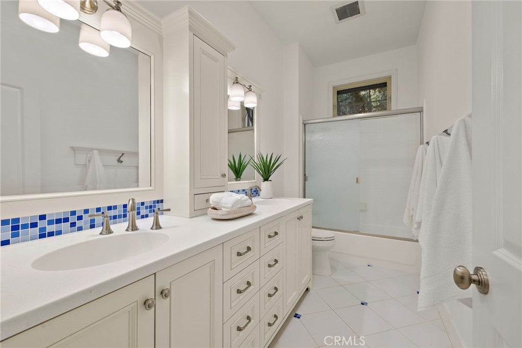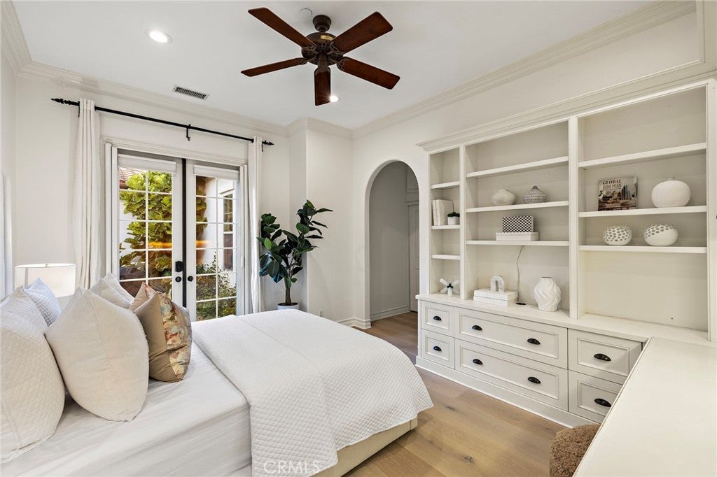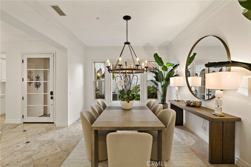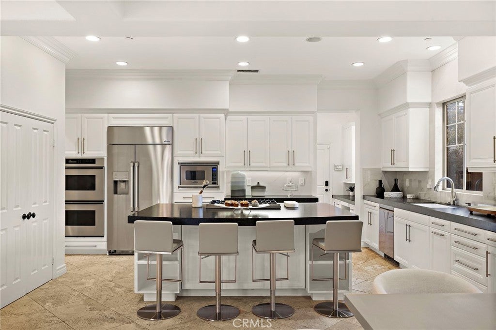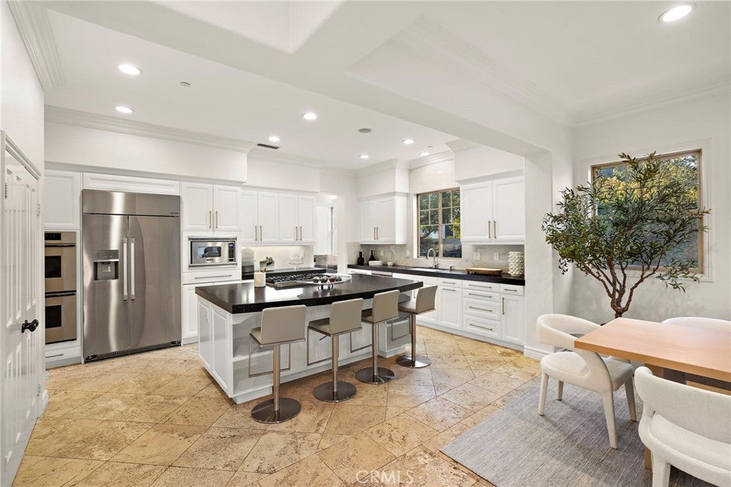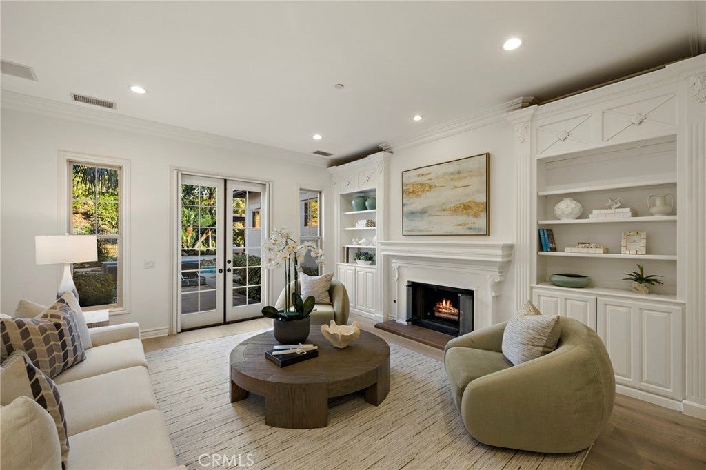 Set on one of the largest lots in the coveted, gate guarded community of Emerson, this rarely available single level estate offers 4,333 ± sf of refined living on an expansive 18,030 ± sf cul de sac lot. Nestled for exceptional privacy, the home is surrounded by avocado groves with city light and mountain views providing a quiet, scenic backdrop to everyday living. Step through a tranquil atrium and breezeway into the formal living and dining rooms, where elegance meets comfort. The chef’s kitchen, beautifully remodeled with a Black Leathered Granite island, Viking cooktop and microwave, Thermador double oven, KitchenAid dishwasher, and Dacor built in refrigerator, flows seamlessly into the informal dining and family room, both opening effortlessly to the backyard oasis. Outside, the estate is designed for relaxation and entertaining. Unwind in the sparkling pool and spa, gather around the built in fireplace, or enjoy alfresco dining at the fully equipped outdoor kitchen. The expansive grounds now feature generous, lush grassy areas, perfect for recreation, gatherings, or simply enjoying the home’s remarkable sense of space and privacy. The home has been thoughtfully expanded to include an additional bedroom and generous bonus room, ideal for extended family or guests. Built with steel beams for enduring stability and featuring dual whole house fans with independent controls, the residence combines durability with sophisticated luxury. This exceptional single level estate offers a rare blend of scale, privacy, and understated elegance within one of the area’s most desirable communities.