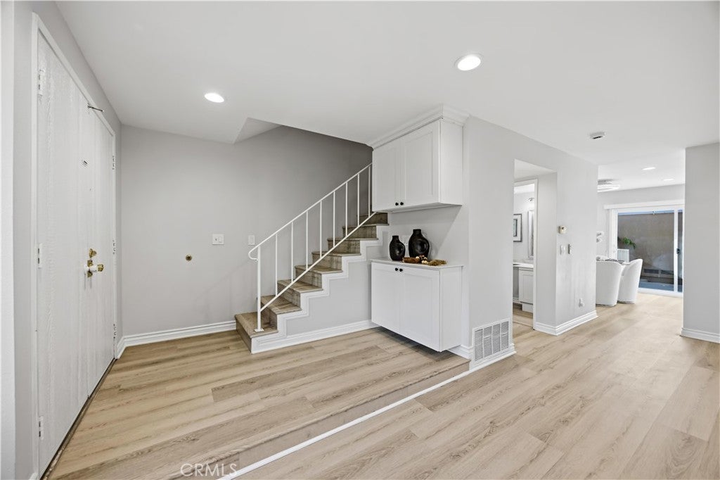 Prime location in the heart of Irvine! This beautifully upgraded home is within walking and biking distance to top-rated Irvine Unified schools (elementary, middle, and Irvine High School) as well as Irvine International Academy. The public library, Heritage Park, and Woolley Aquatics Center are just across the street, with shopping, dining, and more nearby—offering exceptional convenience for everyday living. This is one of the largest townhouse floor plans in the community, enhanced by a permitted fourth bedroom addition—Rare to find and ideal for growing or multi-generational families. The home is in true turnkey condition, featuring extensive upgrades completed in recent years, including newer flooring, refreshed interior paint, smooth ceilings, a remodeled kitchen with updated cabinetry and countertops, and beautifully renovated bathrooms. The spacious and functional layout includes a bright living room and dining area. The upgraded kitchen offers abundant storage, granite countertops, recessed lighting, and opens seamlessly to the dining area—creating a natural flow that makes it easy for family members to connect and interact. The first floor also features a remodeled powder room and additional storage space under the staircase. Upstairs features four generously sized bedrooms and two full bathrooms. The primary suite includes dual sinks, while all bathrooms are tastefully updated with quartz countertops and tile flooring. Additional highlights include luxury vinyl plank floor, wood baseboards, and new ceiling fan light fixtures in every room. Enjoy indoor-outdoor living with French doors leading to a private courtyard patio, ideal for relaxing. The patio provides direct access to the attached two-car garage. Step outside to enjoy lush greenbelt views, nearby parks, and resort-style community amenities, including a pool and wading pool—just a short walk away. Located in one of Irvine’s most desirable neighborhoods, this home offers the perfect blend of space, upgrades, location, and lifestyle. An exceptional opportunity for families seeking comfort, convenience, top-tier schools, and flexible living for multi-generational households. Come to see it and make this your new home!!!