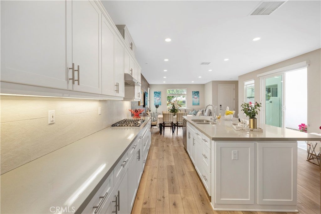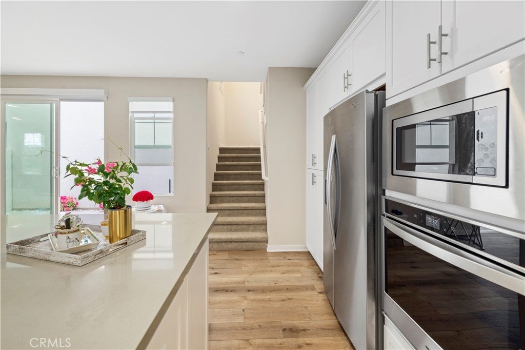 Welcome to 134 Modjeska, a beautifully upgraded detached condo nestled in the highly sought-after Great Park Neighborhoods of Irvine. Built in 2019, this modern residence offers approximately 1,789 square feet of thoughtfully designed living space, featuring 3 spacious bedrooms and 2.5 bathrooms. Step inside to an open-concept floor plan filled with natural light, where the contemporary kitchen seamlessly flows into the dining and living areas—perfect for both everyday living and entertaining. The kitchen is equipped with stylish quartz countertops, a large center island, and energy-efficient appliances, creating a functional yet elegant space. Upstairs, you’ll find all bedrooms thoughtfully positioned for privacy, including a generous primary suite with a walk-in closet and a well-appointed en-suite bath. The home also features modern finishes such as LVP flooring, central heating and air conditioning, and energy-efficient systems throughout. Ideally located just a short walk to Cadence Park K-8 and within the award-winning Irvine Unified School District, this home offers both convenience and top-tier education. With nearby shopping, dining, and easy access to major freeways, this is Southern California living at its finest.