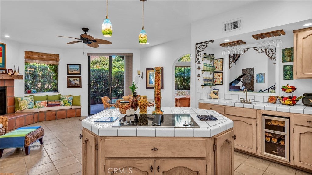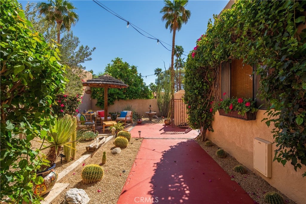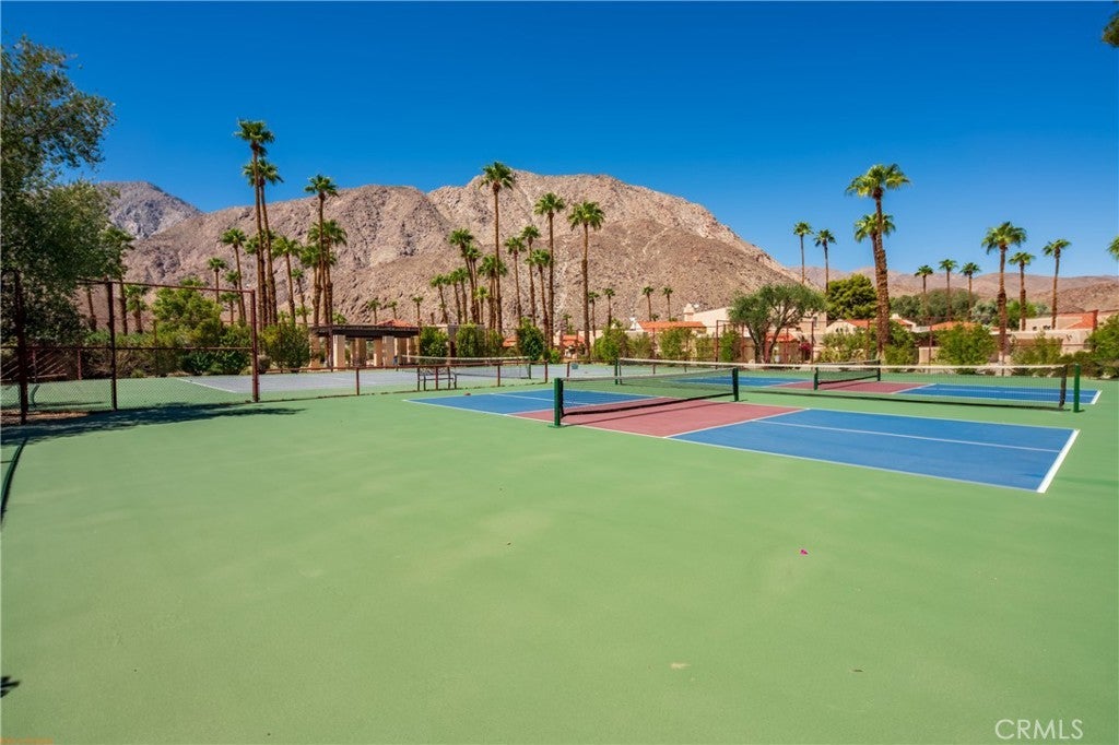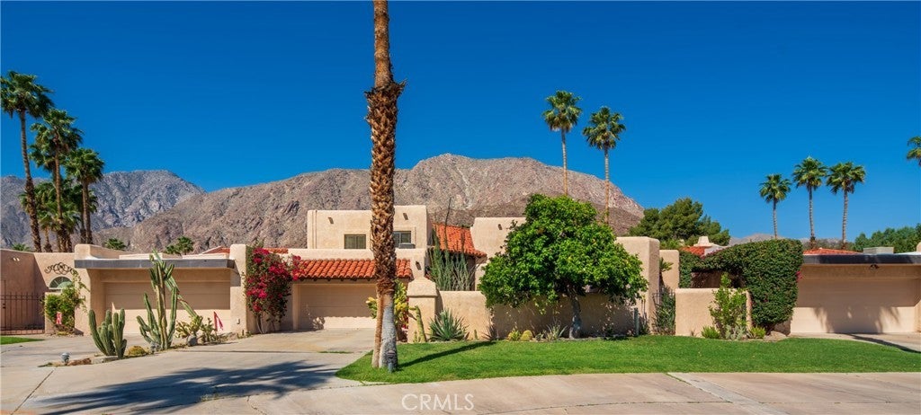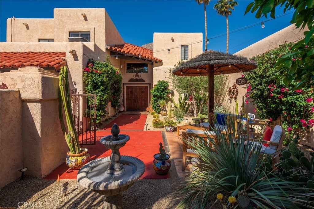 Price improvement. Motivated seller, don't miss out on this beautiful home with owned solar for energy savings and upgrades galore! Please see the supplements for the detailed list. Gorgeous landscaped and vibrant front courtyard, you’re immediately greeted by the stunning custom double-door entry handcrafted in Michoacán, Mexico. This gorgeous home is truly an entertainer’s dream. Guests will be wowed the moment they step inside, taking in the architectural details—vaulted tongue-and-groove ceilings in the living room and a sweeping staircase that sets an impressive tone. Offering nearly 3,000 square feet, this 3-bedroom, 3-bathroom residence includes a convenient downstairs bedroom and full bathroom, complete with sliding glass doors that open to the private back patio. Upstairs, the spacious primary suite features its own bathroom, while the additional bedroom and bathroom provide comfort and privacy. Both upstairs bedrooms offer viewing decks with close-up, unobstructed views of the iconic Indian Head Mountain. Owned solar and two split systems provide year-round comfort and energy savings—just two highlights from the seller’s extensive list of upgrades. Please see the list of improvements in the supplements. The chef’s kitchen features a large island perfect for gatherings, the connected family room offers a cozy fireplace with an updated hearth and mantle, ideal for relaxing evenings at home. Ideally located near shopping and just moments from the renowned De Anza Golf Course—where memberships are available—this home is a golfer’s dream. Association amenities just steps away include a sparkling pool, relaxing spa, and tennis court, offering resort-style living year-round