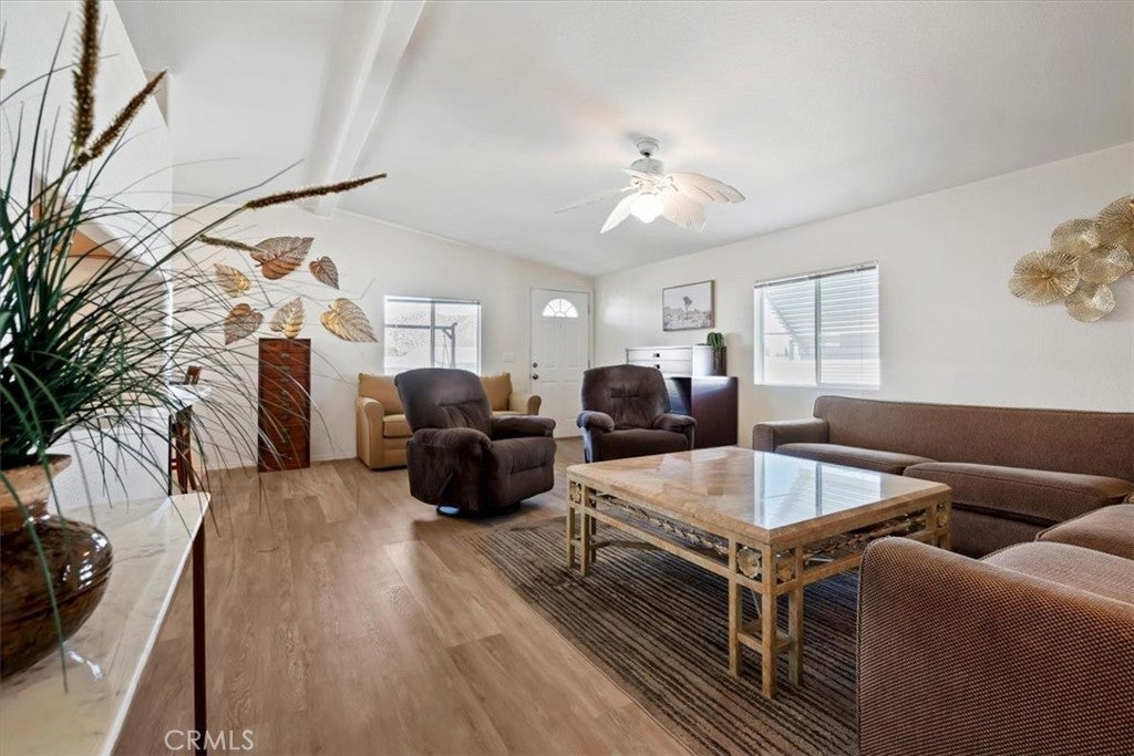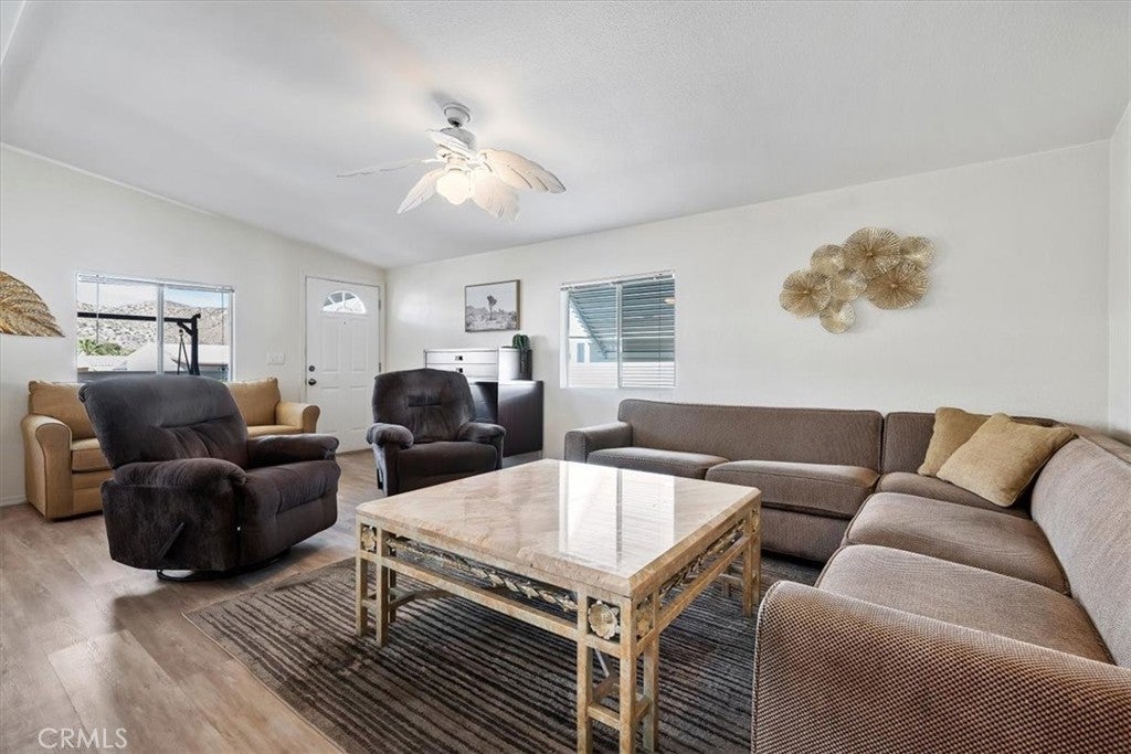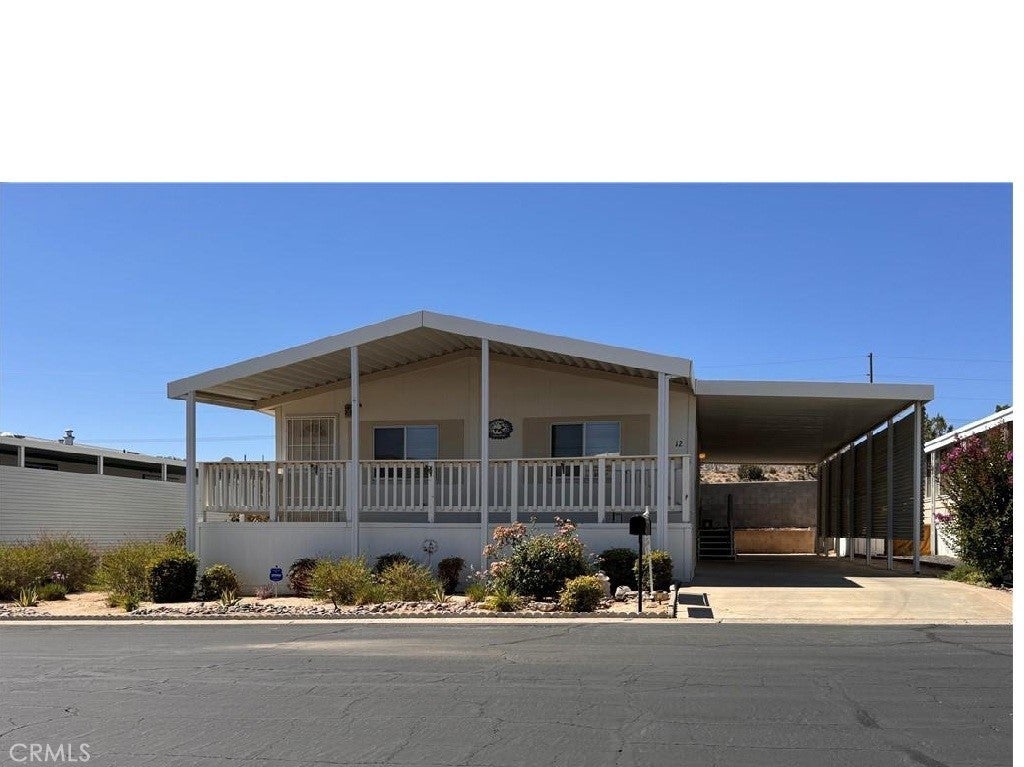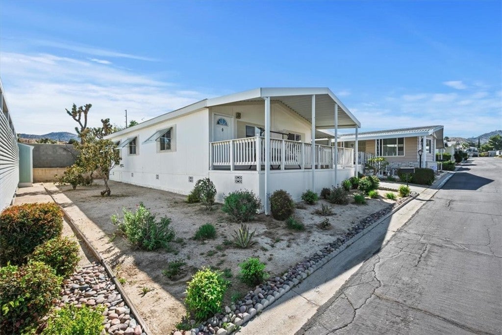 Located in the desirable Country Club Mobile Estates 55+ community, this furnished 2004 manufactured home offers 2 bedrooms, 2 full bathrooms, and beautiful mountain views. Community amenities include pool, spa, and clubhouse, creating a peaceful, resort-style environment. Conveniently situated across from Hawks Landing Golf Course and near the Yucca Valley Senior Center. RV/boat storage available for $50/month. Interior features include vaulted ceilings, durable ¾” tongue-and-groove plywood flooring, new carpet, new luxury vinyl flooring, and fresh interior paint. Functional layout with two full bathrooms and stackable washer and dryer included. Home is being offered furnished as shown, and includes multiple items of value such as large flat-screen Roku TVs, adjustable split king bed, and additional furniture (buyer to verify). Pet-friendly community (buyer to verify park rules). Move-in ready and professionally cleaned.