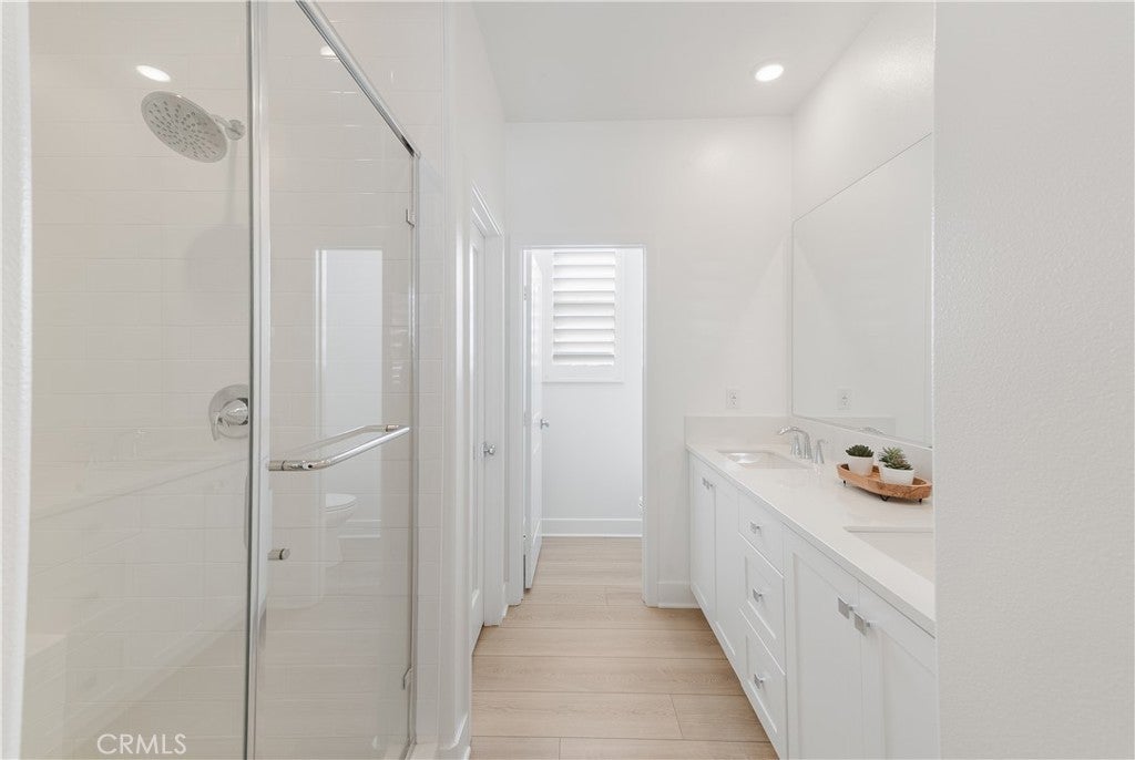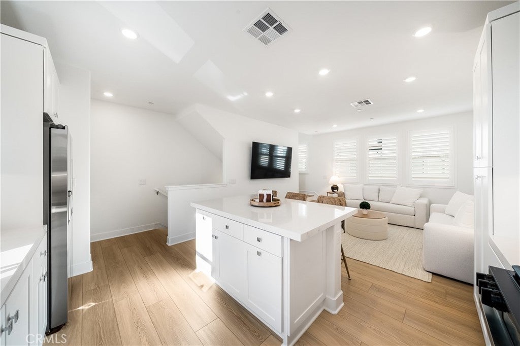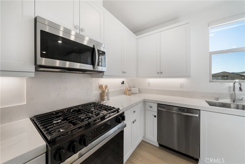 Experience modern living at it's best in this three-level townhome located in the desirable Mariposa neighborhood of Rancho Mission Viejo. The entry level features a convenient one car garage with epoxy flooring and plantation shutters. The main level showcases an open-concept layout that seamlessly connects the kitchen and family room, creating the perfect space for everyday living and entertaining. This home is equipped with designer upgrades including vinyl flooring, plantation shutters, stainless appliances, quartz counter tops and white cabinets. Upstairs is the laundry room and private owners suite, featuring a large bathroom and walk-in closet.