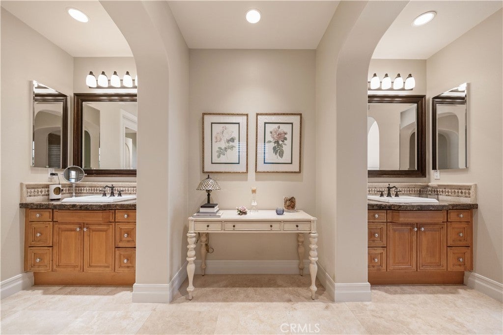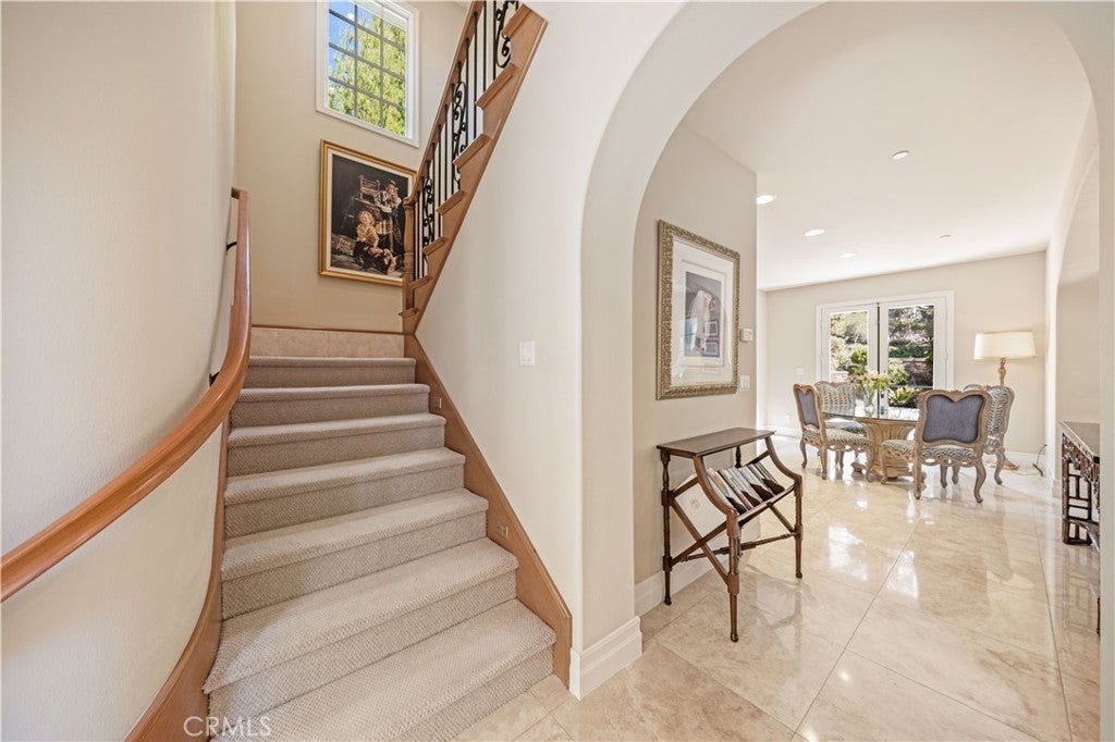 Located within the exclusive guard-gated Summit at Turtle Ridge, 20 Blue Summit is an Italian-inspired estate exuding luxury, privacy, and resort-style living. Resting on a quiet cul-de-sac corner lot with an expansive wraparound parcel of about 11,114 square feet, the property offers a large front yard, a private backyard oasis, and travertine flooring throughout. This approximately 4,221-square-foot residence features 4 bedrooms and 5.5 bathrooms, including a luxurious main-level primary suite. Elegant living areas include a formal living room and dining room, a family room, a high-ceiling office, and a versatile bonus room. A beautifully appointed gourmet kitchen—featuring a large island, custom backsplash, and a walk-in pantry—anchors the home. The outdoor experience is equally captivating, with lush landscaping, fountains, a courtyard with a fire pit and fireplace, a cabana, and an outdoor bar and cooking area. Residents enjoy exclusive Turtle Ridge amenities—resort-style pools, fitness centers, parks, trails, and top-rated Irvine schools—completing this rare offering of refined, resort-like living.