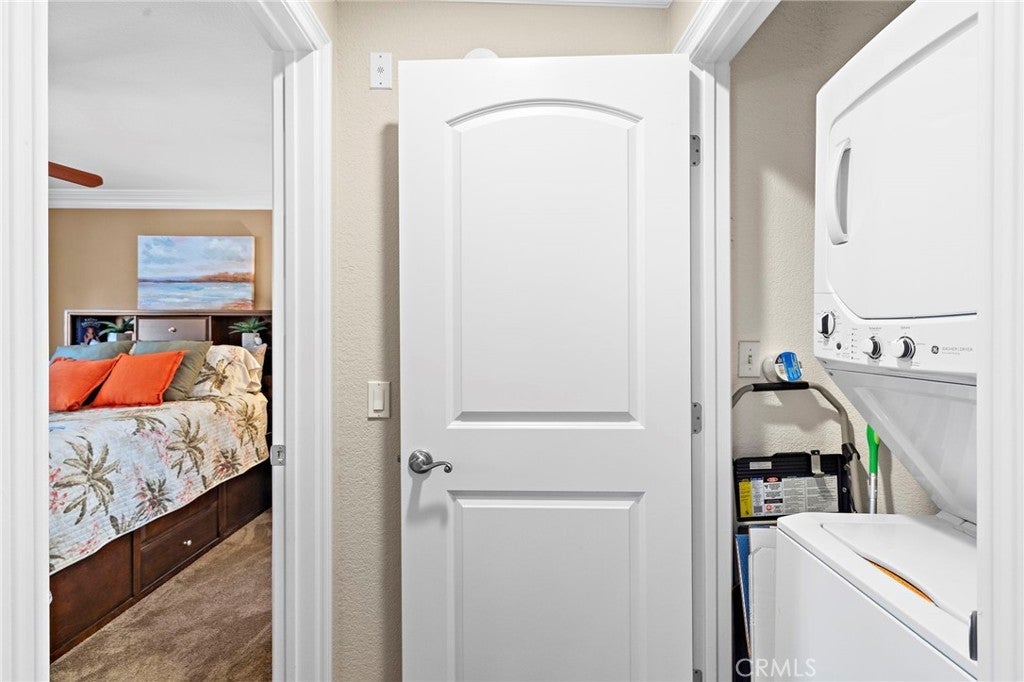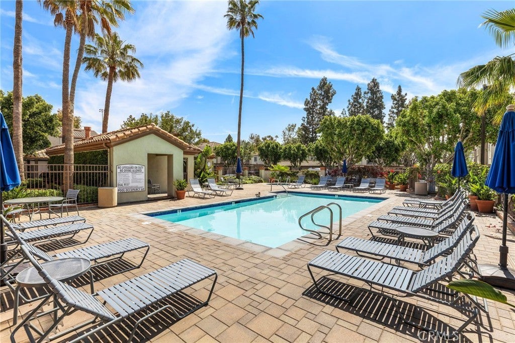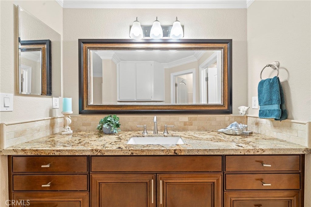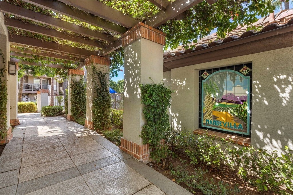 Absolutely Stunning Upper-Level Condo in a Quiet Interior Location within the Highly Sought-After Resort-Style Community of Mandevilla in Tustin Ranch! Enjoy a low HOA of just $275/month. This beautifully upgraded 1-bedroom, 1-bath home includes a single-car garage featuring newer epoxy flooring and an oversized private balcony with two convenient storage closets. Showcasing impeccable taste and high-end finishes throughout, this home offers an open and airy floorplan enhanced by crown molding, designer paint, smooth ceilings, ceiling fans, raised panel interior doors, custom window and door casements, and oversized baseboards. Additional upgrades include newer central HVAC system, hypoallergenic carpeting, and stylish wood-look vinyl flooring in the kitchen. The completely remodeled gourmet kitchen is a true highlight, featuring granite countertops, a glass mosaic tile backsplash, custom dark wood cabinetry, stainless steel appliances (including microwave, dishwasher, and refrigerator), a coffered ceiling, recessed lighting, a stainless sink, and a breakfast bar with elegant pendant lighting. The spacious living room opens to the balcony, creating a seamless indoor-outdoor flow, while the full-size dining area connects perfectly to both the living room and kitchen—ideal for entertaining. There is also an inside laundry closet with a newer stackable washer and dryer for added convenience. The generous primary suite offers direct balcony access, a walk-in closet, and a beautifully updated bathroom with an extended granite vanity and a tiled tub/shower combo with a glass enclosure. Residents enjoy resort-style amenities including two sparkling pools, a spa, BBQ areas, tot lot, clubhouse, fully equipped fitness center, and lush, well-maintained grounds with scenic walking paths. Ideally located near top-rated schools, a sports park, Tustin Marketplace, shopping, dining, and a nearby golf course, this home offers the perfect blend of comfort, style, and convenience.
