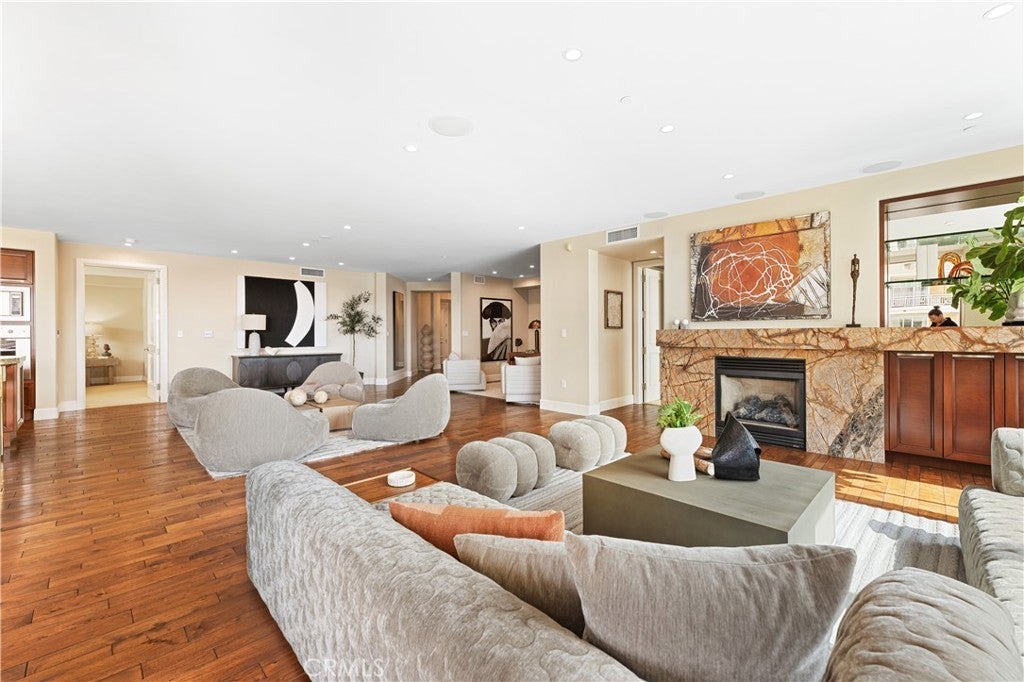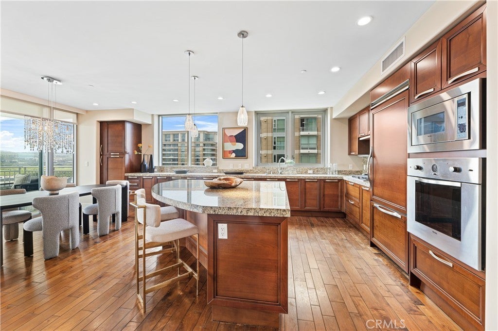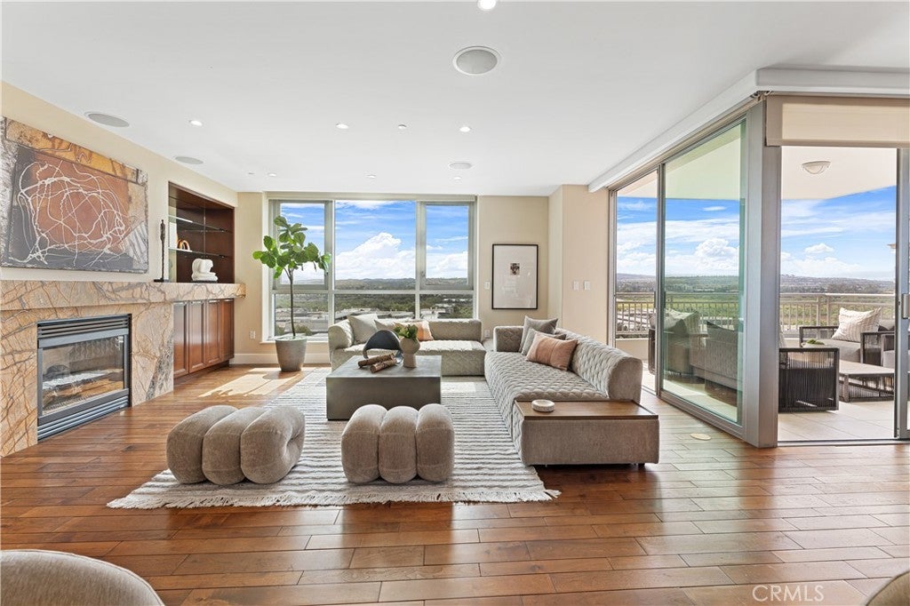 Perched on the 10th floor of the prestigious 3000 Plaza building, this sophisticated two-bedroom, two-and-a-half-bath corner residence offers a rare high-altitude lifestyle in Irvine’s most desirable high-rise community. The expansive, open-concept floor plan is defined by rich hardwood floors and an airy layout flooded with natural light through expansive windows and a sliding glass door leading to the private terrace. A chef-inspired kitchen featuring high-end appliances flows seamlessly into a massive great room, perfect for entertaining or quiet relaxation against a panoramic backdrop of unobstructed, forever views. This unique corner position ensures additional privacy and enhanced vistas compared to standard units. Step out onto the balcony to experience an exclusive vantage point situated near the building's celebrated rooftop pool. Beyond the home's interior, which includes a rare private storage unit, residents enjoy a true luxury "lock-and-go" experience with monthly HOA fees that conveniently include water, trash, cable TV, and high-speed internet. World-class amenities provide an elite sanctuary, including 24-hour concierge and security, a state-of-the-art fitness center, a third-floor spa, and a resort-style rooftop pool with fire pits and a club room, all located in close proximity to top-tier dining and local cafes.