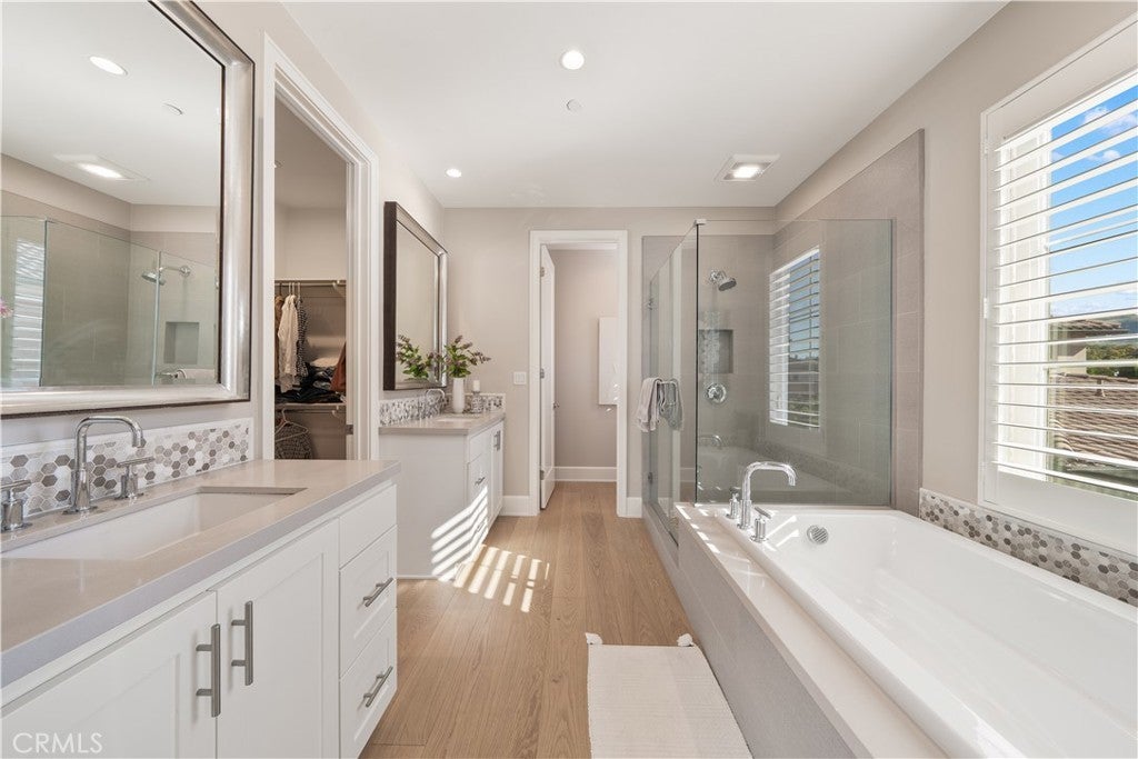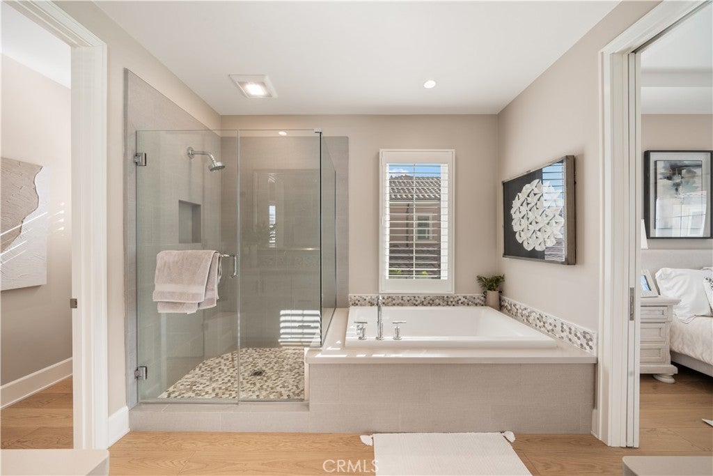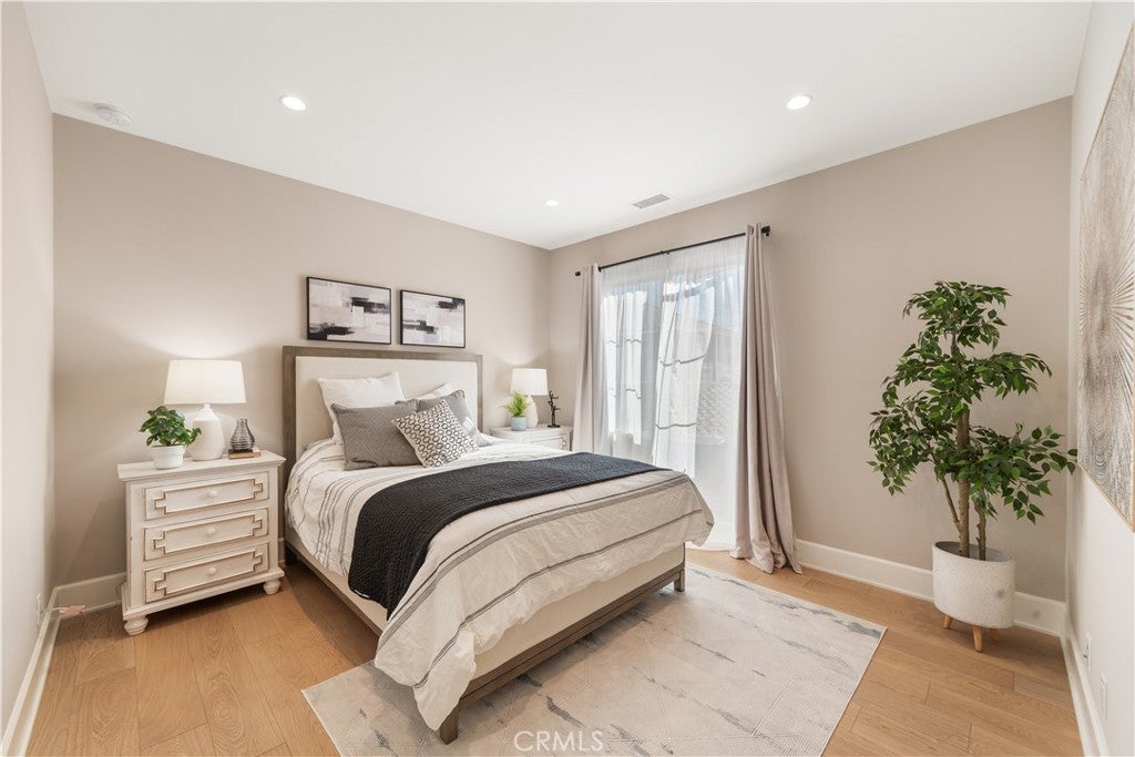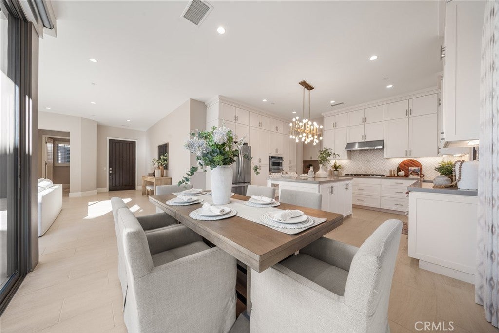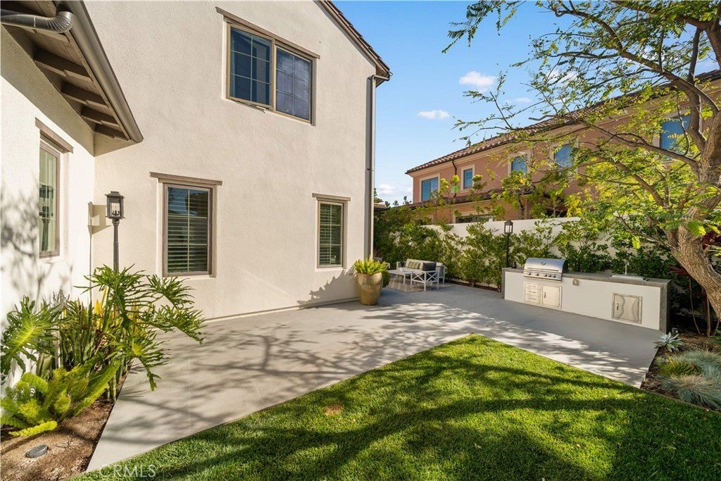 Located in the highly sought-after Reserve at Orchard Hills, a prestigious 24-hour guard-gated community, this beautifully upgraded home features a rare, generously sized backyard with desirable south- and east-facing exposure, allowing for abundant natural sunlight throughout the day. Thoughtfully designed for both relaxation and entertaining, the outdoor space includes a built-in BBQ and ample room for gatherings, creating a bright and inviting extension of the home. Inside, the home showcases model-home level upgrades throughout, with a bright and open-concept layout on the main level. The living room, dining area, and kitchen flow seamlessly together, enhanced by multiple large sliding glass doors that open to the backyard and fill the space with natural light. The kitchen is both stylish and functional, featuring ceiling-height cabinetry, quality finishes, a spacious layout, and a walk-in pantry. A main-level ensuite bedroom provides flexibility for guests or multi-generational living. The first floor is finished with upgraded, durable stone flooring, while the second level features elegant French oak wood flooring, adding warmth and sophistication throughout. Upstairs, the home offers a spacious primary suite and two additional bedrooms. The primary suite is filled with natural light from large windows and features a well-appointed ensuite bathroom with dual vanities, a soaking tub, a walk-in shower, and a walk-in closet, creating a comfortable and functional private retreat. All bathrooms are upgraded with finishes selected from the original model home package, creating a cohesive and refined aesthetic. Additional upgrades include plantation shutters, motorized shades, and a highly efficient Whole House Fan system, significantly reducing cooling costs and providing a practical solution for Southern California summers. Ideally situated within walking distance to award-winning Northwood High School and just moments from the community pool, park, and clubhouse, the home offers both convenience and a serene, resort-style setting.