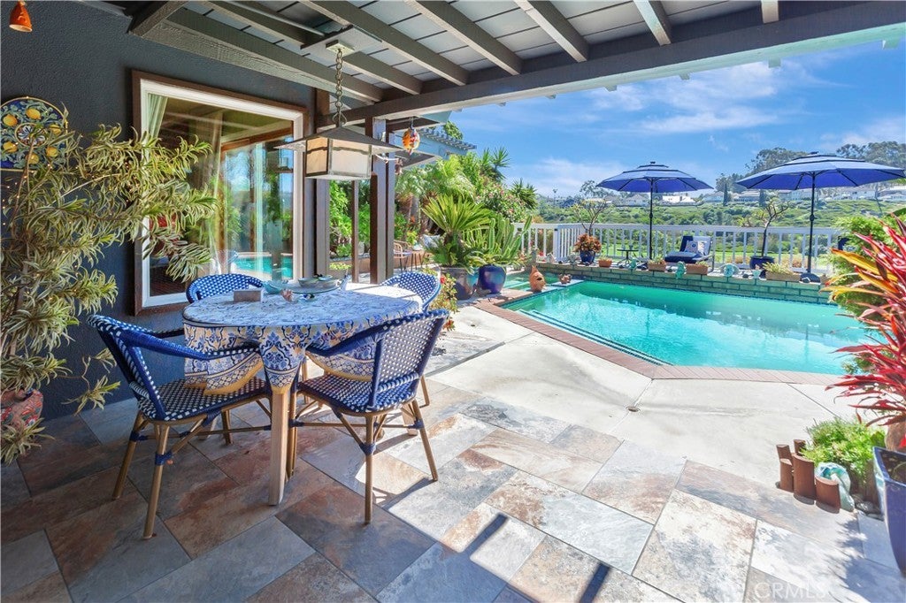 Back On Market! Rare opportunity to acquire a single-level golf course view home on an expansive 12,000 sq. ft. lot in one of Laguna Niguel’s most desirable neighborhoods. This 3-bedroom, 2.5-bath residence offers approximately 2,164 sq. ft. of living space and showcases panoramic views of the private El Niguel Golf Course—a setting that continues to drive significant redevelopment and long-term value along this highly sought-after street. From the moment you arrive, a charming enclosed courtyard and double-door entry create a welcoming introduction. Inside, oversized tile flooring leads into a spacious living room and adjoining dining area, both oriented toward the rear of the home where expansive golf course views take center stage. The backyard is designed for both relaxation and entertaining, featuring a pool and spa, generous patio space, and an elevated view deck—all positioned to capture the full breadth of the surrounding landscape. The home has been thoughtfully updated over time, including enhanced kitchen finishes, custom cabinetry, and a professional-grade gas range and oven. The spacious primary suite offers an upgraded bath with an oversized soaking tub and direct access to the outdoor living areas. Two additional bedrooms are generously sized, while the secondary bathroom has been remodeled with custom tile, updated counters, and an oversized shower. Originally configured as a 3-car garage, the current layout includes a permitted conversion creating a 2-car garage plus integrated office space, offering flexibility for today’s lifestyle needs while retaining the option to revert if desired. Located within the Vista Niguel community, just minutes from world-class resorts including the Ritz-Carlton, Waldorf Astoria, and Montage Laguna Beach, as well as renowned beaches such as Salt Creek and Laguna Beach. With no HOA dues or Mello-Roos, and surrounded by homes that have undergone extensive renovation or new construction—some reaching into the multi-million dollar range—this property presents a compelling opportunity to renovate, reimagine, or build new in a proven luxury corridor. One of the few remaining original homes with this combination of lot size, view, and location—this is where vision meets opportunity.