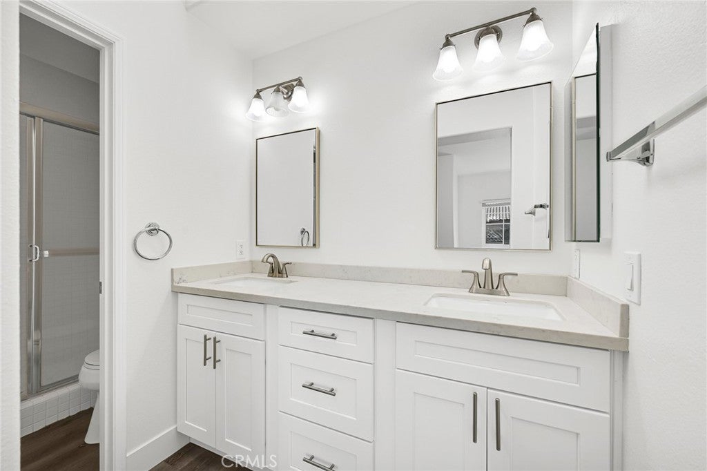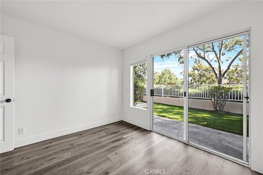 Situated on the Tijeras Creek Golf Course within the sought-after Tierra Linda community of Rancho Santa Margarita, this light-filled residence offers a thoughtful blend of comfort, function, and everyday ease. Positioned on a quiet cul-de-sac, the home features 3 bedrooms and 2.5 bathrooms, including a main-level bedroom with direct backyard access and a nearby bath, ideal for guests, a home office, or flexible living. The main living spaces are designed with an open, connected flow, where natural light moves easily throughout. Updated vinyl flooring carries across the main level, while sliding doors extend the living space outdoors to a private patio with artificial turf and room for both dining and lounging, all set against peaceful golf course views. The kitchen is both functional and inviting, appointed with granite countertops, white shaker cabinetry, and stainless steel appliances. It opens seamlessly to the dining and living areas, creating a natural setting for gathering and daily living. Upstairs, the primary suite offers a quiet retreat with fairway views, a dual-sink quartz vanity, and a walk-in shower. A secondary bedroom with its own full bath provides privacy and comfort, while a spacious loft offers versatility for a home office, media space, or play area. Additional highlights include a two-car garage with built-in storage and two driveway parking spaces. Residents of Tierra Linda enjoy access to Rancho Santa Margarita’s extensive amenities, including parks, pools, trails, Tijeras Creek Golf Course, and the lake and beach club, along with access to Tesoro High School and Arroyo Vista Elementary. A home that balances openness, flexibility, and a connection to its surroundings, offering a lifestyle rooted in both comfort and community.