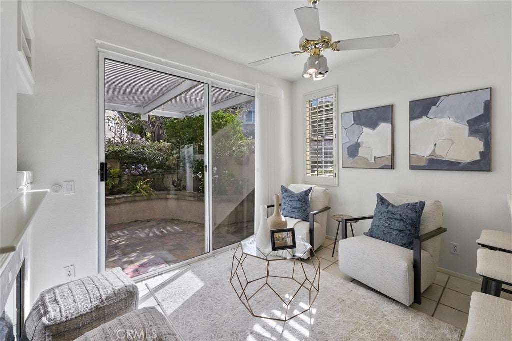Experience elevated living in upper Tustin Ranch at 2325 Dunes, a beautifully appointed residence ideally situated in the sought-after gated community of Ventana. This townhome-style property welcomes you into the main living areas on the ground floor. Offering 3 bedrooms, 3 bathrooms, and approximately 1,718 square feet of thoughtfully designed open-concept space. With no neighbors above or below, enjoy the privacy of townhome-style living, complemented by a secluded patio featuring low-maintenance landscaping and a trellis cover—ideal for relaxing or entertaining outdoors. Inside, experience a seamless blend between living and dining areas highlighted by vaulted ceilings and an abundance of natural light. The dining area opens directly to the patio, embracing the indoor-outdoor lifestyle Orange County is known for. The main level also includes a convenient bedroom, which is currently staged as an office, offering versatility and added convenience. Additional amenities include a dedicated laundry room, downstairs bathroom, and direct access to a side-by-side two-car garage. The kitchen is both bright and inviting featuring bar seating and an intimate breakfast area situated near a cozy fireplace with access to the private courtyard. Upstairs, the expansive primary suite offers vaulted ceilings, dual closets, and an en-suite bathroom with dual vanities, a soaking tub, and a separate shower. The additional upstairs bedroom functions as a junior suite with its own private bathroom and closet. Located in the desirable upper Tustin Ranch area, Ventana residents benefit from close proximity to Tustin Ranch Golf Club, The Market Place for shopping and dining, and highly rated schools. The community also provides exclusive access to Greenway Park, which includes a pool, spa, playground, and tennis courts—delivering resort-style amenities just steps from home.