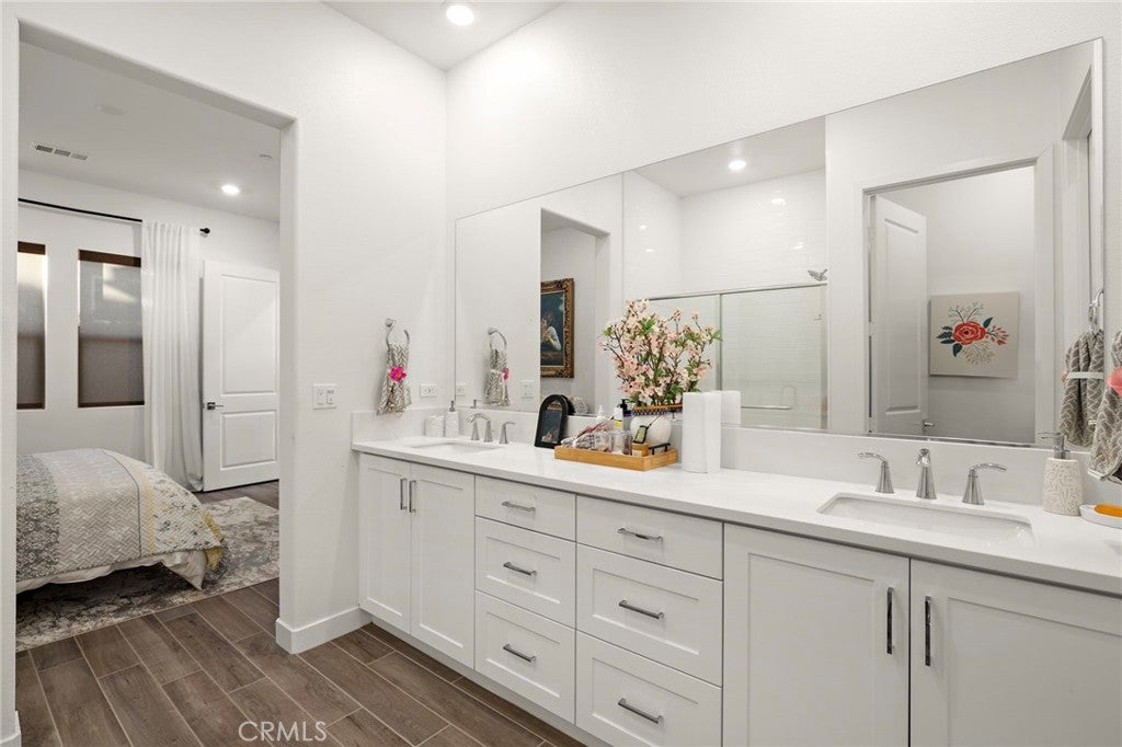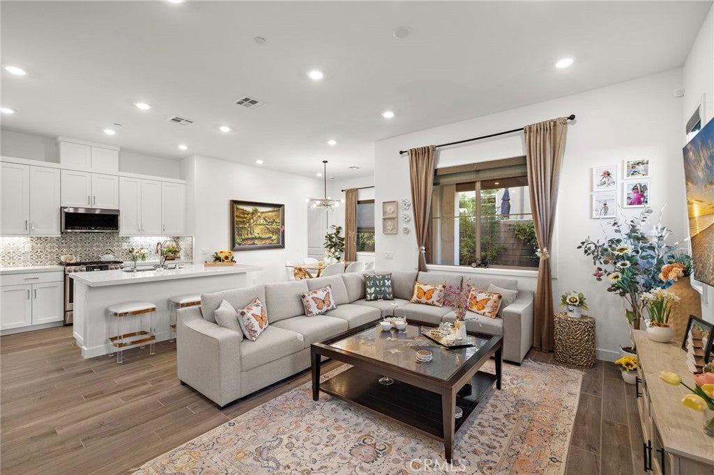 Effortless living meets thoughtful design in this beautifully upgraded home located in the Haven 55+ community of Rancho Mission Viejo. Offering the convenience of first floor living with a private upstairs retreat, this flexible layout includes a main level primary suite, secondary bedroom and full bath, plus open concept living and a chef’s kitchen ideal for everyday living and entertaining. Upstairs features a spacious bonus room the size of the main living area, a full bedroom and bath, and a private balcony perfect for guests, a home office or media lounge. Approximately 1,950 square feet with three bedrooms and three full baths, enhanced by over $100,000 in upgrades including paid solar, whole home soft water system and luxurious wood inspired tile flooring throughout. Low maintenance outdoor living and access to Haven’s private 55+ amenities, located within Gavilan, Rancho Mission Viejo’s 55+ only village in Rienda, with expanding amenities including a new pool, clubhouse, pickleball courts, fitness facility, bocce ball, scenic lookouts and social events, plus access to Rancho Mission Viejo’s broader amenities.