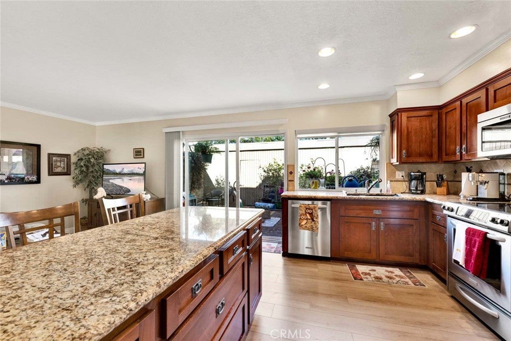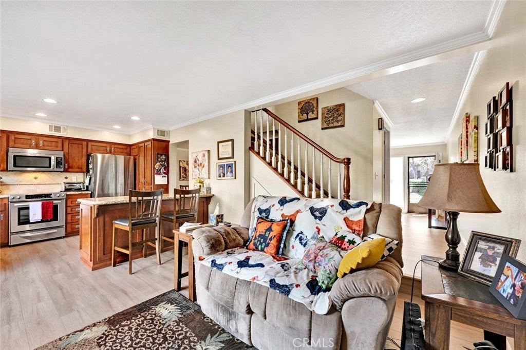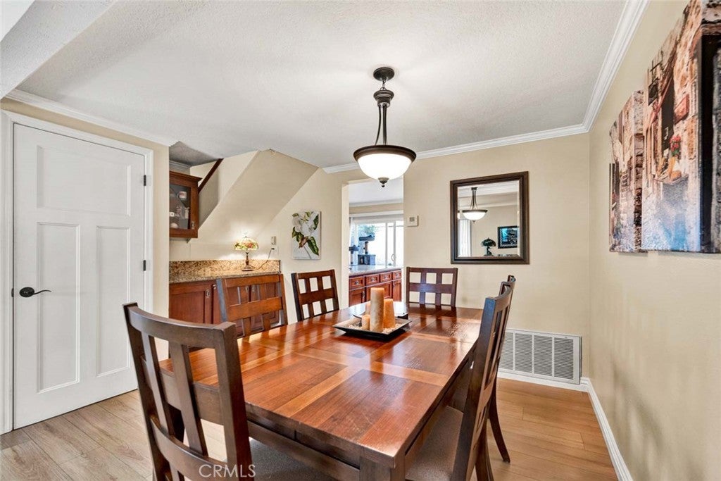 Beautifully upgraded condo in the sought-after Tiburon community. This popular Monterrey model offers 3 bedrooms, 2.5 baths, and approximately 1,656 square feet of well-designed living space. The expansive living room flows seamlessly into the dining area, featuring a built-in buffet with granite top, ideal for entertaining. The remodeled kitchen showcases updated cabinetry, granite counters, recessed lighting, and stainless steel appliances. A tastefully updated half bath is located downstairs, while the upstairs bathrooms features upgraded vanities, granite counter tops and fixtures. Dual pane windows and sliders throughout enhance comfort and efficiency, and the downstairs offers attractive wood laminate flooring for easy maintenance. Upstairs, the spacious primary suite includes a private ensuite bath and generous closet space. Secondary bedrooms are well-sized and versatile. Enjoy air conditioning for added comfort, along with a welcoming brick patio that provides the perfect setting for relaxing or entertaining, with direct access to the garage and laundry area. Ideally located directly across from one of the community’s five pools, Tiburon South also offers two clubhouses and a tot lot. Conveniently situated near shopping and dining, across from Memorial Medical Center, and close to Mile Square Park with golf, sports fields, and open space. Easy access to the 405 freeway and approximately five miles to the beach. A great floorplan, excellent location, and pride of ownership make this a standout opportunity in one of Fountain Valley’s most desirable townhome communities. Come and enjoy this great location and all that Orange County offers!