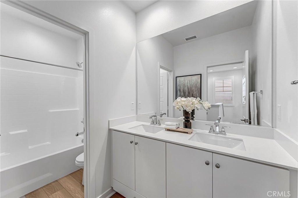 "Opportunity Knocks." A wow and a true turnkey property sits on the premium corner lot with the beautiful park and playground view. It is also a shot walk to the amazing near by community lake. It has no home facing the front of the property, one can enjoy the view from the front patio. The front patio has low maintenance artificial grass and plants. Inside the property is highly upgrade with Luxurious Vinyl Plank flooring through out the home, custom plantation shutters, and quartz counters for Kitchen, Island and bathroom counters. The home has an open floor plan downstairs, the gourmet kitchen with nice size island great for entertainment. Second floor has master bedroom suit with its own bath and walk in closet. there are also two other bedrooms, a hall way bath and laundry closet upstairs. It also has the solar panels that were bought and installed for energy savings. The side by side two car garage has a door to access the side yard. The community also offers pools, spas, fitness center, community farms, sports court, trails, and a lake etc.. A must see and a great place to call home.