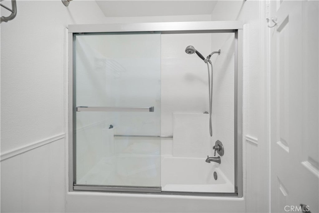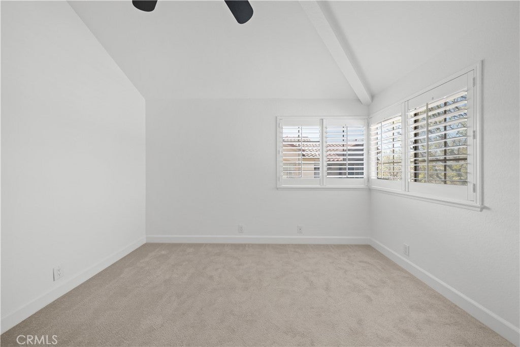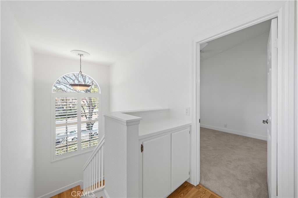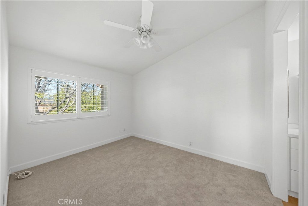 PLENTY OF BANG FOR THE BUCK! According to SafeWise, welcome to the safest city in all of California; Rancho Santa Margarita. The Mission Courts tract is centrally located, so please factor in taking full advantage of nearby, city-wide amenities that include carefully planned SAMLARC features such as pools, pickleball courts, tennis courts, picnic areas, playgrounds, softball fields, hiking trails, biking trails and membership to the Lago Santa Margarita Beach Club with its massive swimming area. Award winning schools, shopping, restaurants, and Lake RSM are all part of the bargain. Mission Courts has its own local pool/spa and children's play area. This particular floor plan has plenty of natural light, is a 2 story end unit with no one else above or below, has two upstairs bedrooms, each with vaulted ceilings, a ceiling fan and their own self-contained, renovated full bath. An off-the-kitchen, inside laundry comes a with washer and dryer. There is a single car garage and a private rear patio that is perfect for entertaining or for just hanging out. This particular home has been freshly painted, brand new carpet has been installed in both upstairs bedrooms and there is a kitchen to brag about with new shaker style cabinets that include a soft close feature and dovetail joint construction. A 2 person seating nook has been added and the engineered stone counters extend to a "waterfall" finish adding to both the ambiance and elegance. The subway tile backsplash accents stainless steel appliances which include the dishwasher, stove/oven, microwave, sink, faucet and new refrigerator. Common features throughout the home include Decor style plugs and switches, oversized baseboards, textured ceilings and raised panel doors. If you are into nature hiking, you are not far from Holy Jim Canyon and Holy Jim Falls. This turnkey home is ready for a new owner. Don't forget to check out the 3D virtual tour.