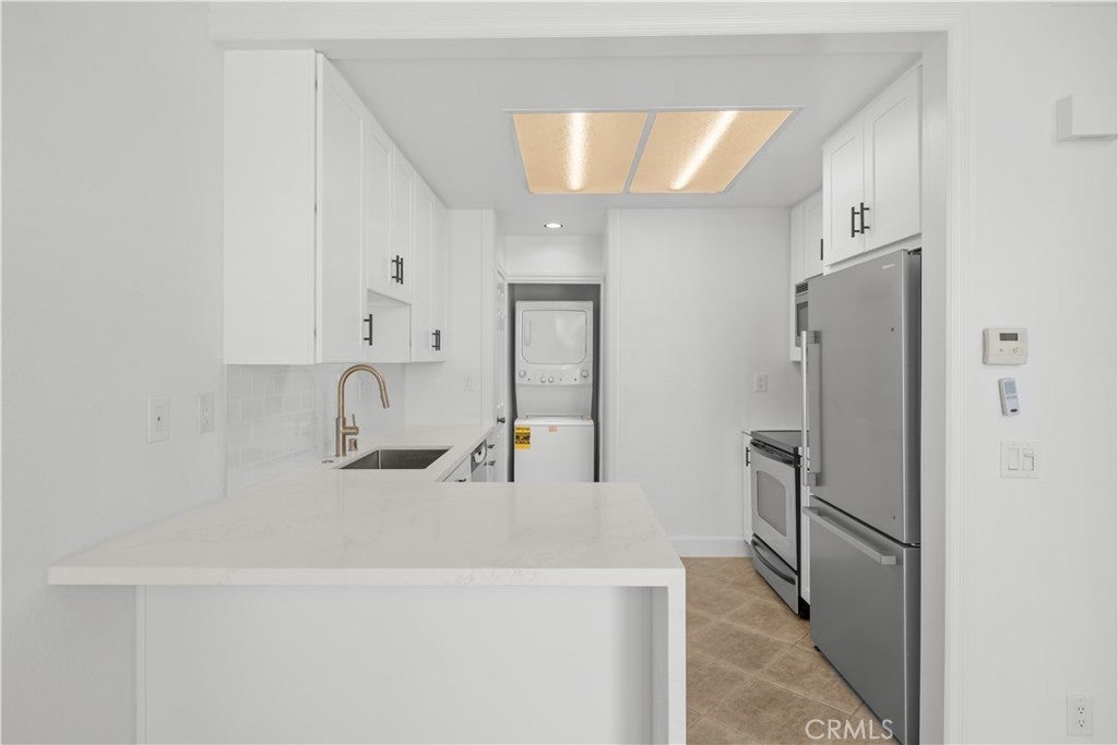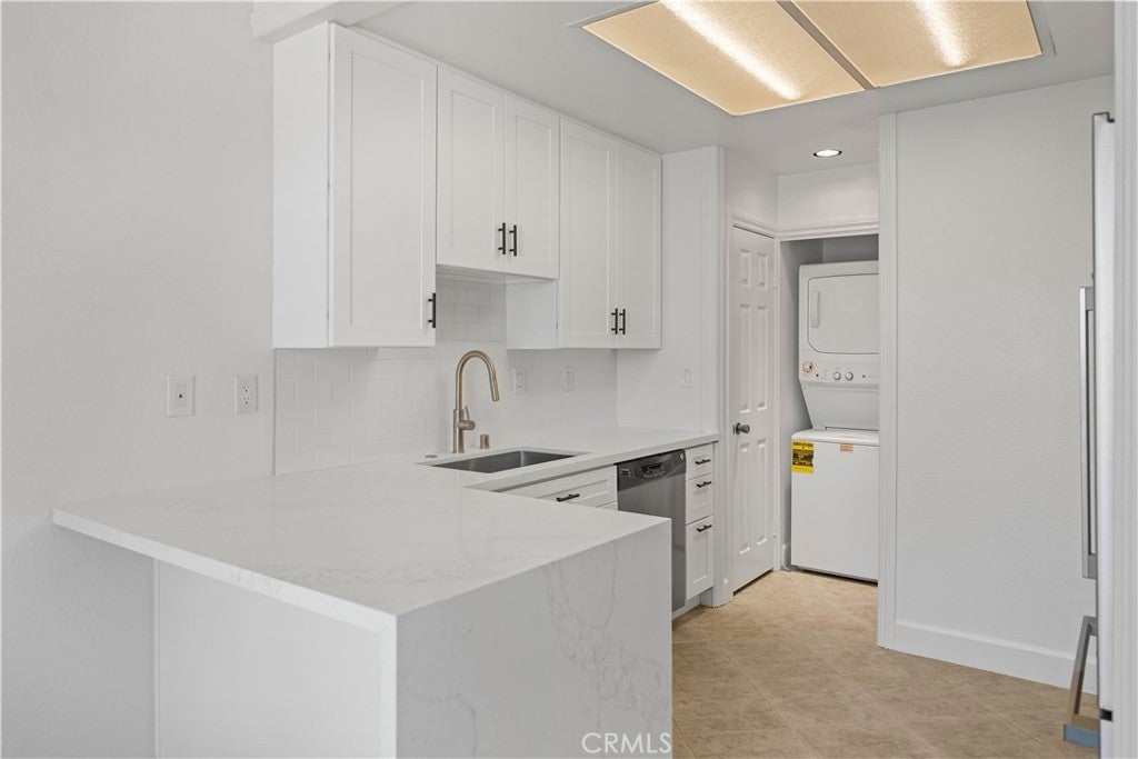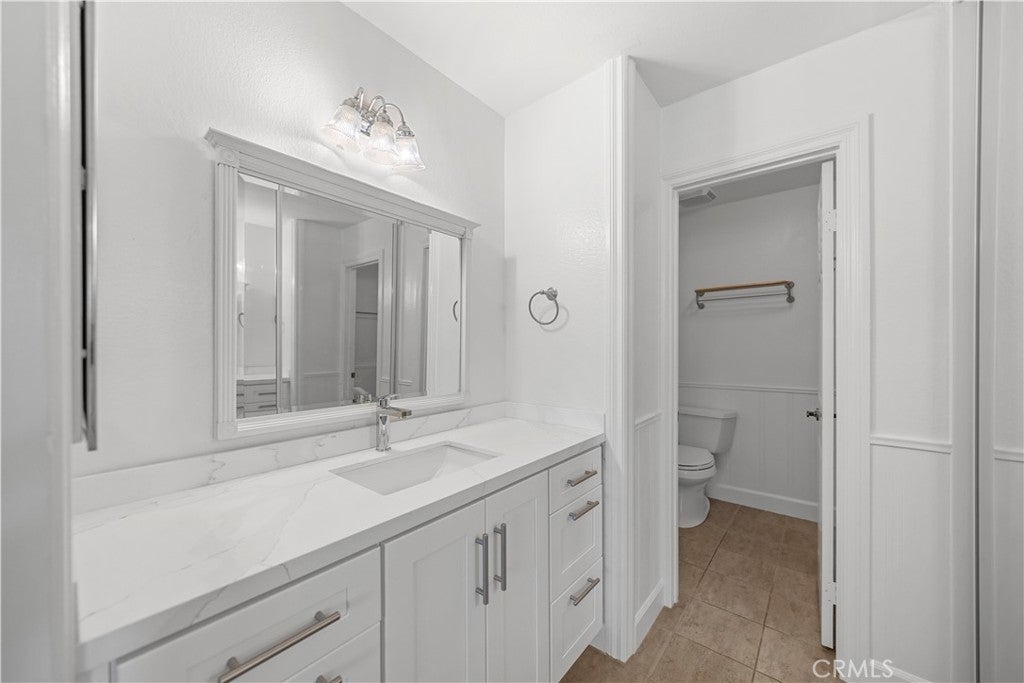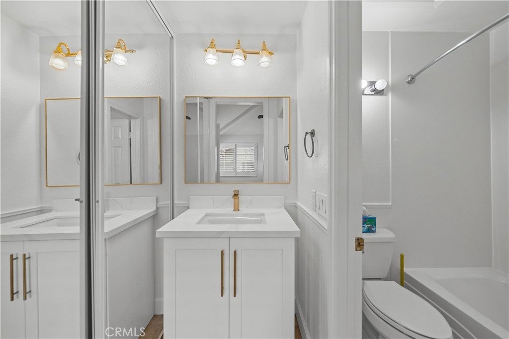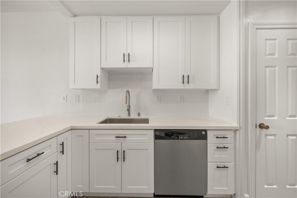 PLENTY OF BANG FOR THE BUCK! According to SafeWise, welcome to the safest city in all of California; Rancho Santa Margarita. The Mission Courts tract is centrally located, so please factor in taking full advantage of nearby, city-wide amenities that include carefully planned SAMLARC features such as pools, pickleball courts, tennis courts, picnic areas, playgrounds, softball fields, hiking trails, biking trails and membership to the Lago Santa Margarita Beach Club with its massive swimming area. Award winning schools, shopping, restaurants, and Lake RSM are all part of the bargain. Mission Courts has its own local pool/spa and children's play area. This particular floor plan has plenty of natural light, is a 2 story end unit with no one else above or below, has two upstairs bedrooms, each with vaulted ceilings, a ceiling fan and their own self-contained, renovated full bath. An off-the-kitchen, inside laundry comes a with washer and dryer. There is a single car garage and a private rear patio that is perfect for entertaining or for just hanging out. This particular home has been freshly painted, brand new carpet has been installed in both upstairs bedrooms and there is a kitchen to brag about with new shaker style cabinets that include a soft close feature and dovetail joint construction. A 2 person seating nook has been added and the engineered stone counters extend to a "waterfall" finish adding to both the ambiance and elegance. The subway tile backsplash accents stainless steel appliances which include the dishwasher, stove/oven, microwave, sink, faucet and new refrigerator. Common features throughout the home include Decor style plugs and switches, oversized baseboards, textured ceilings and raised panel doors. If you are into nature hiking, you are not far from Holy Jim Canyon and Holy Jim Falls. This turnkey home is ready for a new owner. Don't forget to check out the 3D virtual tour.