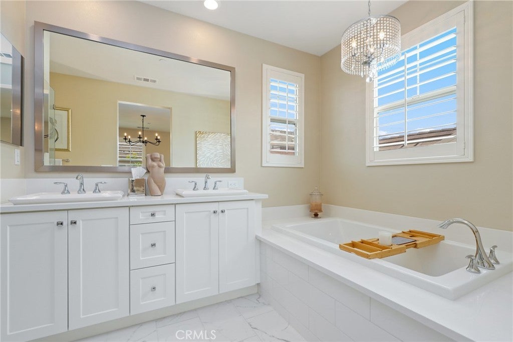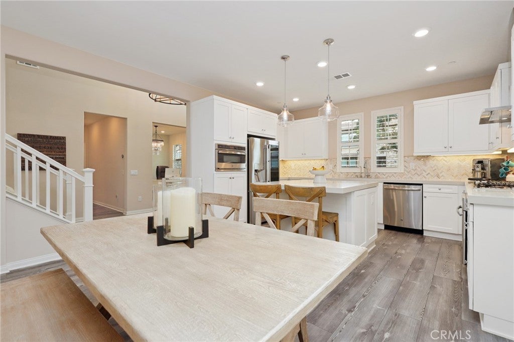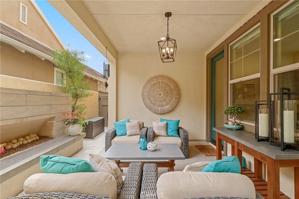 Welcome to 30 Ocaso, a beautifully upgraded smart home nestled in the highly sought-after village of Esencia in Rancho Mission Viejo. Showcasing timeless design and thoughtful functionality, this newer residence offers the perfect blend of style, comfort, and modern living. From the moment you arrive, the home impresses with its inviting curb appeal, clean architectural lines, and a soft, neutral exterior palette. Inside, you’re greeted by a grand entry with soaring ceilings, new designer paint, upgraded lighting, a striking chandelier, plantation shutters and a bright, airy ambiance that flows seamlessly throughout the open-concept floorplan. Designed with both everyday living and entertaining in mind, the main level features a spacious living area anchored by a cozy fireplace, opening effortlessly to the chef-inspired kitchen. The kitchen is beautifully appointed with a large center island, abundant cabinetry, sleek countertops, custom backsplash, under-cabinet lighting, and a full suite of stainless appliances including a cooktop, oven, built-in microwave, vent hood, plus a plumbed alkaline water dispenser This versatile layout offers 3 spacious bedrooms, including a highly desirable main-level bedroom with its own full bath—perfect for guests or multigenerational living—plus a dedicated office or den that can easily function as a fourth bedroom. Upstairs, the primary suite serves as a private retreat, complete with a spa-like bathroom featuring dual vanities, a soaking tub, separate shower, and a generous walk-in closet. Step outside to a beautifully landscaped backyard designed for both relaxation and entertaining, featuring a covered patio area, outdoor fireplace, and plenty of space to unwind or host gatherings, all enhanced by subtle peek-a-boo mountain views. Additional highlights include FULLY PAID SOLAR, EV charger, home water softener, New carpet, smart home features, a tankless water heater, Ring doorbell, custom closet organization, and a whole house fan for enhanced energy efficiency and comfort. Residents of Esencia enjoy access to Rancho Mission Viejo’s award-winning amenities, including resort-style pools and spas, state-of-the-art fitness centers, clubhouses, sports parks, scenic hiking and biking trails, and vibrant community gathering spaces. This is an exceptional opportunity to own a turnkey home in one of Orange County’s most desirable master-planned communities.