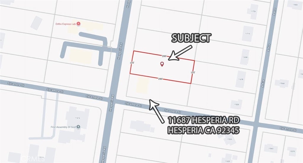 Position your next venture for success with this prime commercial opportunity in the thriving Hesperia market. Ideally located just north of Sycamore Street along the highly traveled Hesperia Road corridor, this flat ±0.675-acre (29,400 SF) parcel, APN: 0415-092-02-0000, offers exceptional visibility, accessibility, and development potential. Boasting approximately 105 feet of frontage on Hesperia Road and 280 feet of depth, the property is zoned C-2 (General Business), allowing for a wide range of uses including retail, office, restaurant, or service-oriented businesses. Utilities are conveniently available at the street, helping streamline the path from vision to development. Strategically positioned less than one mile from Bear Valley Road and with quick access to Interstate 15, this location benefits from strong daily traffic counts and excellent regional connectivity. Surrounded by established residential neighborhoods and growing commercial centers, the site is perfectly situated to capture consistent customer flow in one of the High Desert’s most active growth corridors. Whether you're an owner-user ready to build your business or an investor seeking a high-potential asset, this property offers a rare opportunity to secure a well-located commercial parcel in a rapidly expanding market.