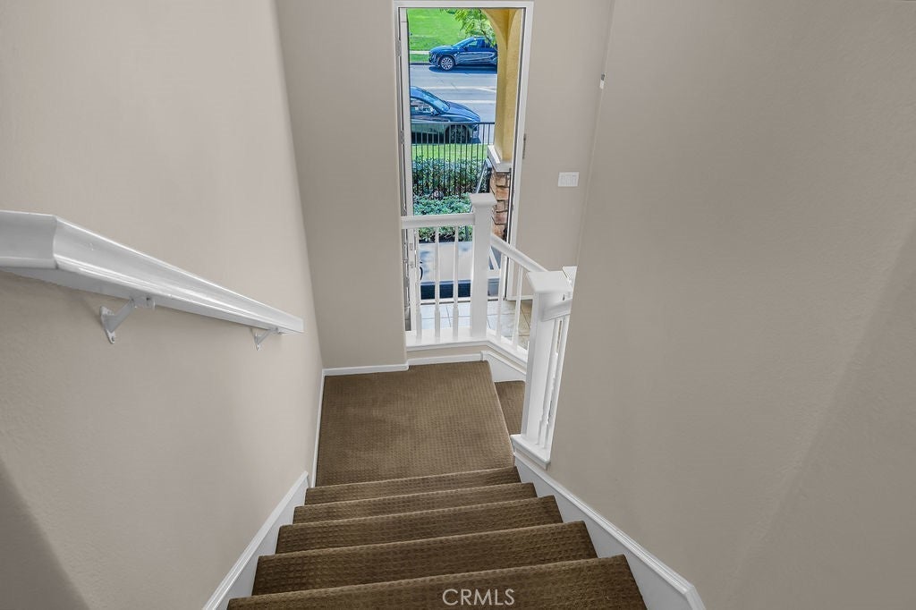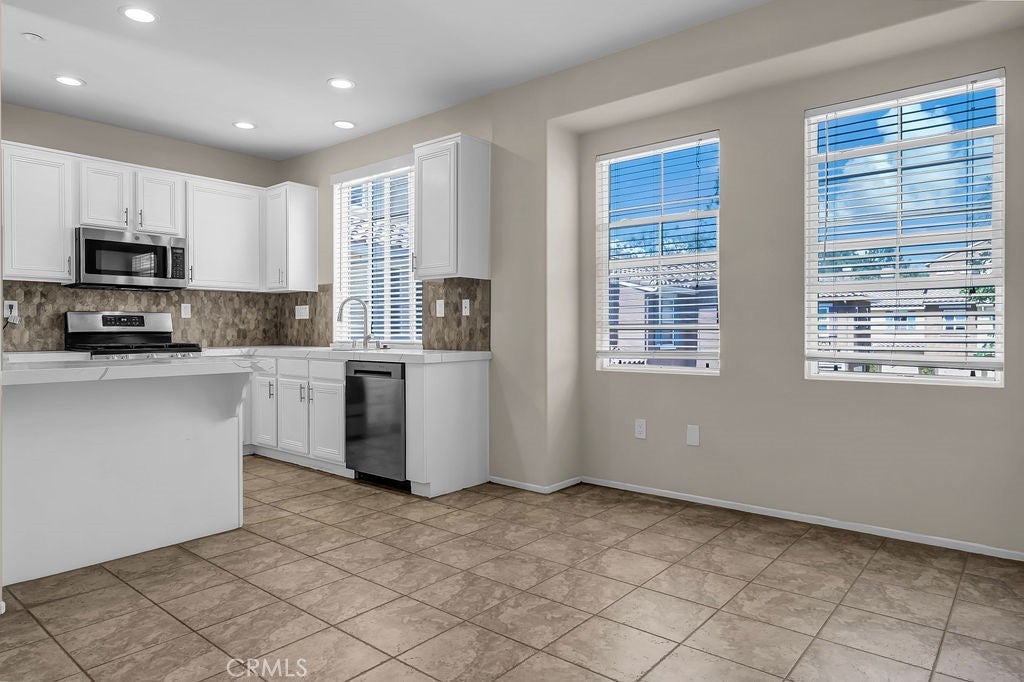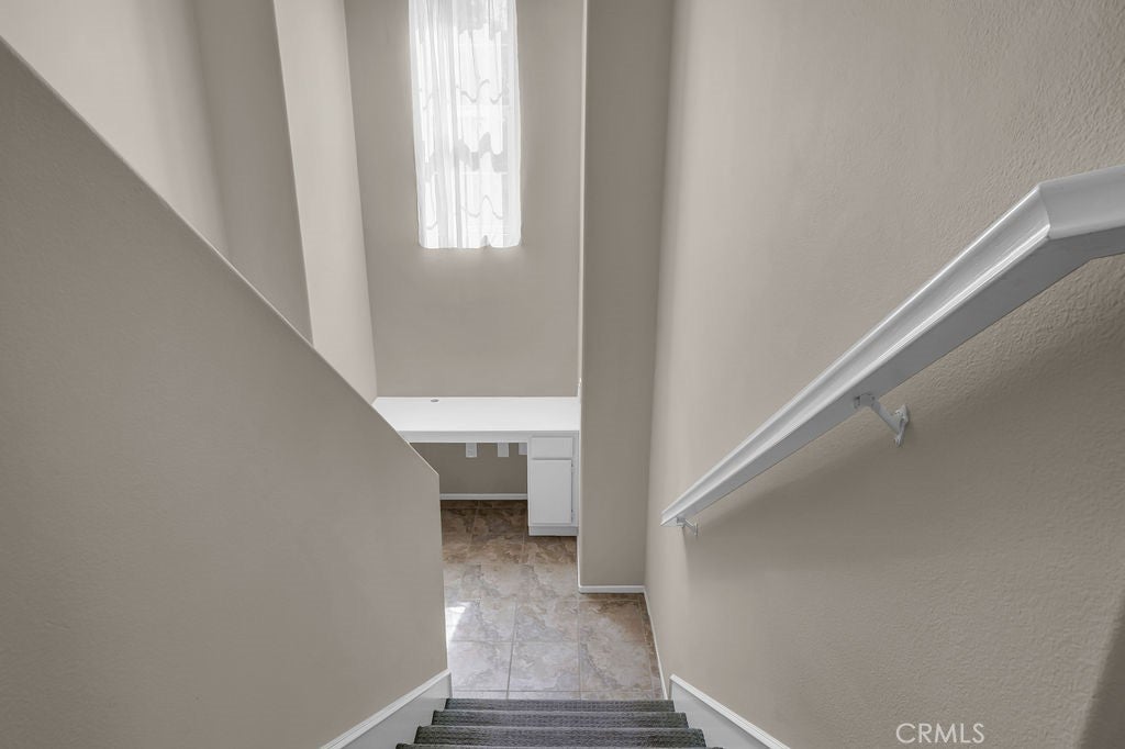 Charming and bright split-level townhome located in one of the premier interior locations within the gated Collage community of Northwood Pointe. With no homes directly across the street, this residence offers peaceful views of open greenbelt and Meadowood Park. The living room features soaring cathedral ceilings, abundant natural light, and a cozy fireplace. Fresh interior paint and ceramic tile flooring enhance the main living areas. The upgraded kitchen includes white cabinetry, quartz countertops, and matching backsplash, opening to the dining and family room on the second level for an inviting, open-concept layout. A built-in desk on the stair landing provides a convenient study/work area, and the upstairs laundry is ideally located near both bedrooms. The primary suite offers a walk-in closet, en-suite bath with vanity, and linen storage. The secondary bedroom is also en-suite with its own full bathroom. Residents enjoy beautifully maintained grounds with tree-lined walkways, community pool and spa, and access to the Northwood Pointe Olympic-size pool. Zoned for highly rated Irvine Unified schools including Canyon View Elementary and Northwood High School. Close to parks, trails, shopping, and convenient access to I-5 and local toll roads.