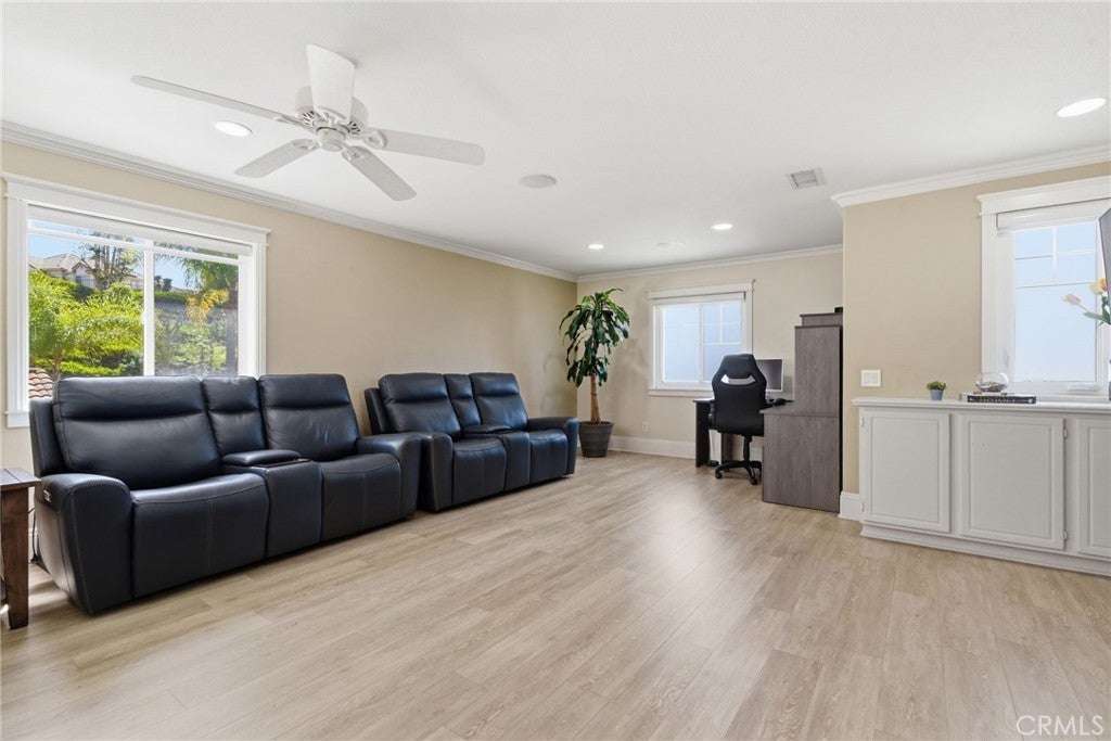 Las Flores Gem For Rent - Uncover this highly upgraded, 4 BR home nestled on a quiet and highly-desirable inside tract location. The property is easy on the eyes from the onset with its beautiful front lawn of high-quality artificial turf, complemented by a serene and private backyard featuring fruitful lemon and guava trees, and FeitElectric lighting. Step inside to discover the charm abound – porcelain tile flooring on the entire first floor, accented by custom crown moulding, baseboards & wainscoting throughout. Move effortlessly in the spacious gourmet kitchen with striking granite countertops and luxurious stainless steel appliances and under the sink alkaline water system. An elegant marble fireplace with built-in speakers in the family room sets a cozy ambiance. The spacious master suite caters to all your needs with ceiling fan, double-sink vanity, large walk-in closet and frameless glass shower. All second-story bedrooms incorporate ceiling fans for your comfort. For your convenience, the property is equipped with a 1st floor office, a laundry room on the second floor and zonal air conditioning system. The furnace and condenser were upgraded in 2022. This home has you covered for all modern comforts: Apps to control lighting in downstairs living room & master bedroom -Alexa & Leviton, MyQ garage door control, epoxy finished garage flooring, installed EV Charger, newer windows installed in 2016, newer water heater, whole house water filtration and water softener system, and solar panel system that generates all or most of the electricity you need. The location is unrivaled with LAS FLORES School (K-8), Tesoro High School, 241 Corridor, shops, golf course within walking distance and easy access to I-5 Freeway off Oso Parkway. Community amenities include a pool, parks, tot lot, BBQ, sports fields, picnic areas & miles of nature trails. Don't miss out; this property is expected to be snapped up quickly!