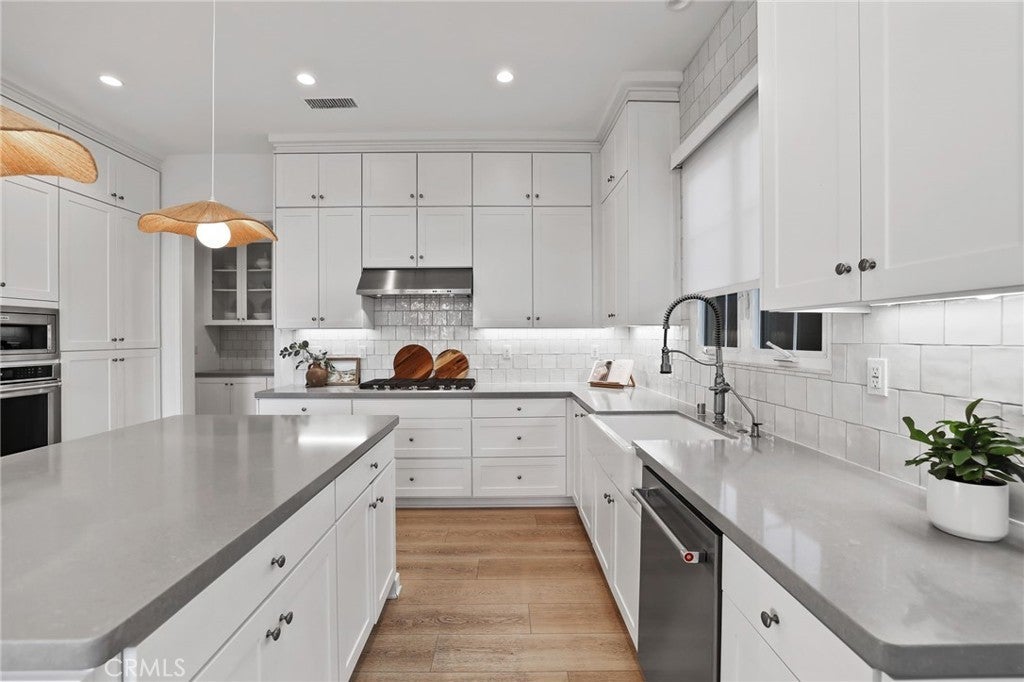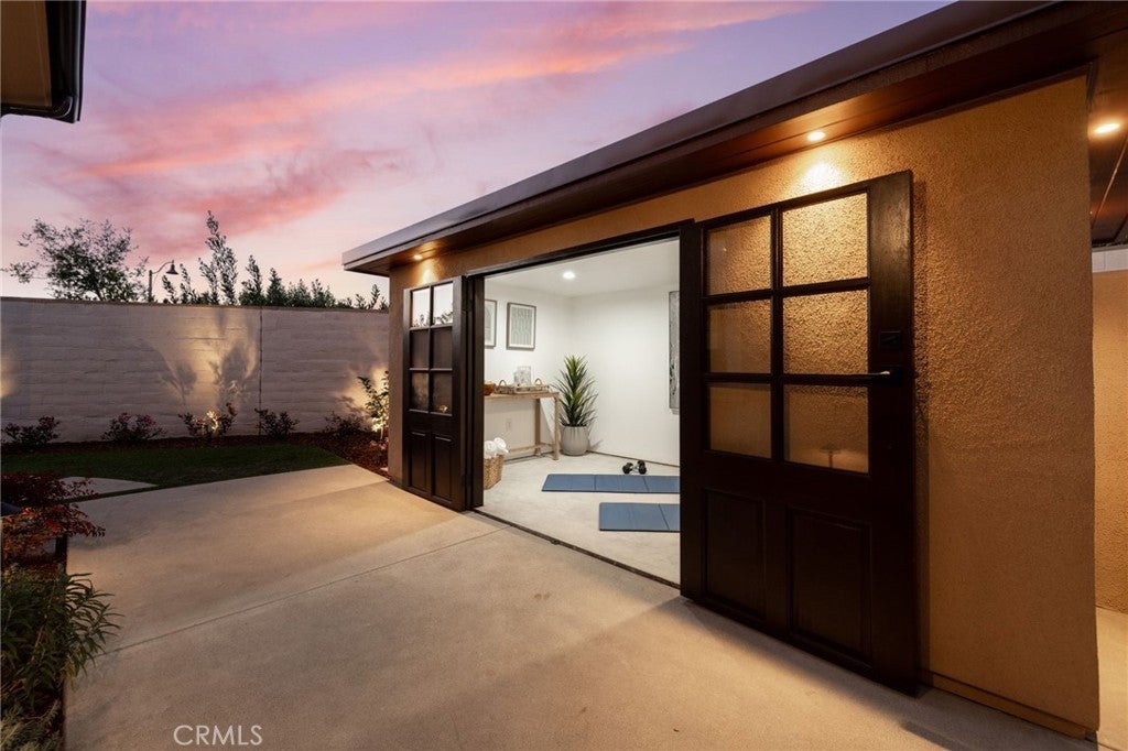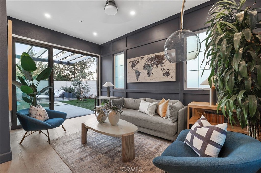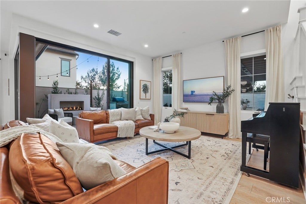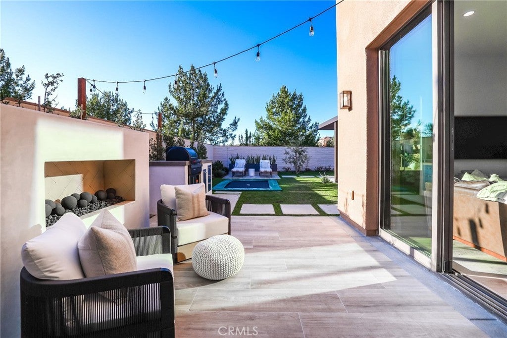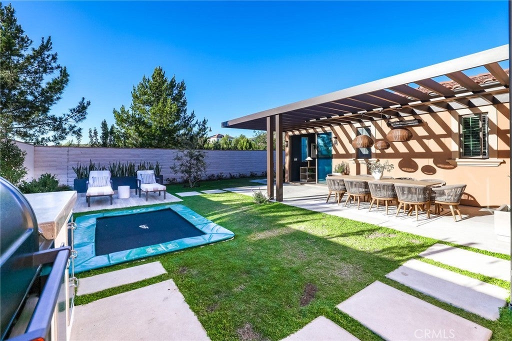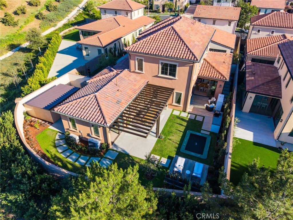 Located in the prestigious Reserve Orchard Hills community of Irvine, situated on one of the largest lots with no neighbors behind, this stunning contemporary home showcases wide-plank flooring, designer finishes, abundant natural light, and expansive sliding doors that seamlessly connect the interior living spaces with the backyard retreat. The main living area features a spacious great room with custom wood-paneled accent wall perfect for everyday living and entertaining. The gourmet kitchen is thoughtfully designed with quartz countertops, a large center island with seating, stainless steel appliances, custom cabinetry, subway tile backsplash, farmhouse sink, and a generous walk-in pantry. Adjacent dining and living areas overlook the backyard, creating a bright and inviting gathering space. A highly desirable downstairs bedroom with its own ensuite bathroom provides flexibility for guests, multigenerational living, or a private home office. The home also includes a dedicated laundry room conveniently located on the main level. Upstairs, the spacious primary suite offers a peaceful retreat with scenic hillside views, a spa-inspired bathroom featuring dual vanities, a soaking tub, separate glass-enclosed shower, and a walk-in closet. Two additional upstairs bedrooms share a well-appointed bathroom. Step outside to a beautifully designed backyard featuring a fireplace, covered pergola, outdoor lounge area, built-in BBQ, and a sunken trampoline, creating a perfect setting for gatherings and family fun. A standout feature of the property is the backyard casita with its own bathroom ideal for a home office, gym, art studio, or private retreat. An additional separate storage room provides convenient extra storage. Enhancing both comfort and quality of living, the home is equipped with a whole-house water filtration and softening system. The garage has been upgraded with epoxy flooring and built-in cabinetry, offering a clean, durable, and highly functional space for storage and organization. With no direct rear neighbors and peaceful hillside surroundings, the home offers exceptional privacy while remaining close to parks, hiking trails, shopping, dining, and top-rated schools. A Must See!